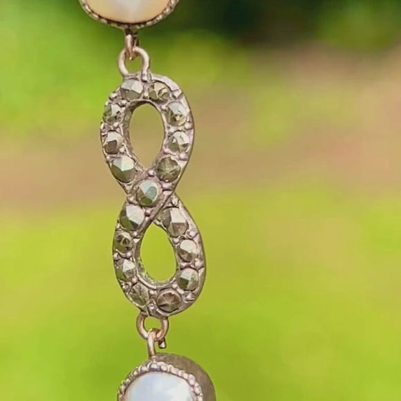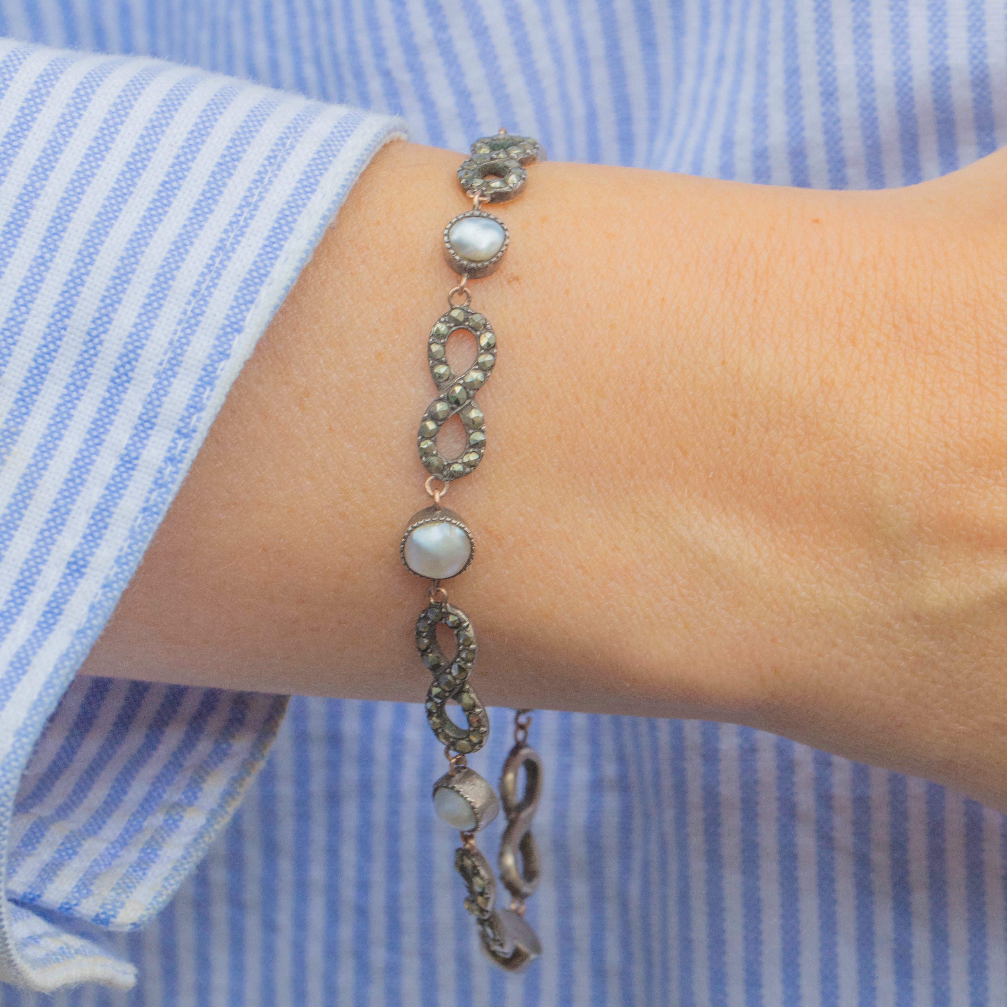 Antique Silver Mother of Pearl & Marcasite Infinity Link Bracelet