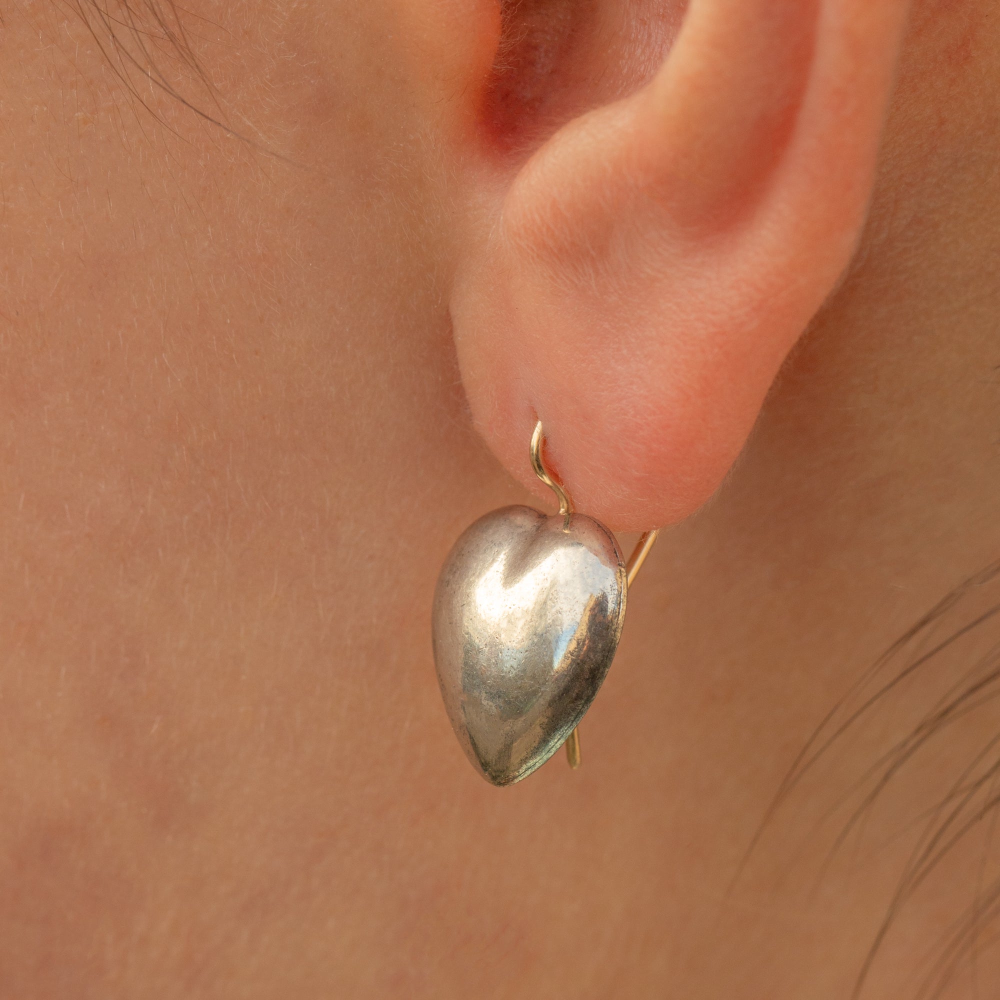 Light, wearable and beautifully preserved, the Silver hearts have a smooth, glossy finish, while the high-carat Gold hooks add a luxurious touch and comfortable wear. A delightful everyday antique pair with timeless appeal.