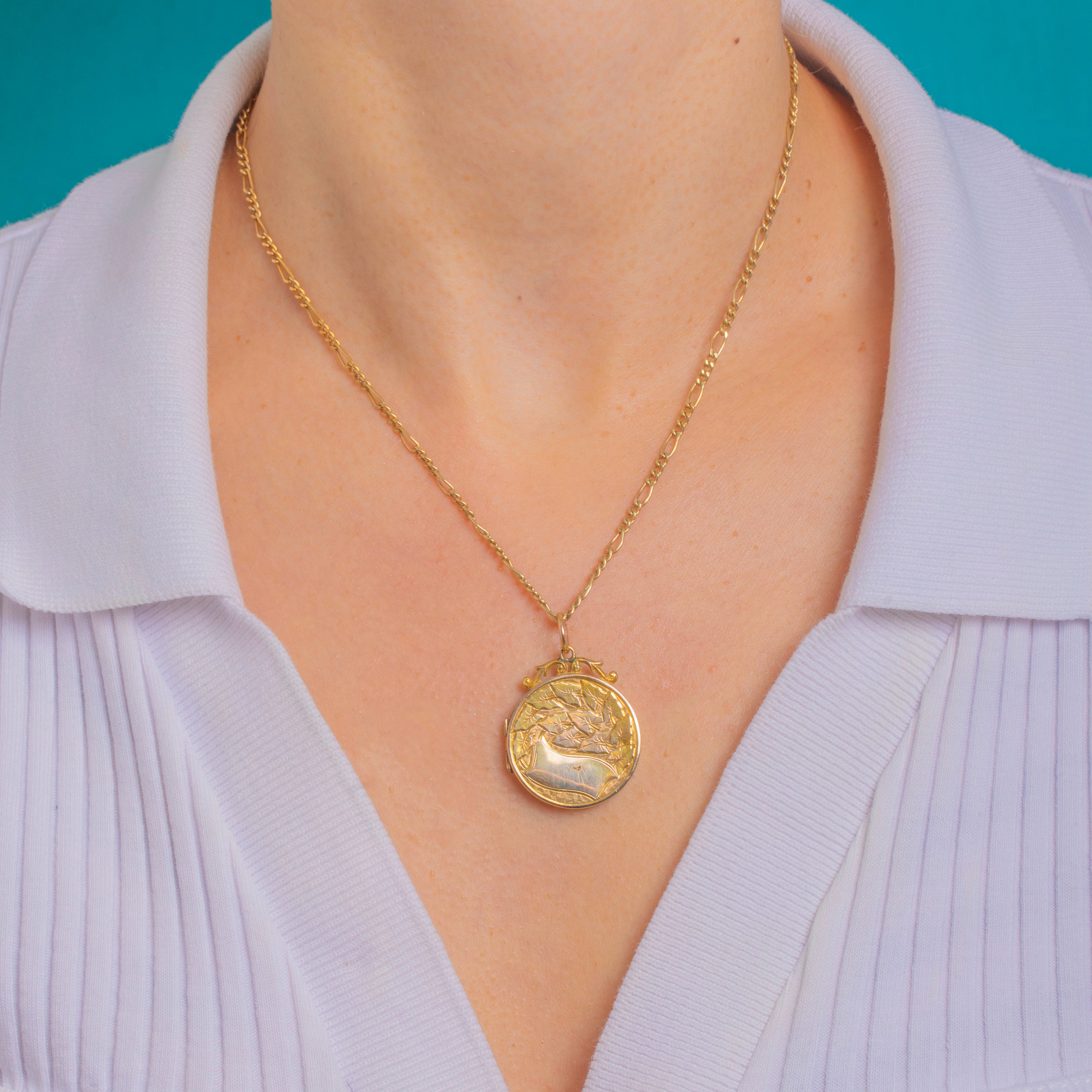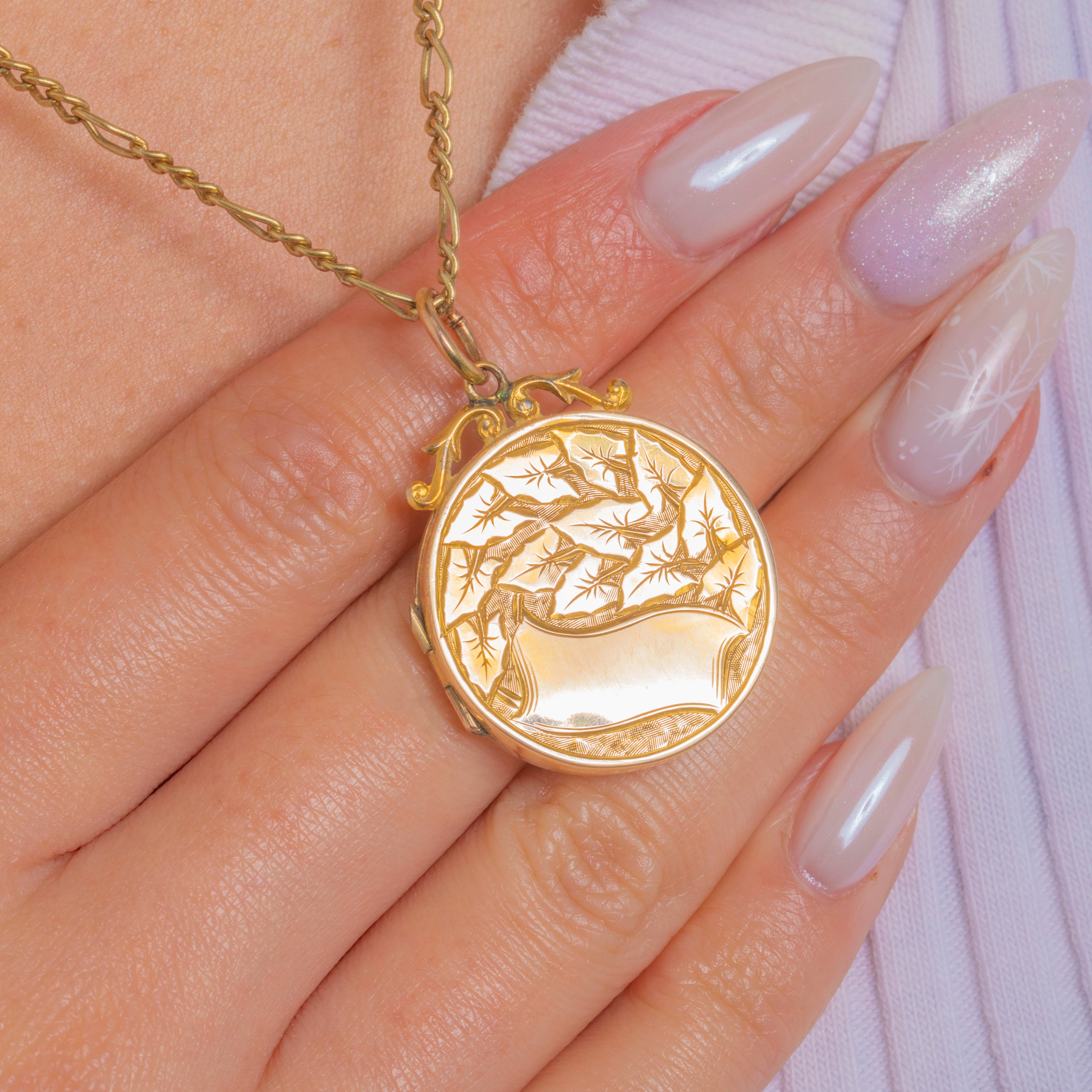 Antique Solid 9ct Gold Round Engraved Ivy Leaf Locket Item added