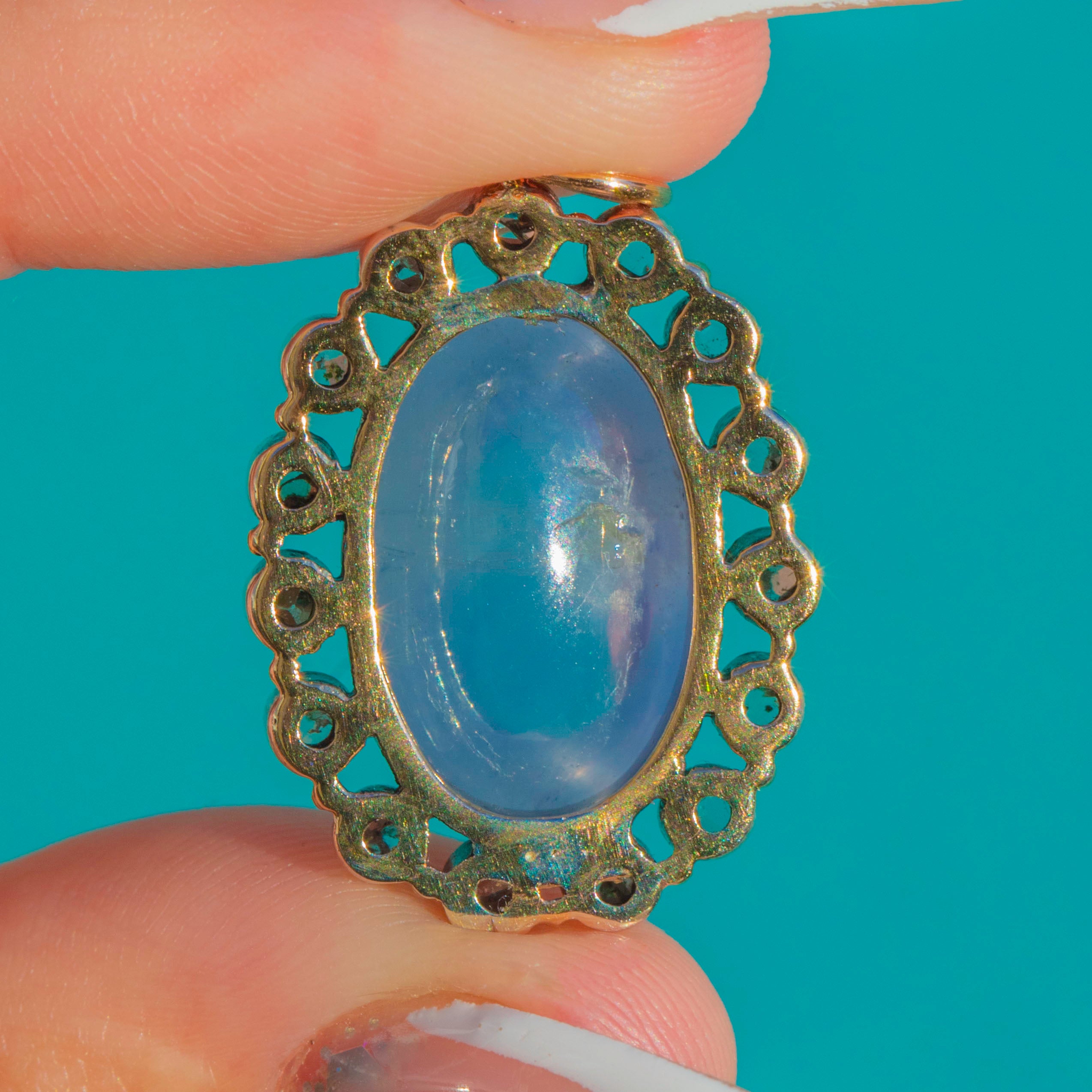 Antique Victorian Star Sapphire & Diamond Cluster Pendant