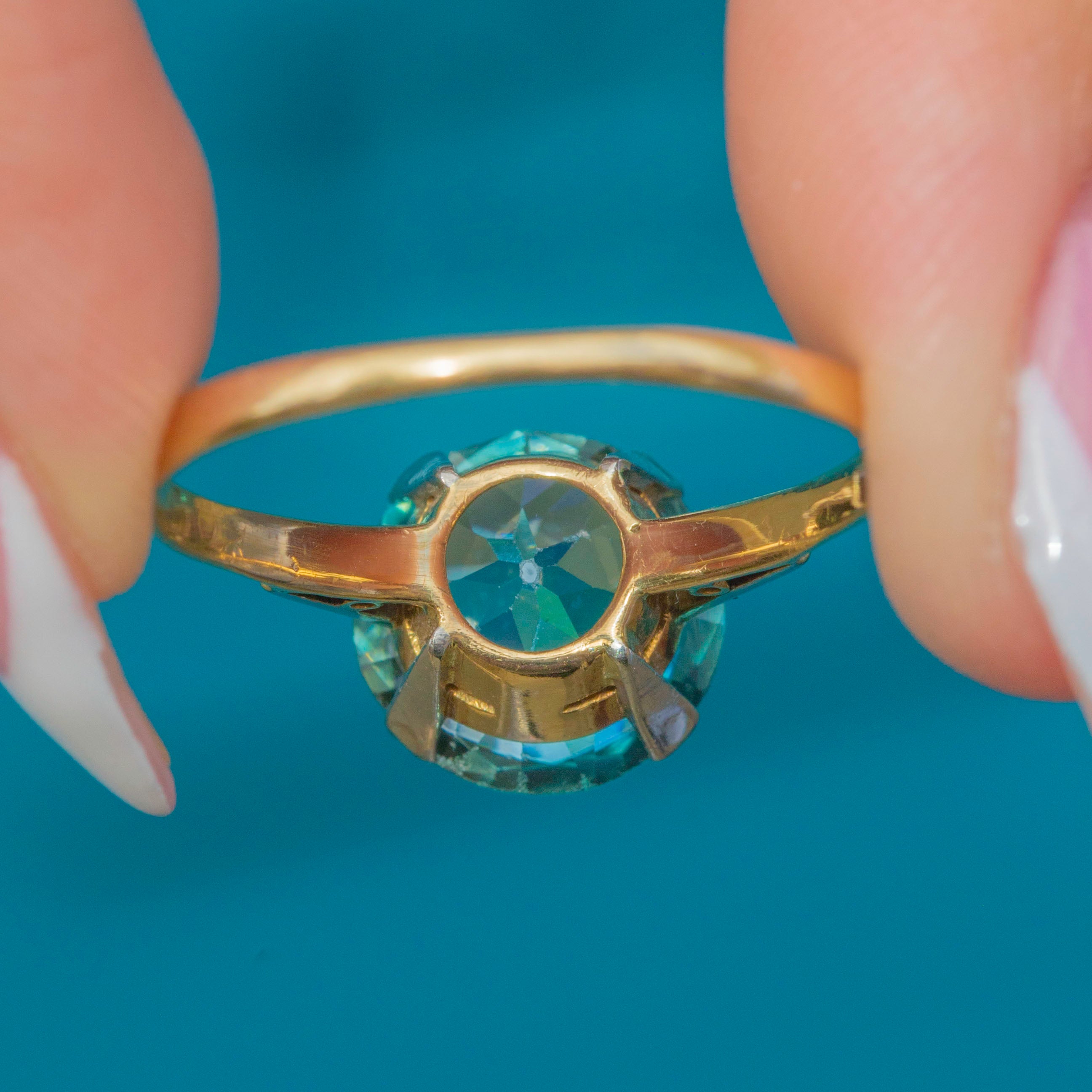 Art Deco 18ct Gold Blue Zircon Ring 4.45ct