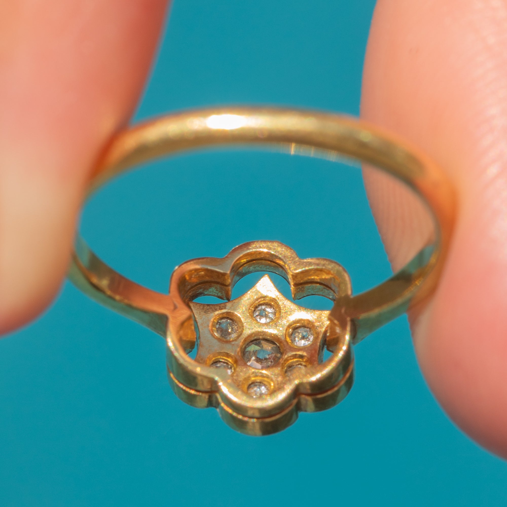 Art Deco 18ct Gold Diamond Star Flower Cluster Ring Item added