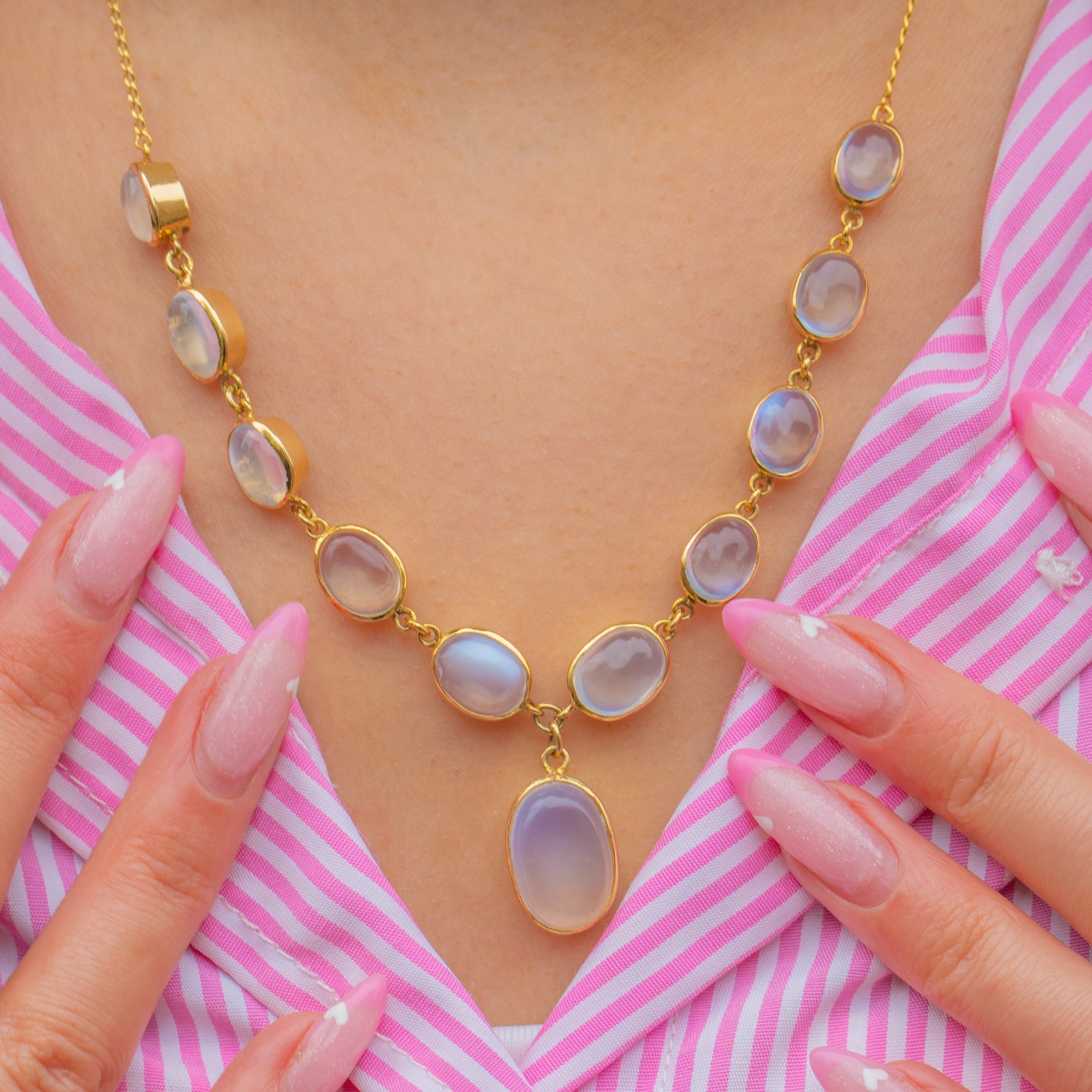 Radiant and refined, this statement necklace perfectly captures the glamour and symmetry of the Art Deco era — a rare and timeless treasure for Moonstone lovers.