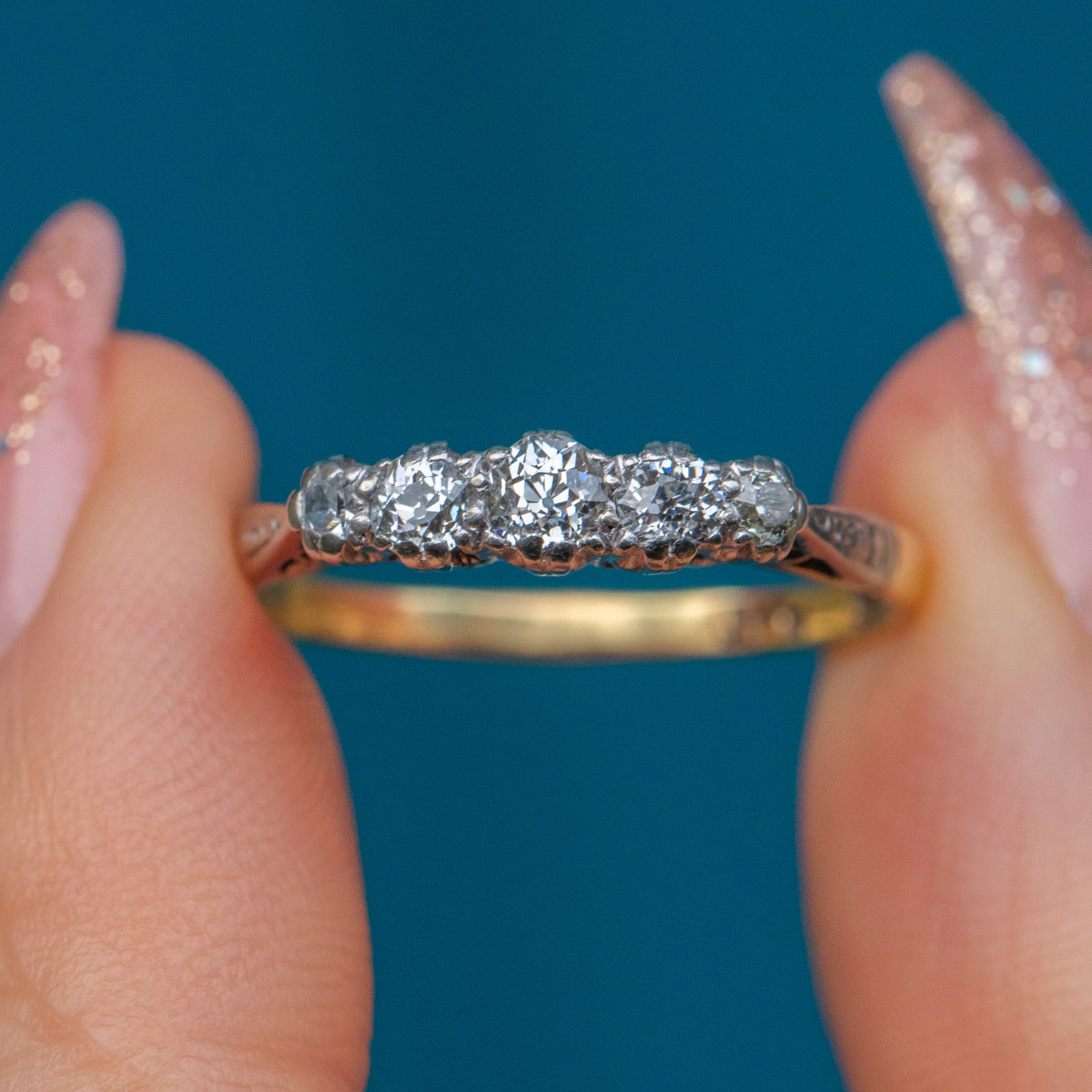 Art Deco 18ct Gold & Platinum Diamond Five-Stone Ring 0.25ct