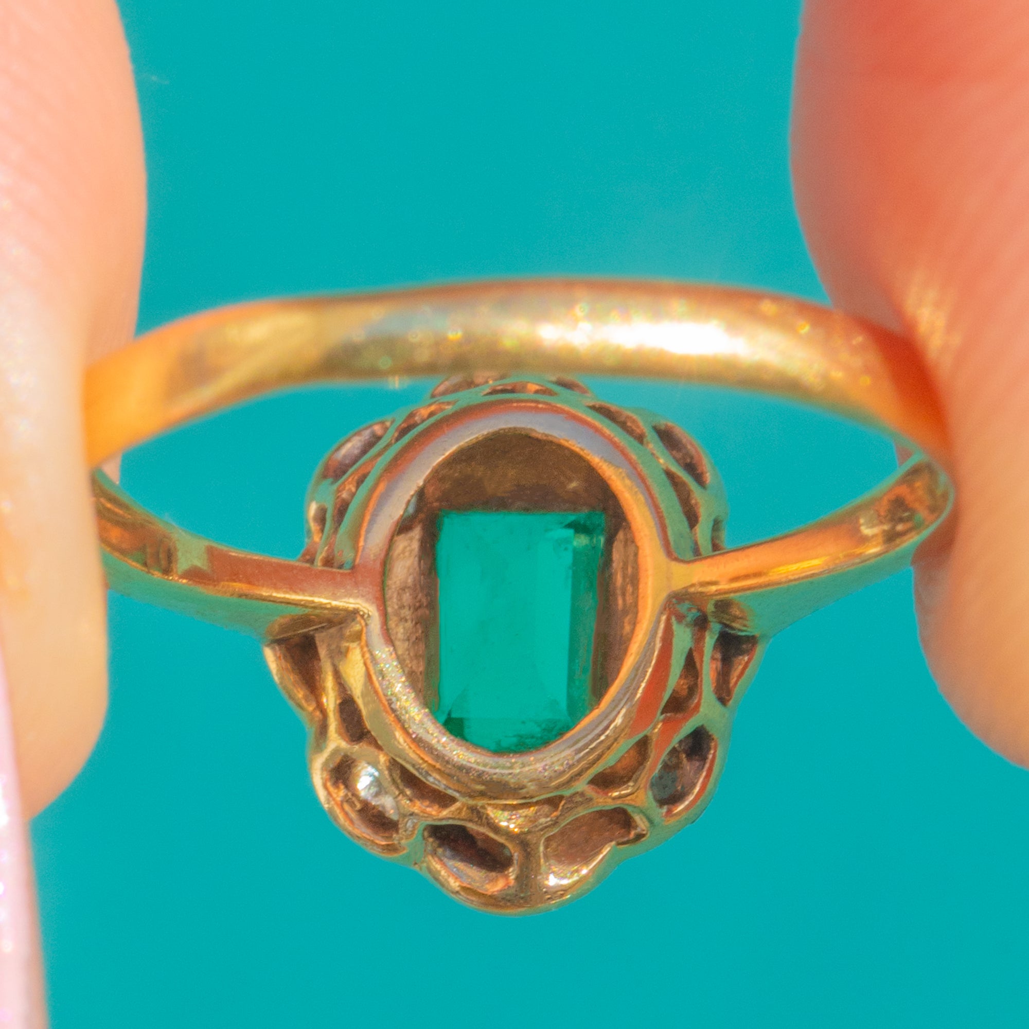 Art Deco 18ct Gold & Platinum Emerald Diamond Cluster Ring