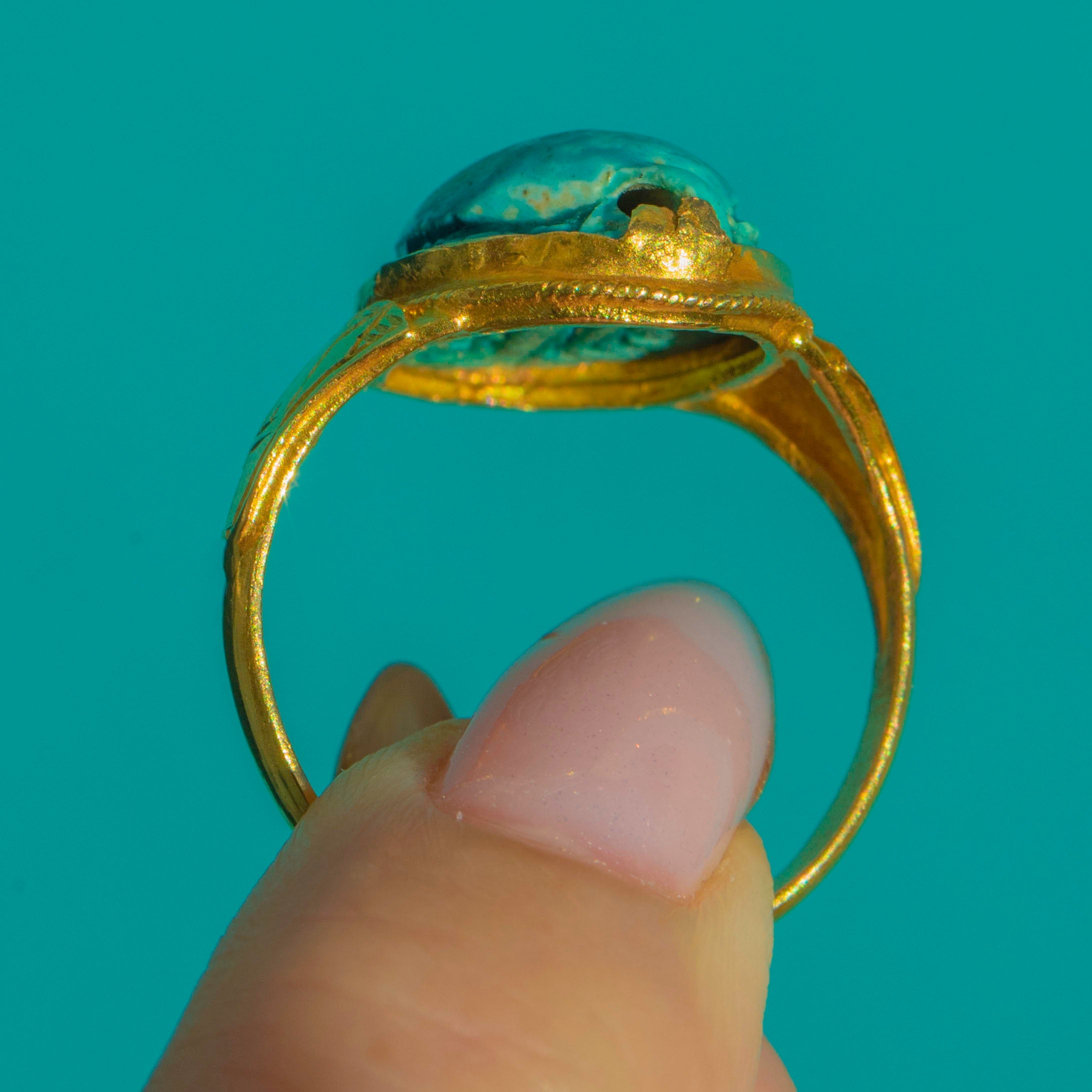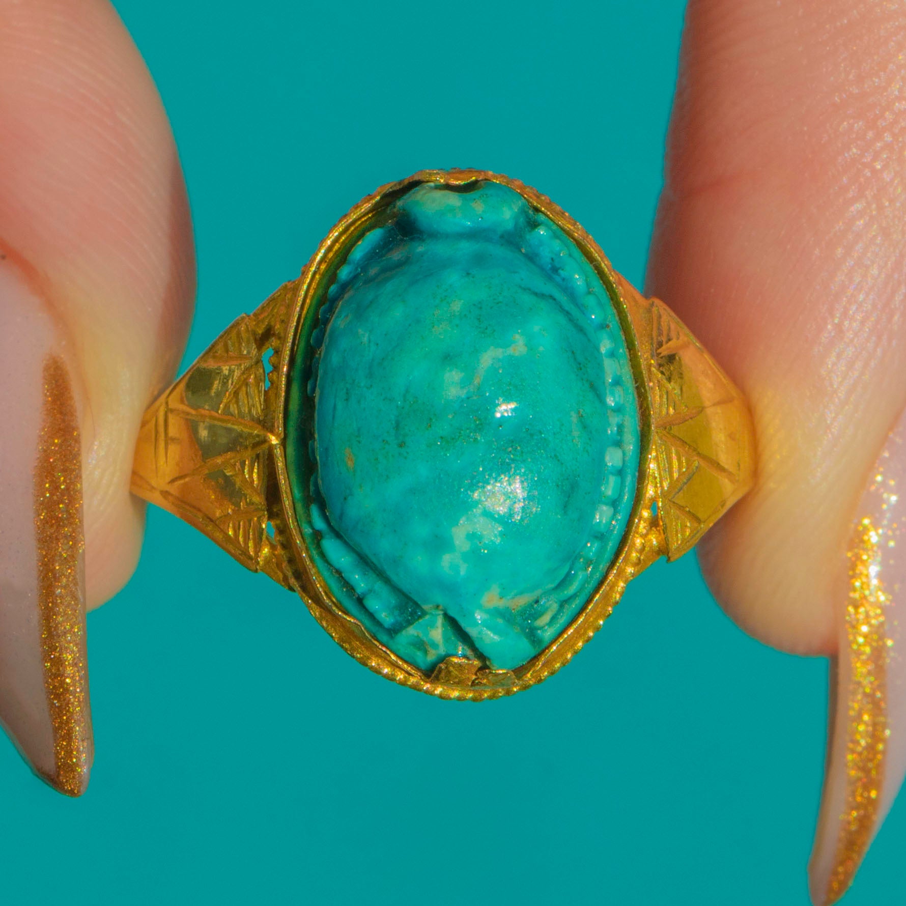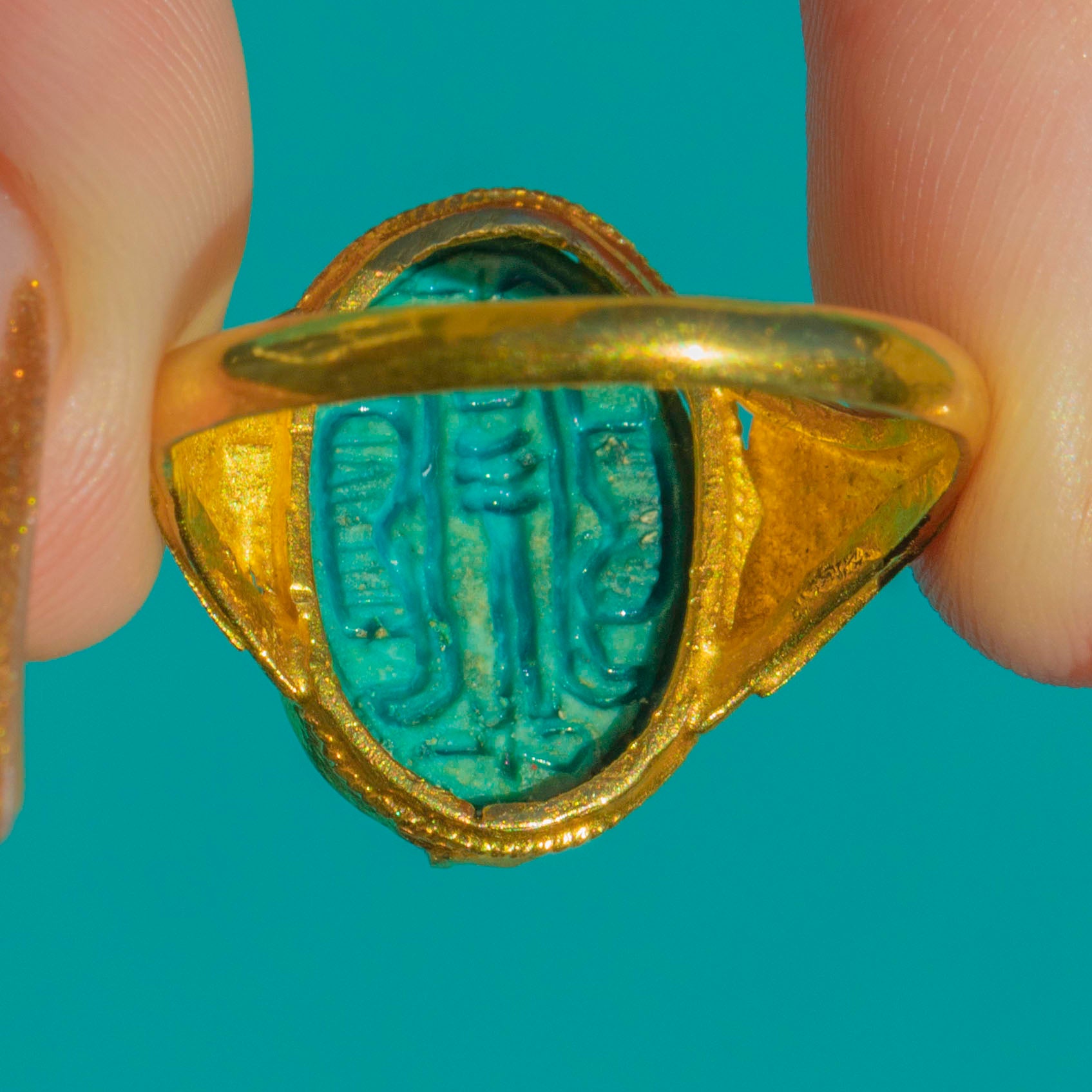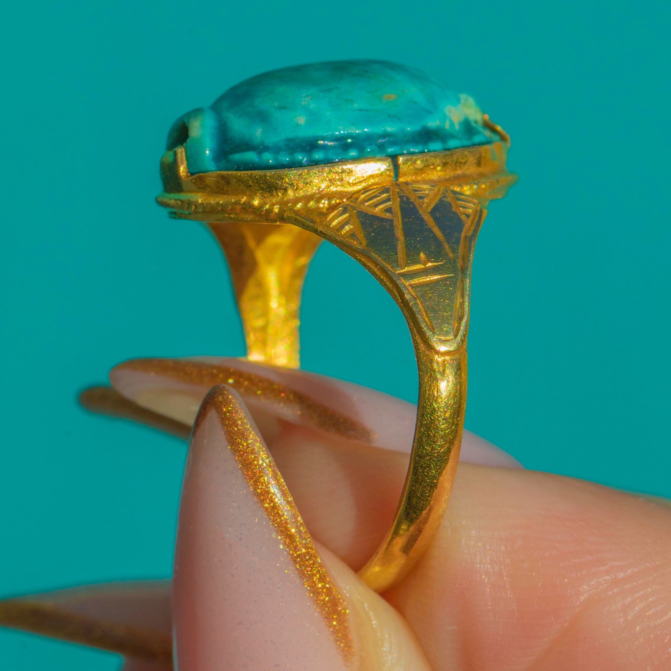 Art Deco 22ct Gold Archaeological Revival Faience Scarab Beetle Ring