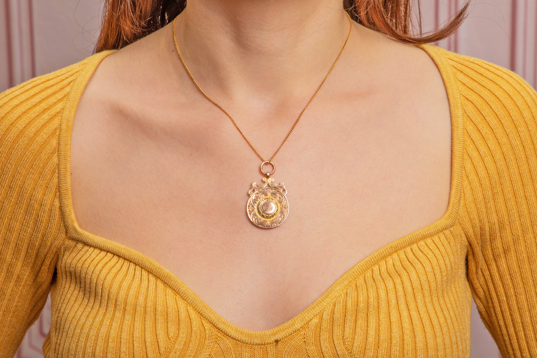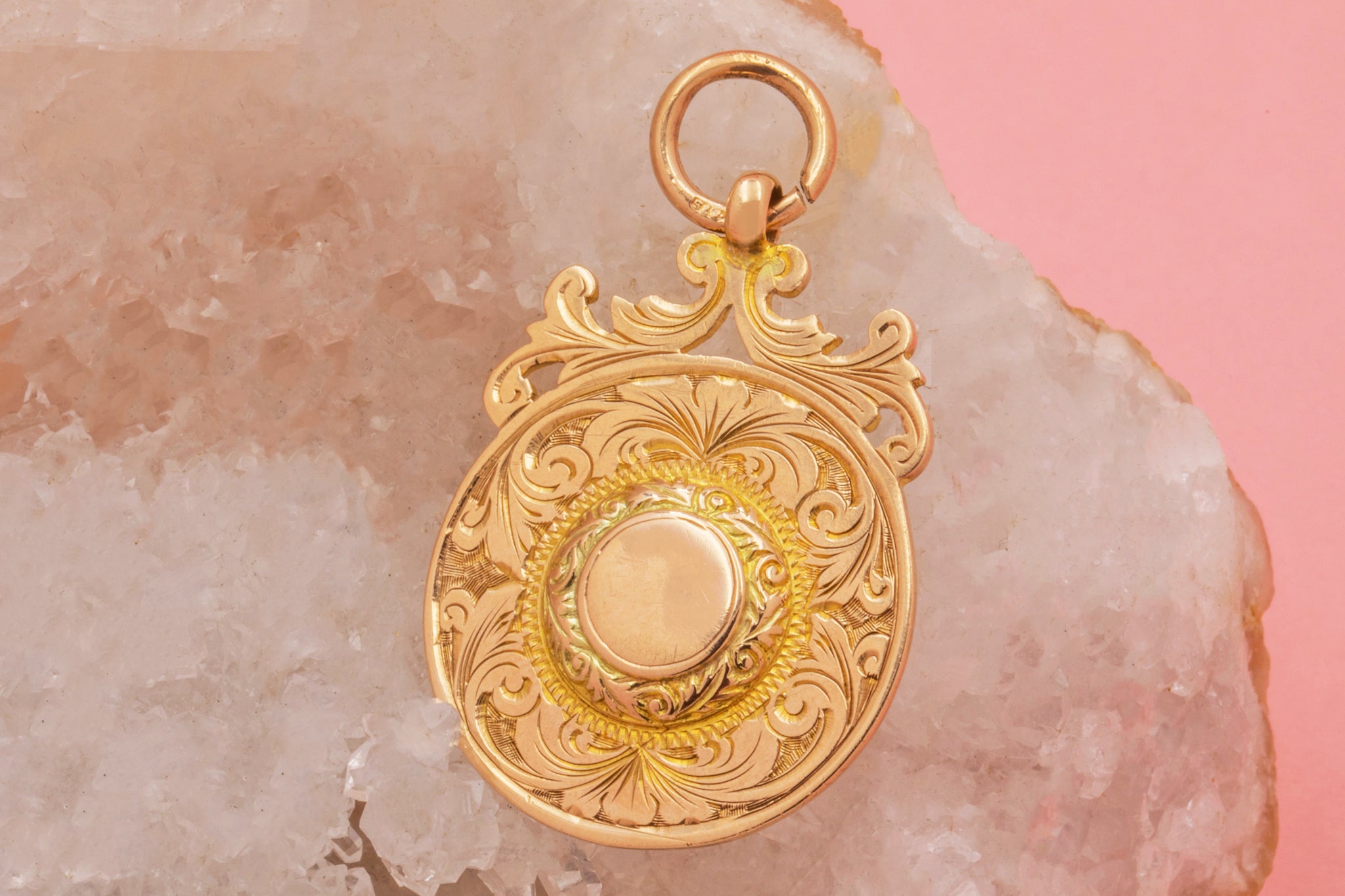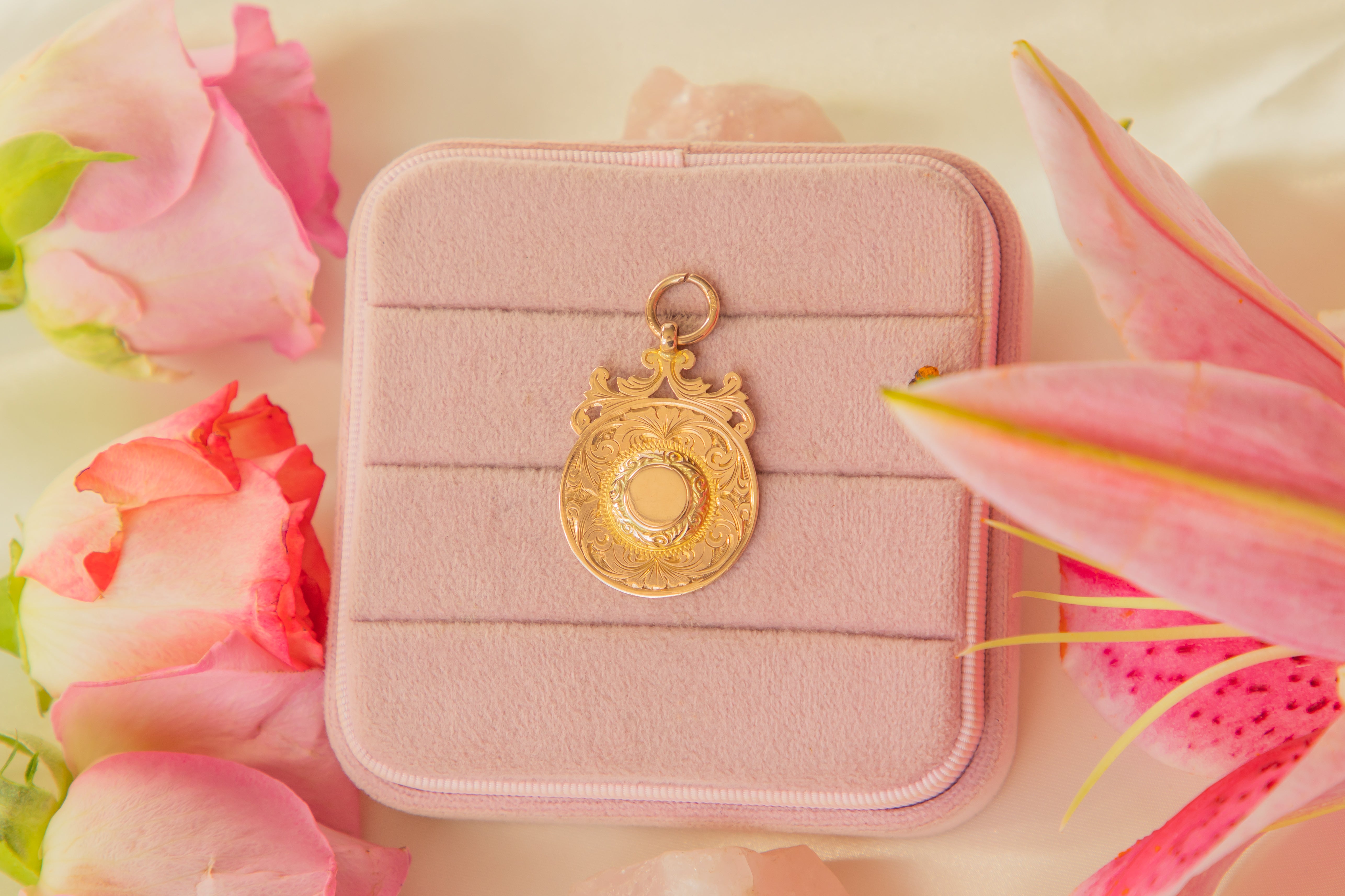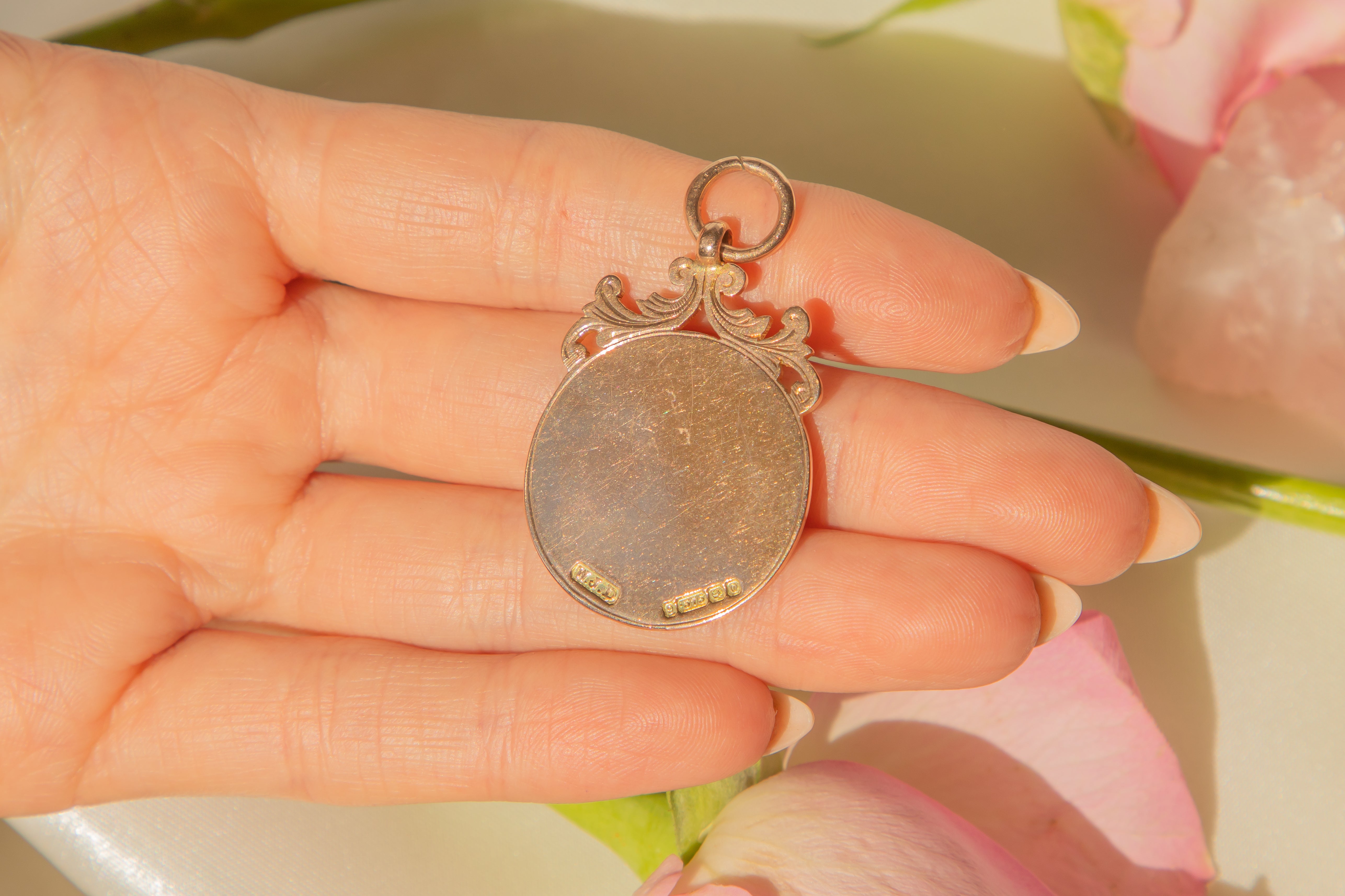 EXCELLENT. This Art Deco 9ct Gold engraved medal pendant is in excellent condition. The Gold is bright and lustrous, free from any dings or dents to note. The sturdy jump ring will allow you to wear her confidently. The pendant has a full set of hallmarks and inscriptions on its back which allows us to accurately date her!
