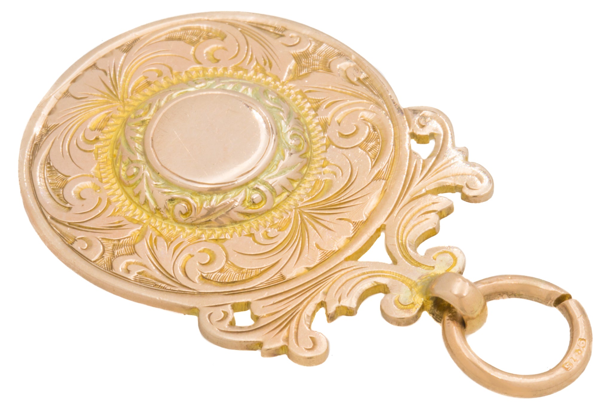 This Art Deco fob carries a lot of symbolism, with acanthus leaves believed to represent long life, making her a wonderful Gold pendant to keep close to your heart. Her plain cartouche could be engraved with initials for the ultimate personal touch!