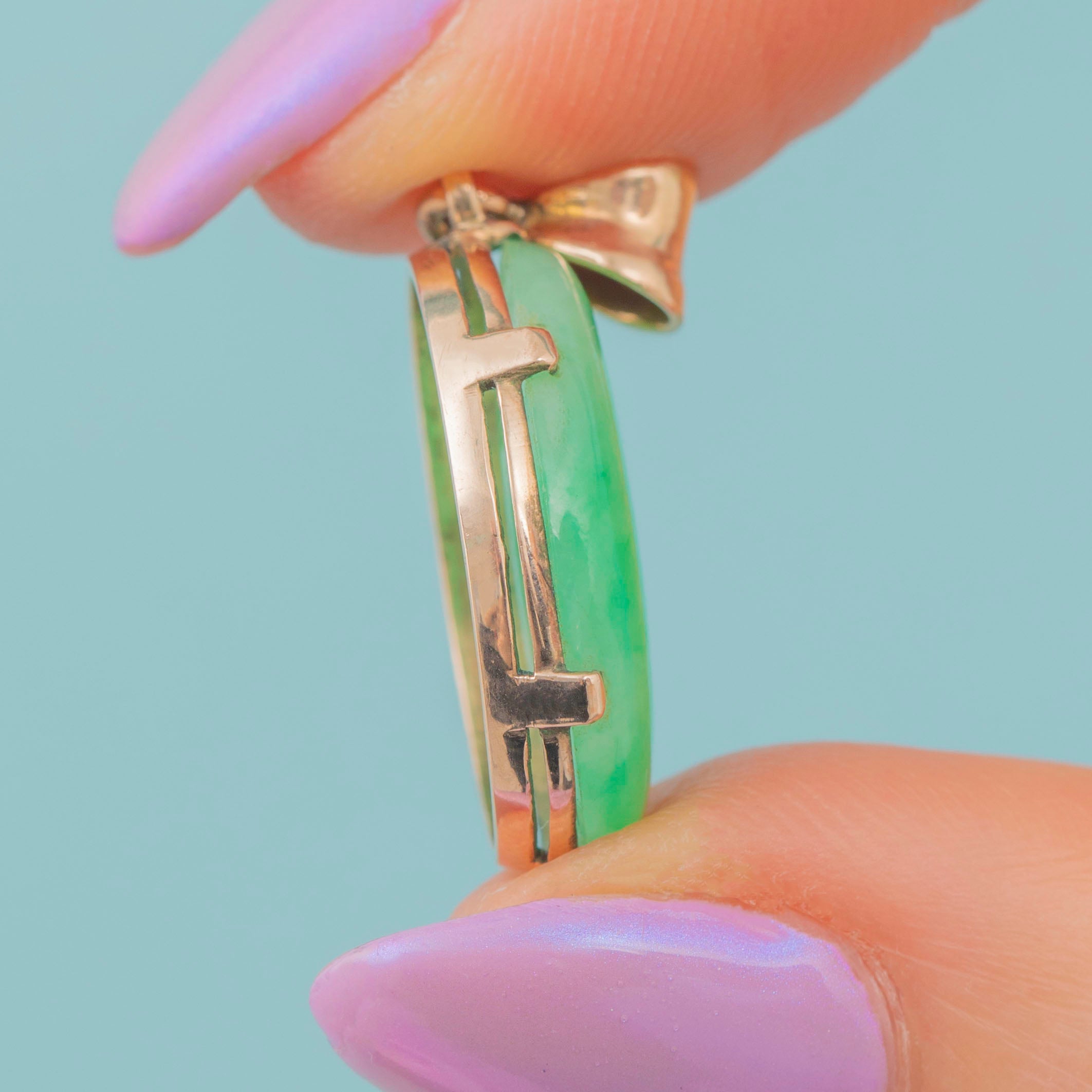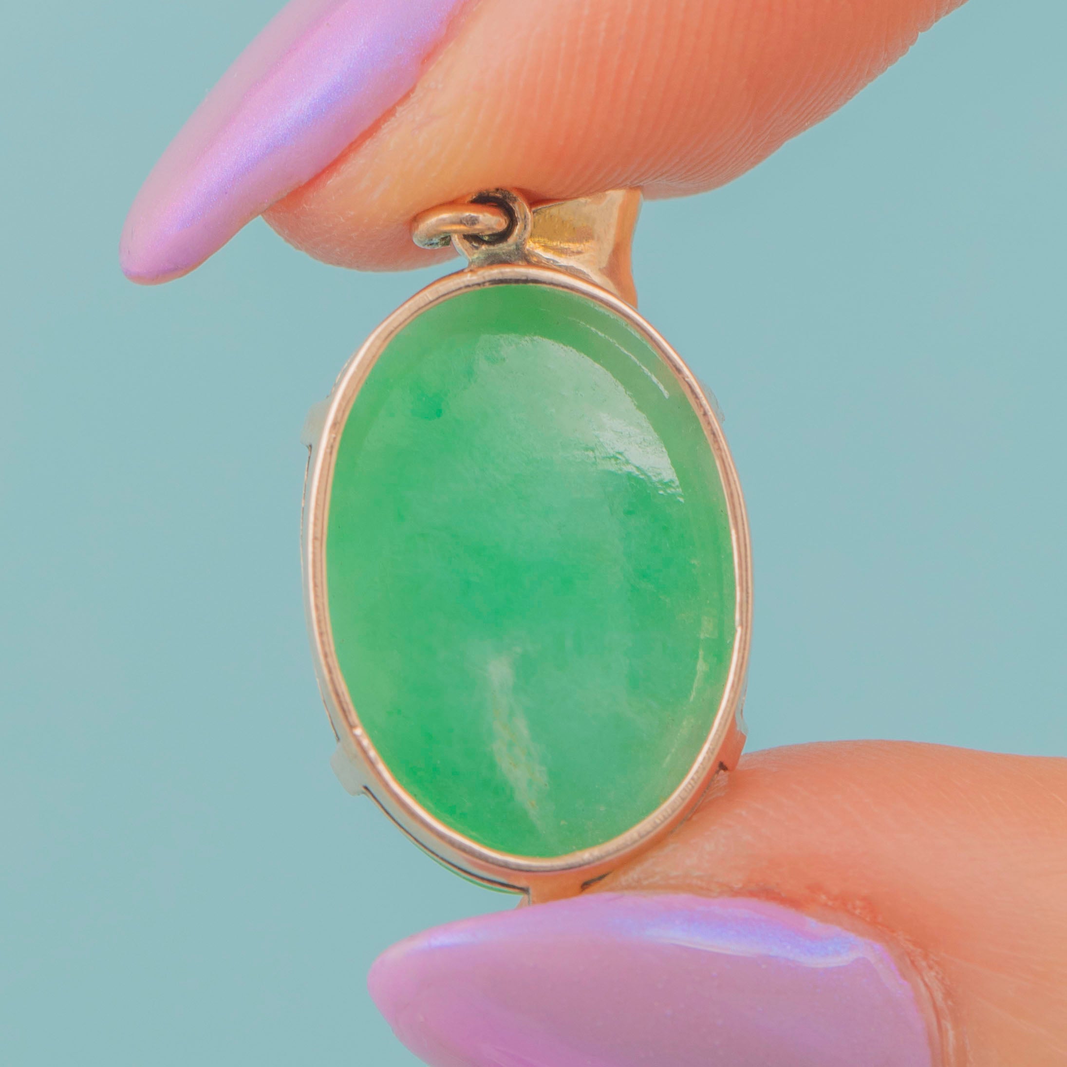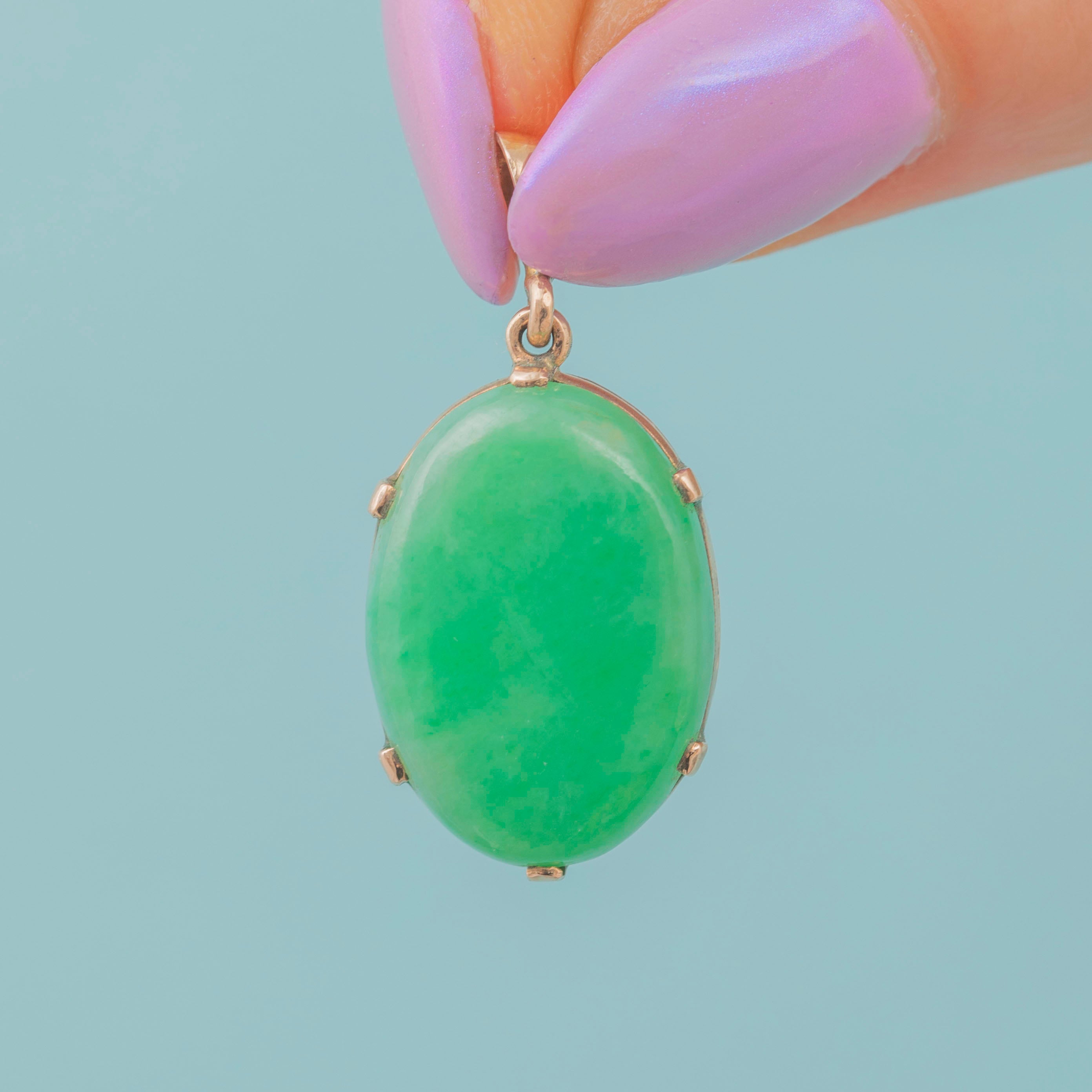 Add a vibrant pop of colour to your décolletage with this Art Deco 9ct Gold Jade cabochon pendant!