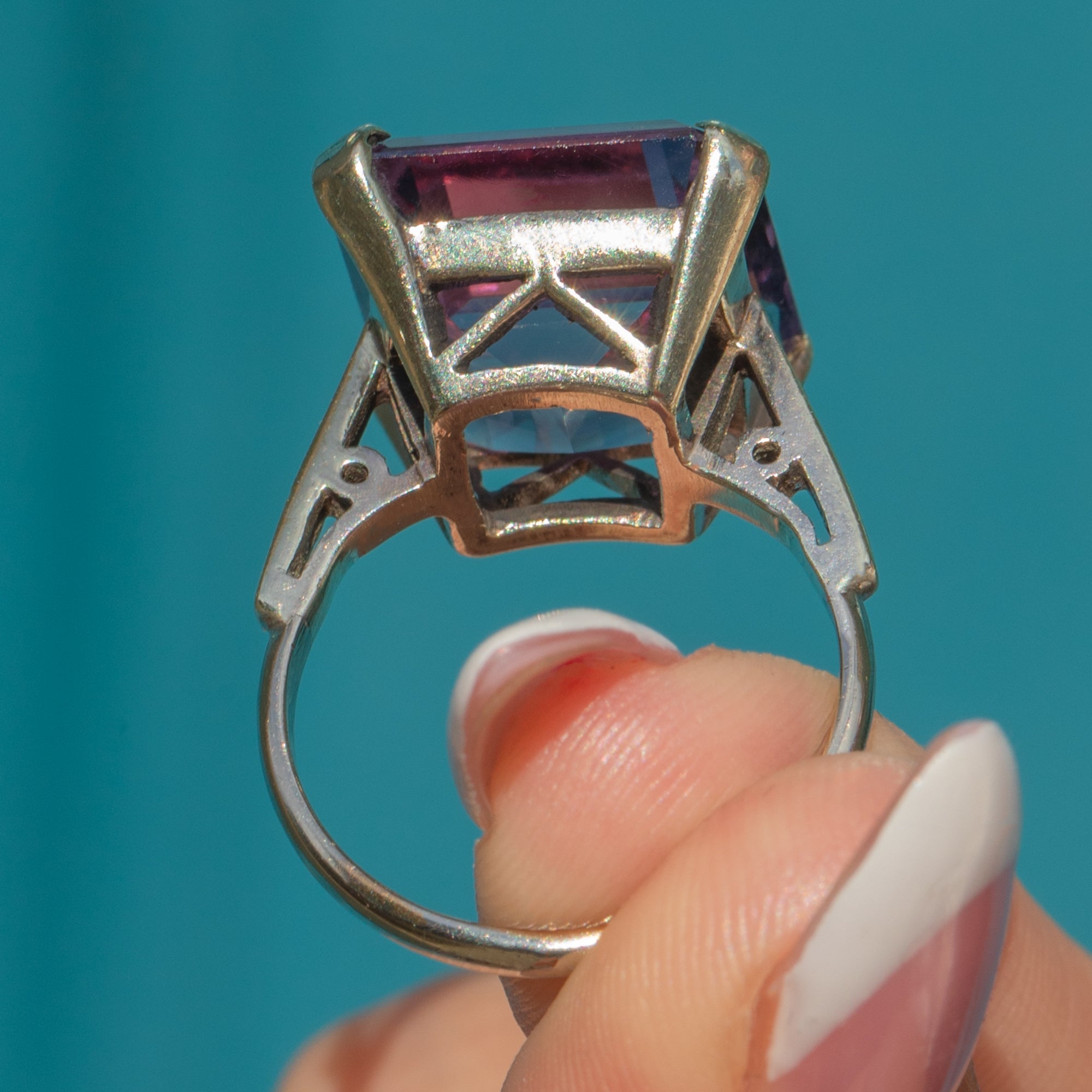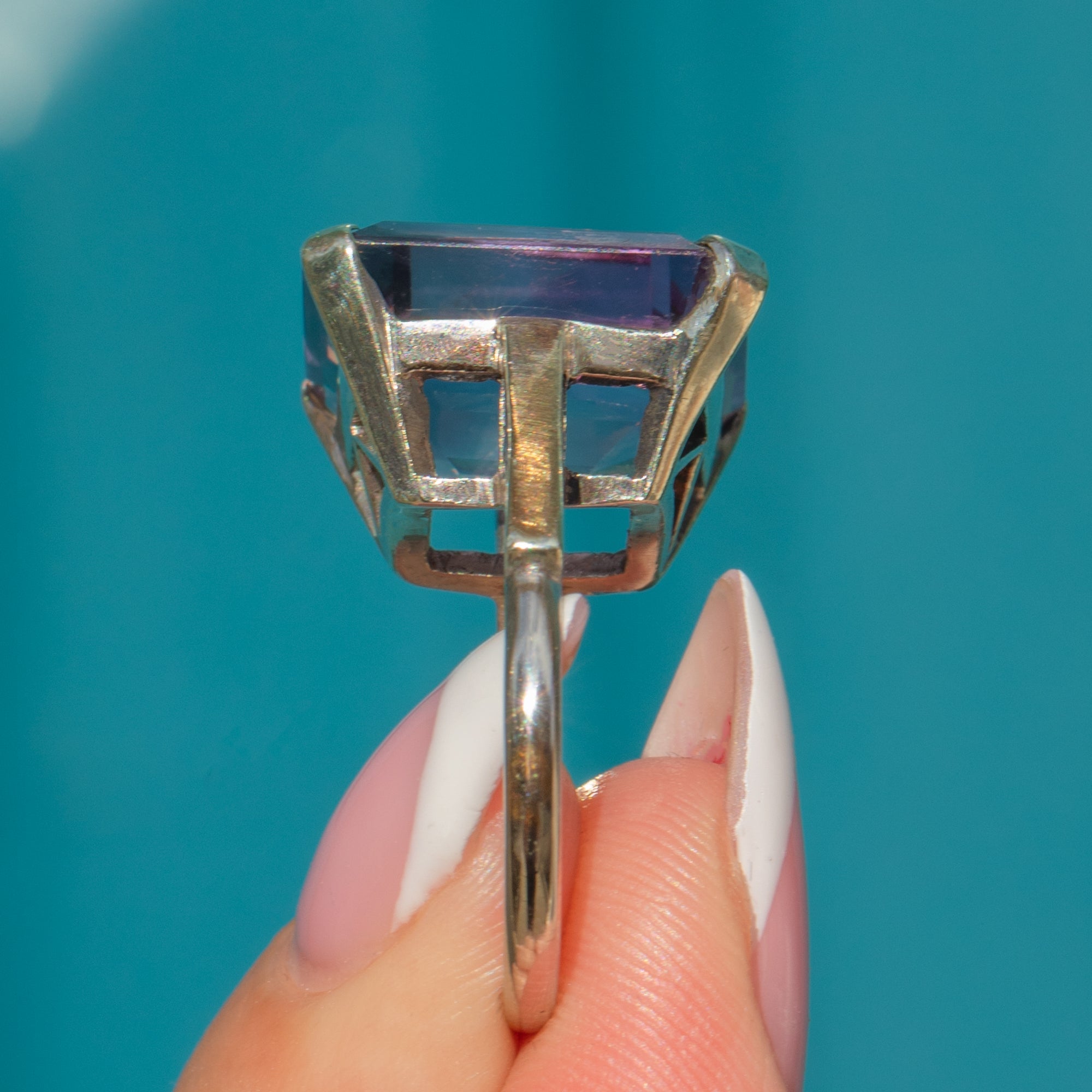 Art Deco 9ct White Gold Emerald-Cut Amethyst Cocktail Ring