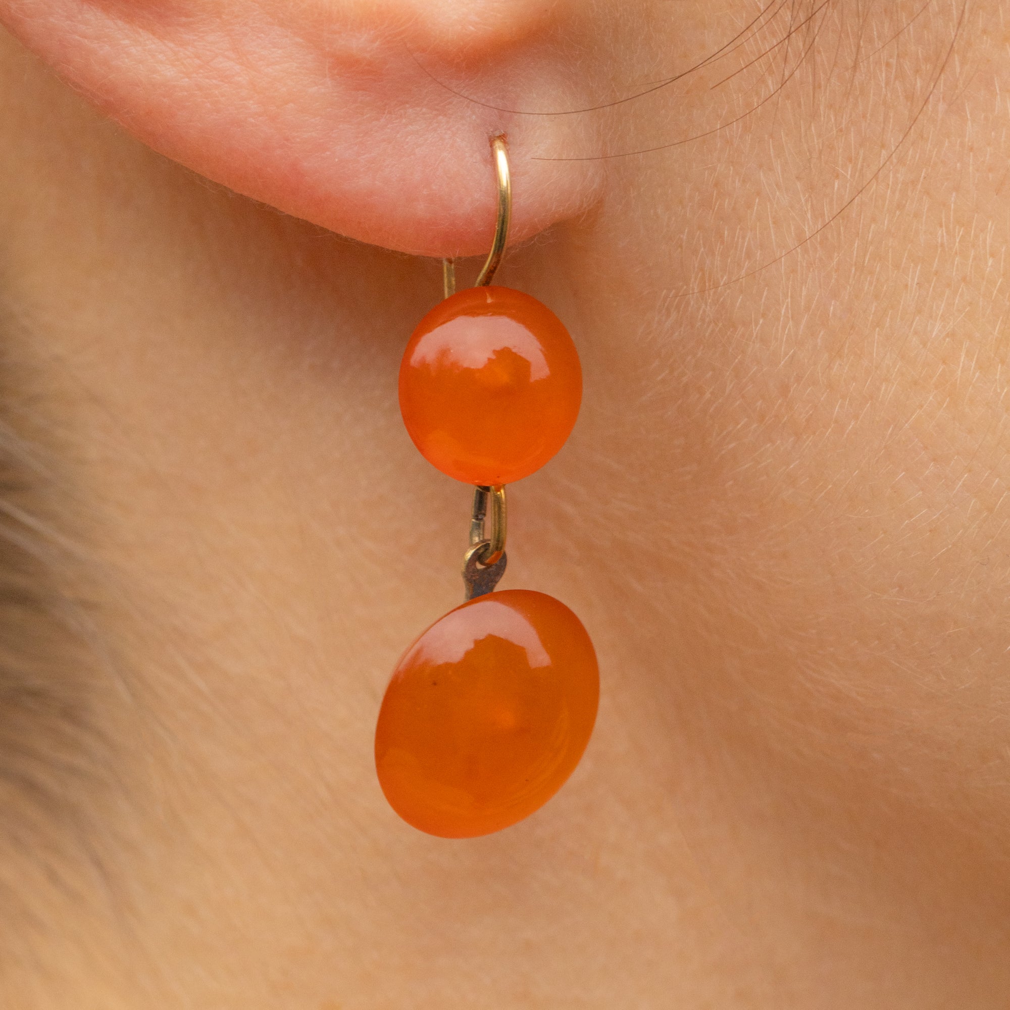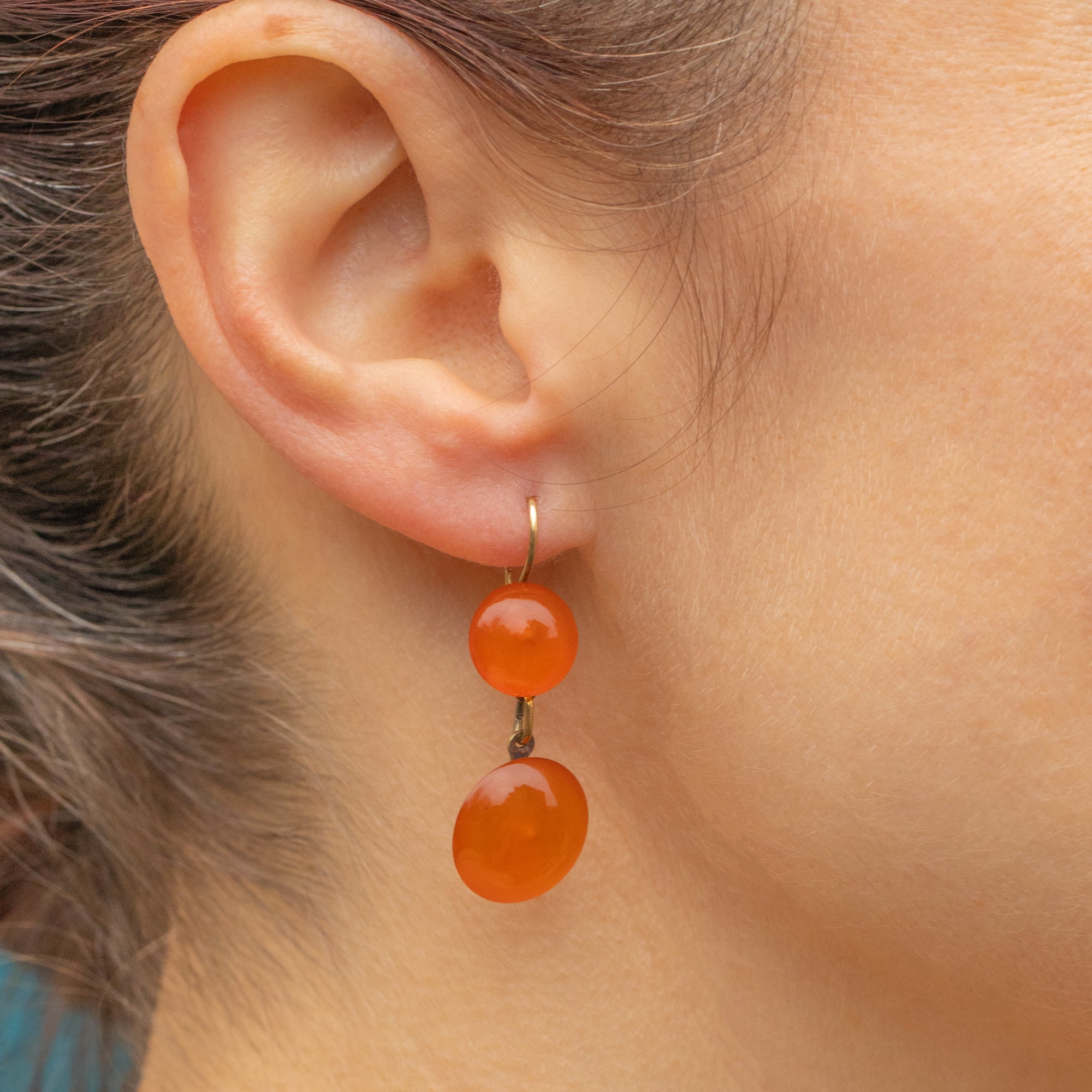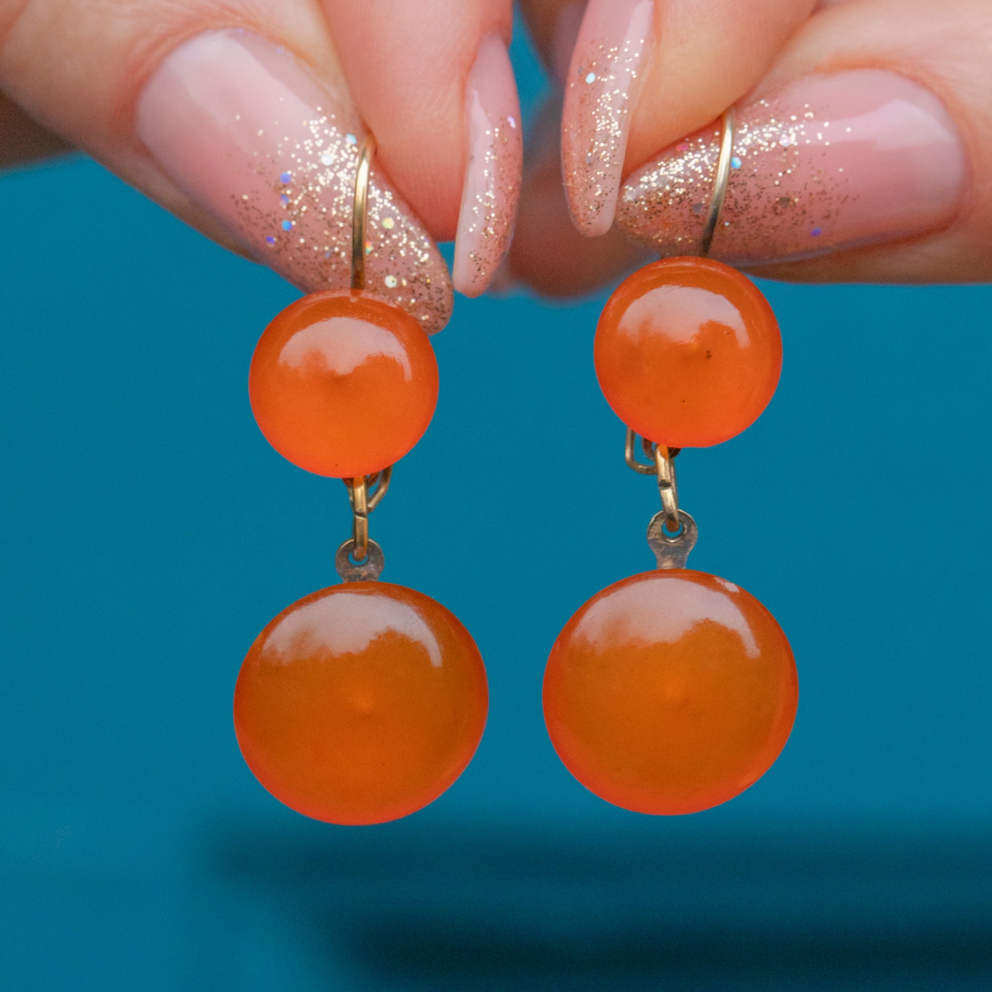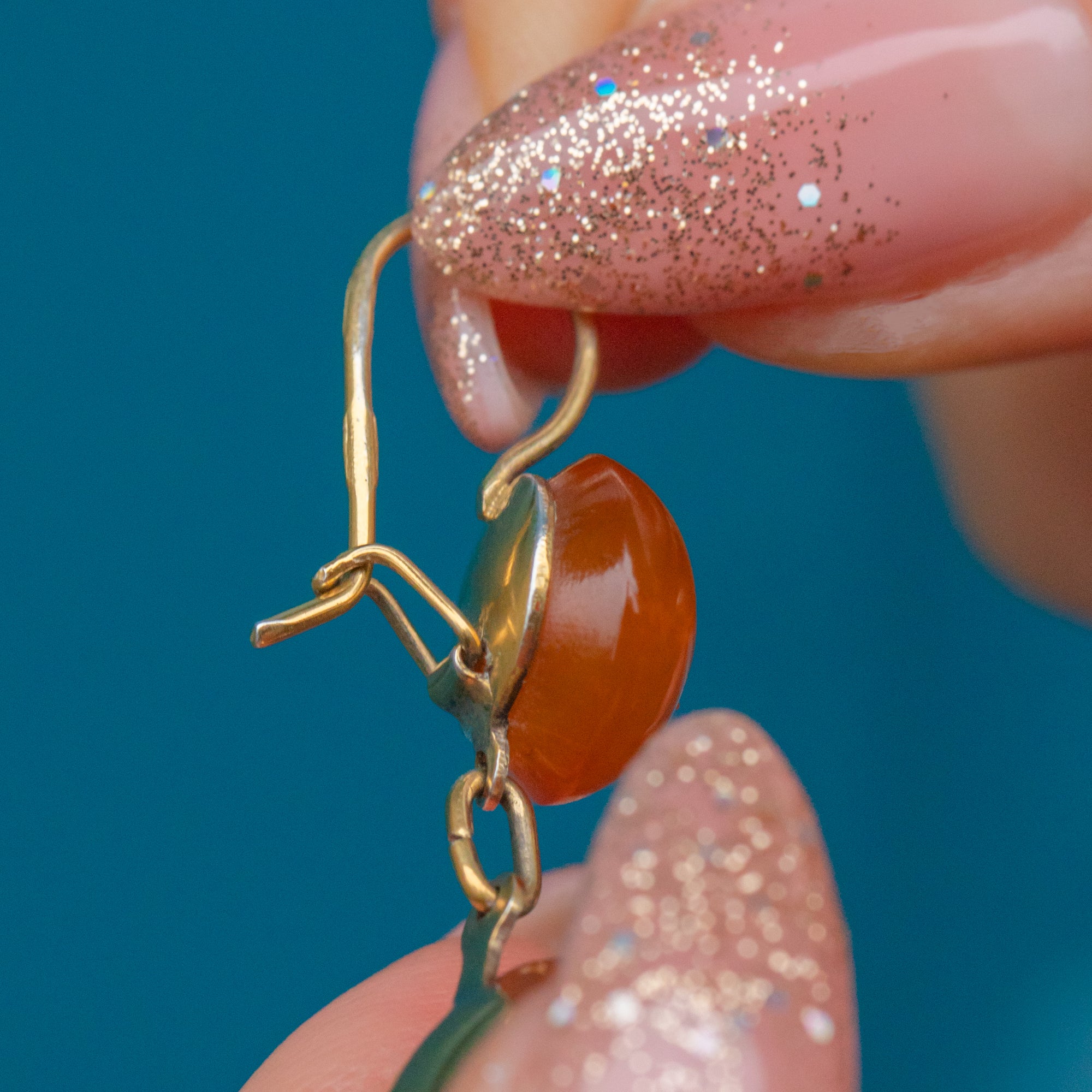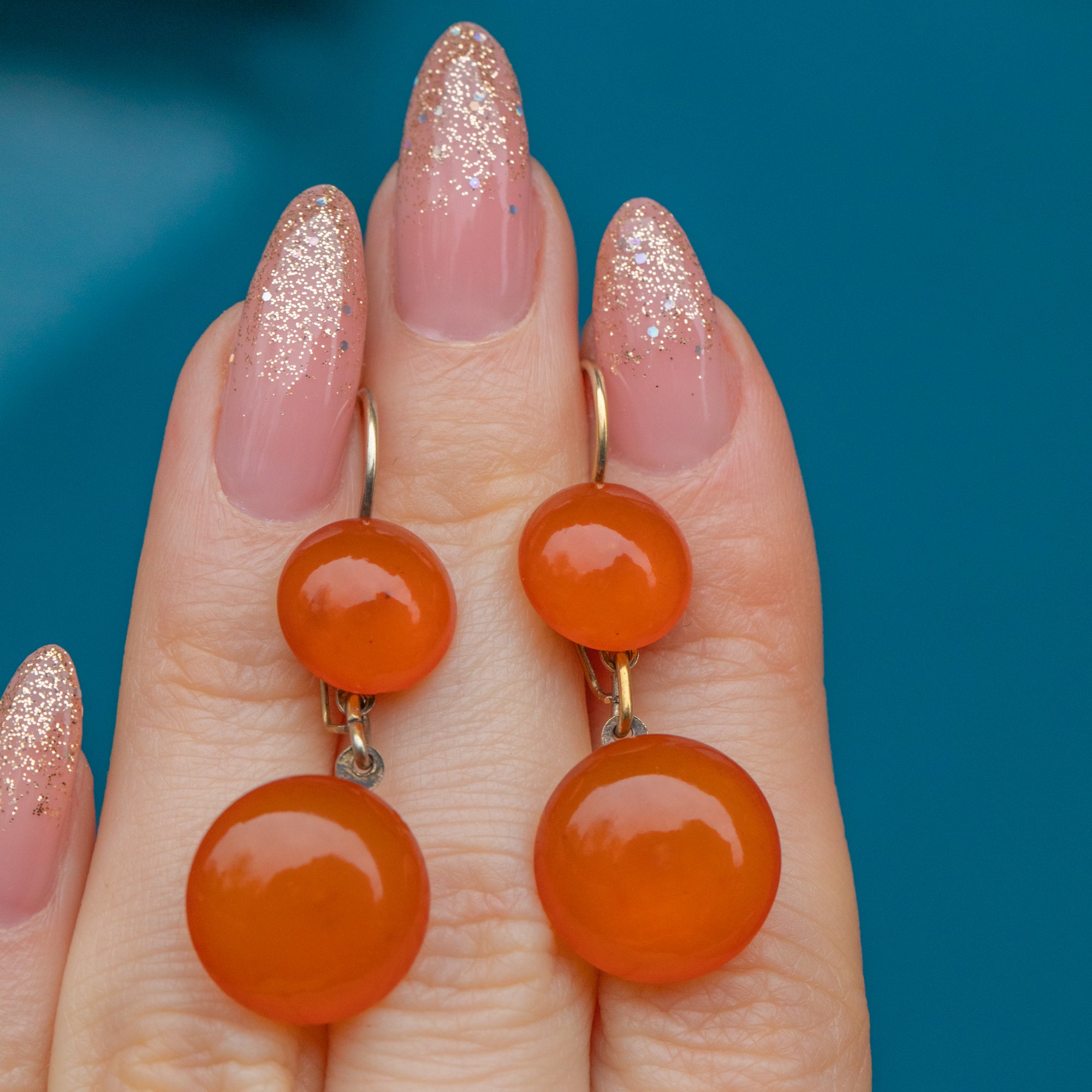 This delightful pair of Art Deco Amber Double Drop Earrings are simply gorgeous! Each Amber gemstone boasts a rich, delicious burnt orange hue that will add the perfect pop of colour to dark winter days!
