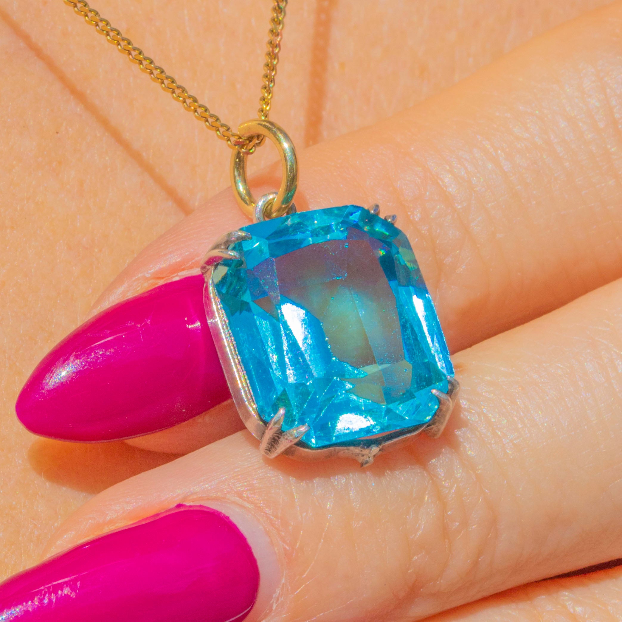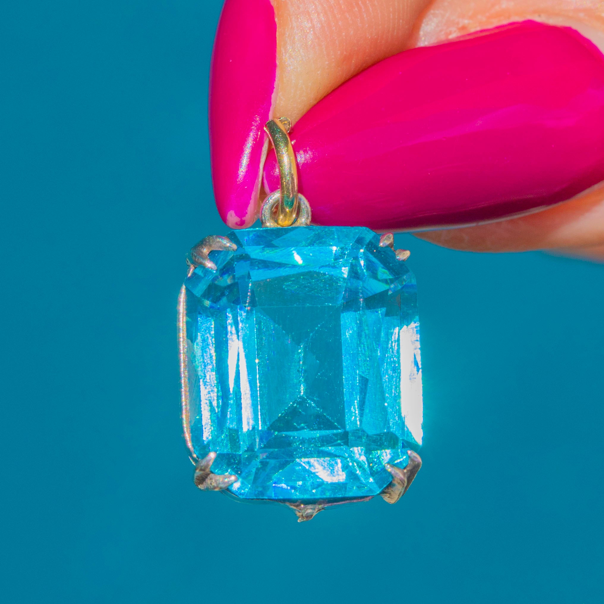 Add a refreshing pop of colour to your antique jewellery collection with this Art Deco blue Paste pendant! Vivacious sparkles emanate from the perfectly cut facets of her arctic blue Paste, creating an eye-catching display as they catch the light.