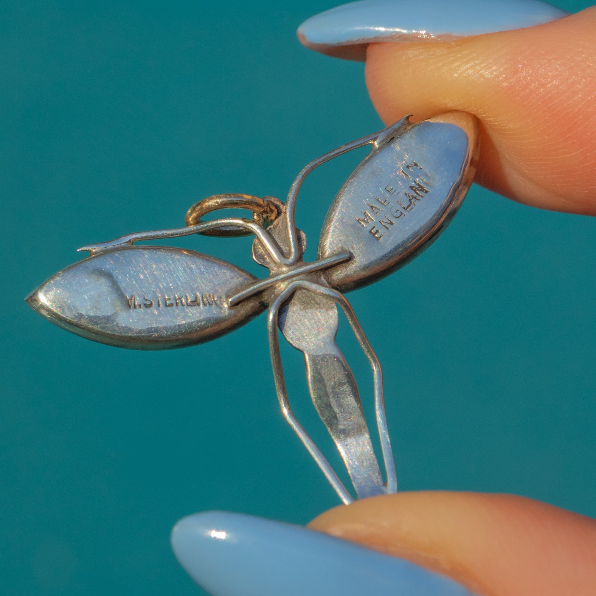 EXCELLENT. This Art Deco Silver butterfly wing dragonfly pendant is in excellent condition. Each butterfly wing has been preserved wonderfully and is free from any visible signs of wear. Her Silver is lustrous and intricately detailed. With a secure jump ring, you can wear her with confidence.