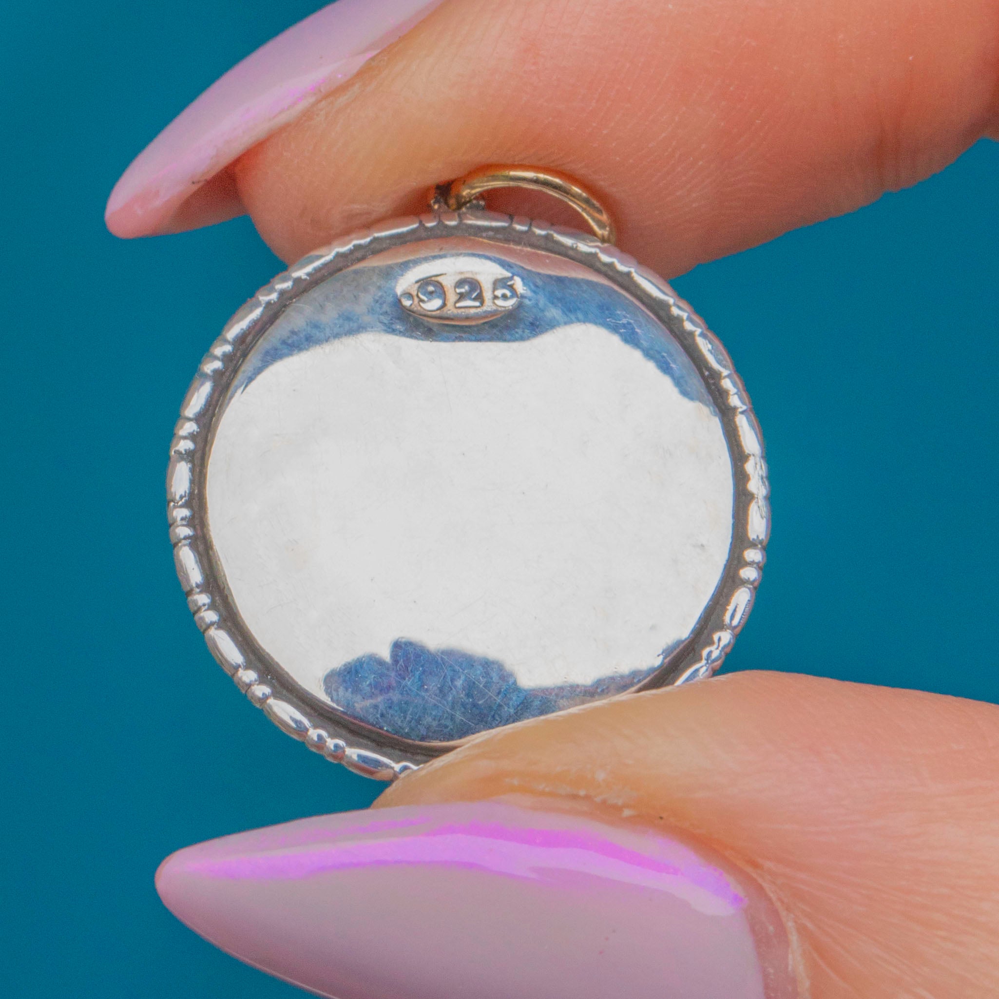 Crafted in Sterling Silver, this pendant captures the elegance and whimsy of the Art Deco era. A lovely collector’s piece that adds a touch of vintage charm and colour to any chain or layered necklace look.