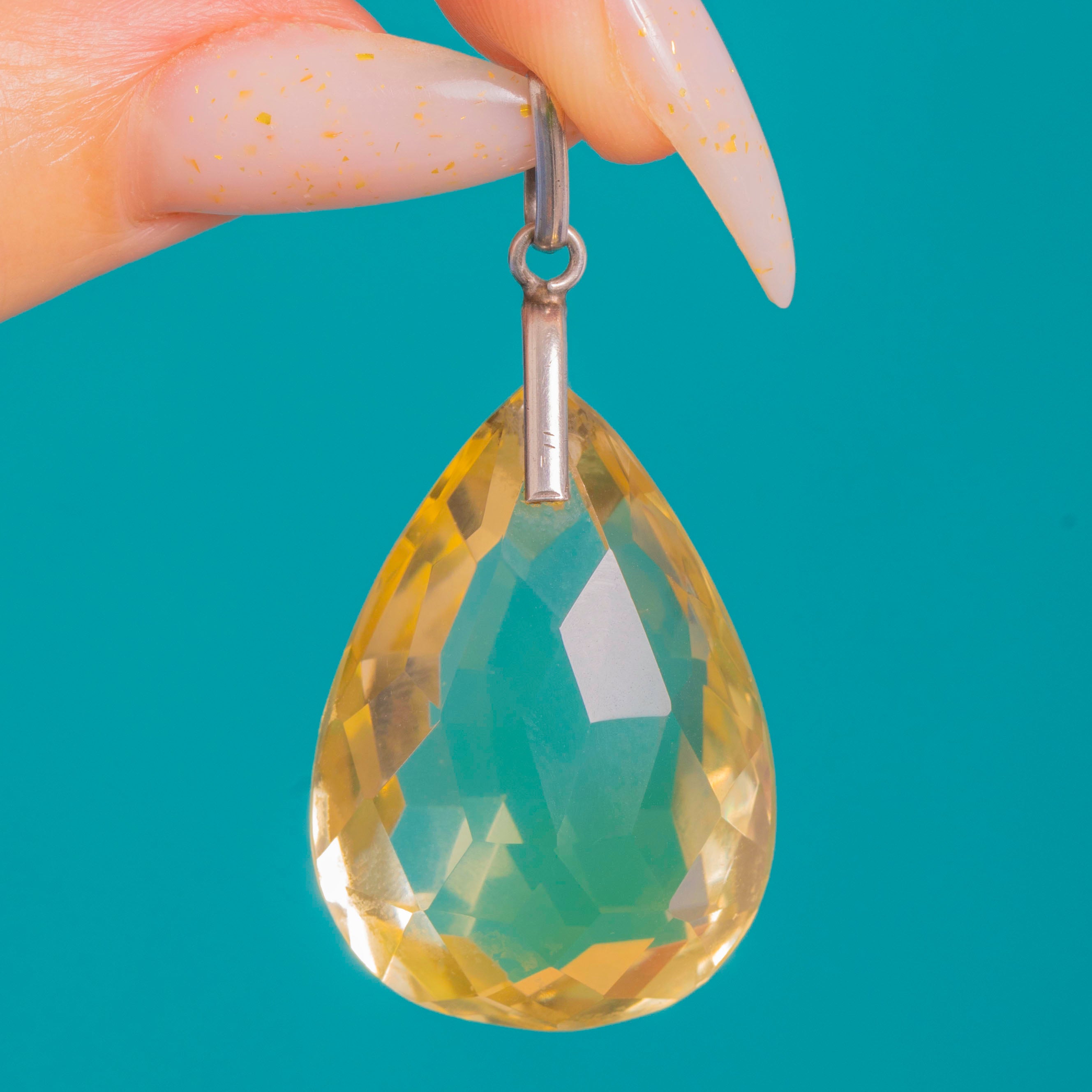 Art Deco Silver Faceted Citrine Pear Pendant 40.00ct