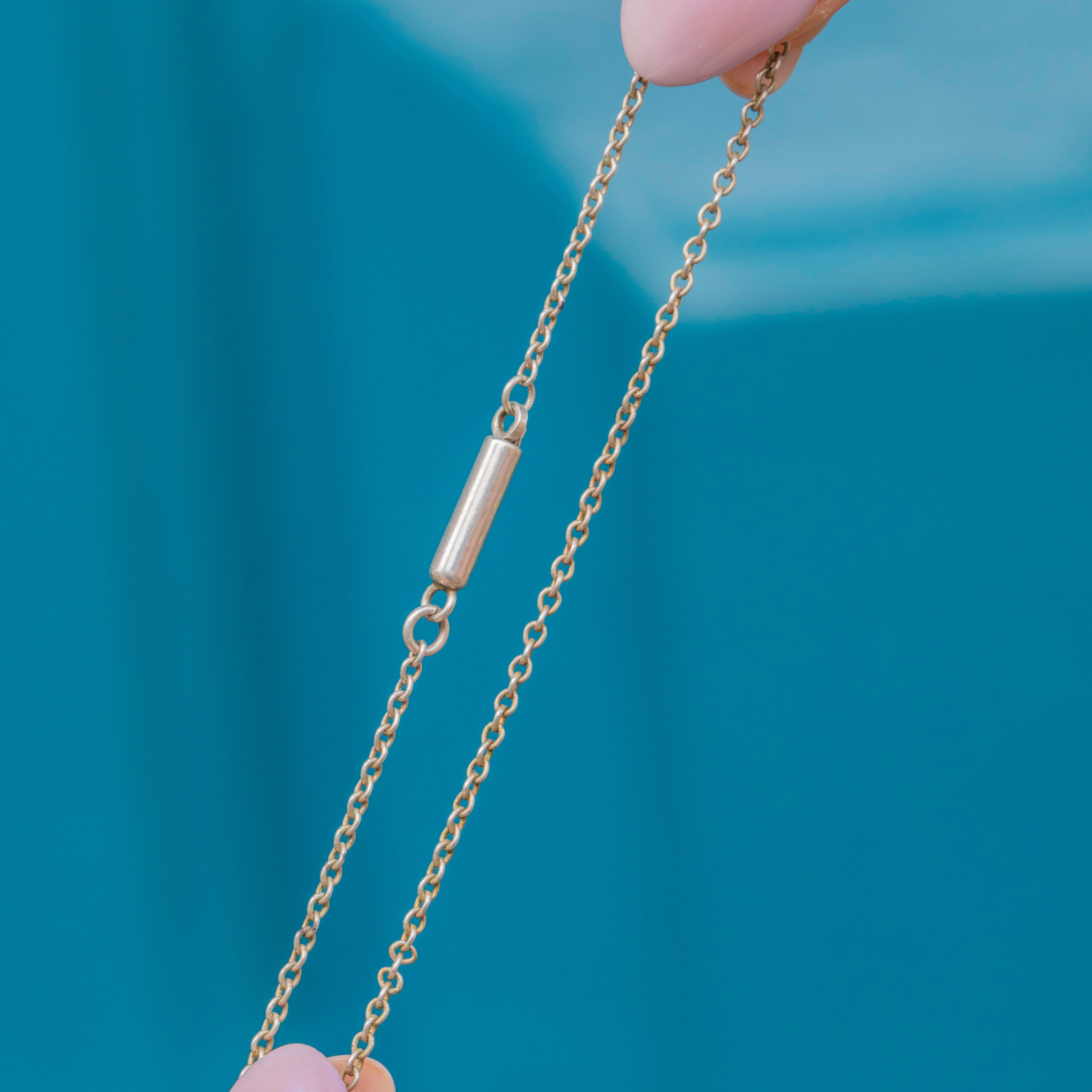 The sunny pear-cut Citrine is suspended from an 18" Sterling Silver chain, allowing her to rest gracefully across your décolletage. Her soft, creamy tones mean this Art Deco piece pairs perfectly with a range of jewellery, making her the ideal versatile statement piece to add to your collection!