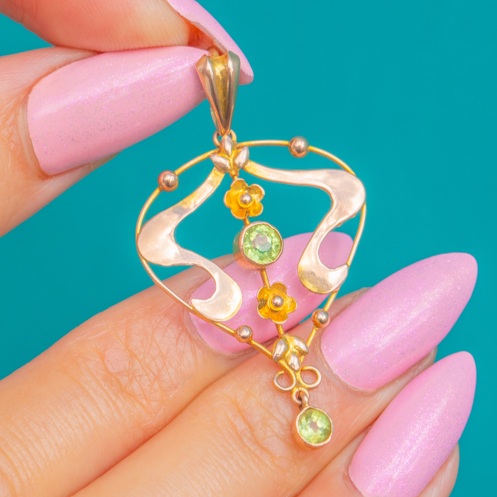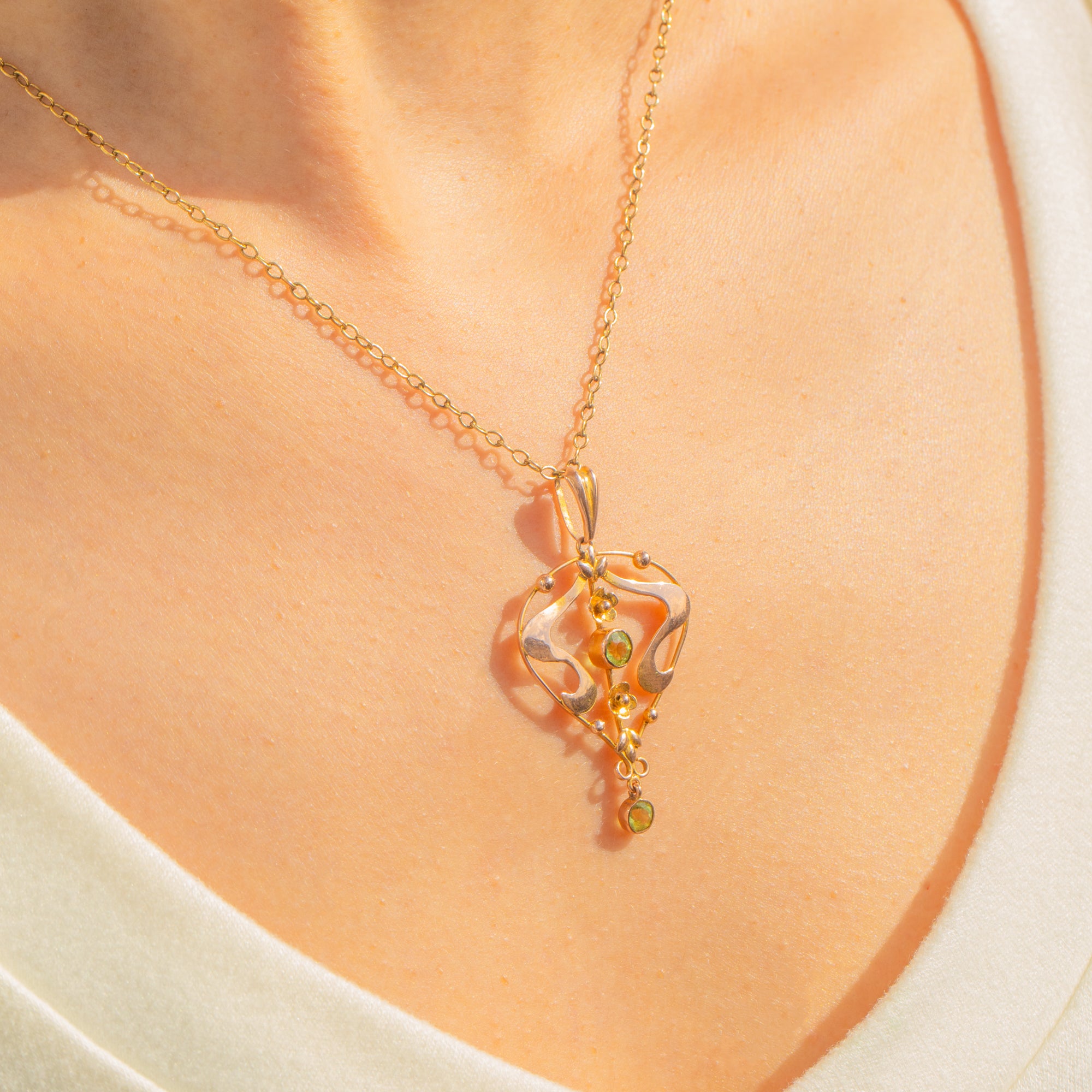 Art Nouveau 9ct Gold Peridot Lavalier Pendant