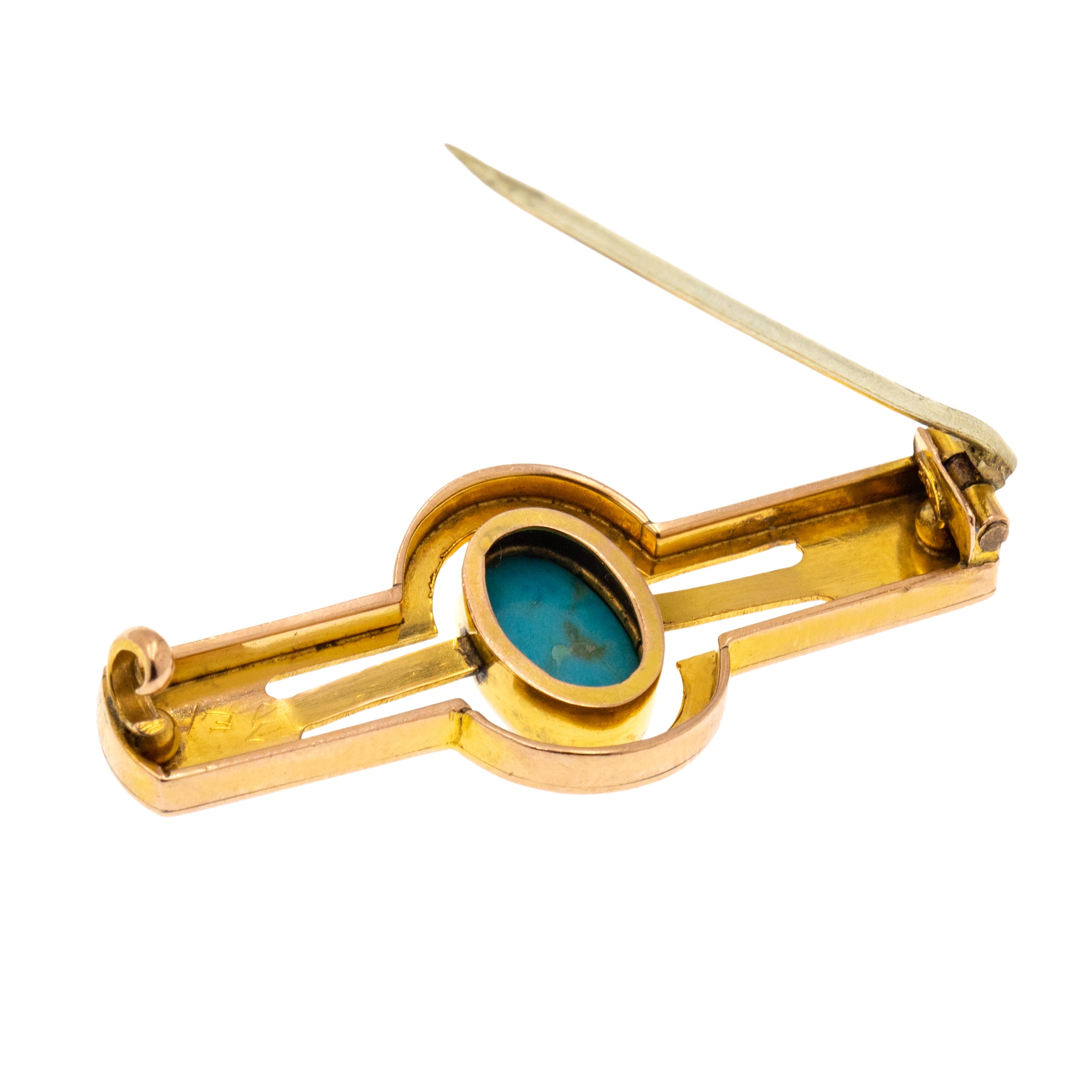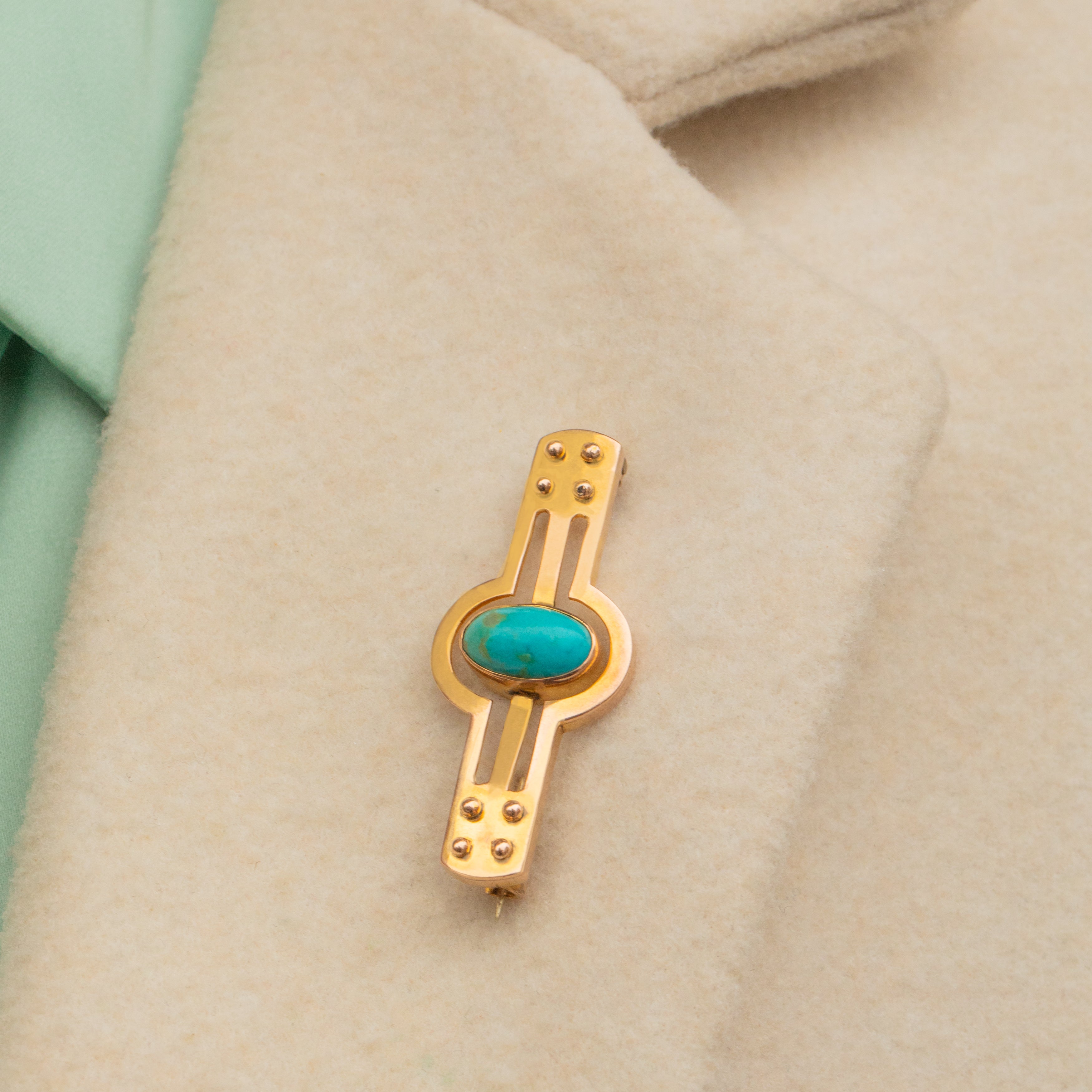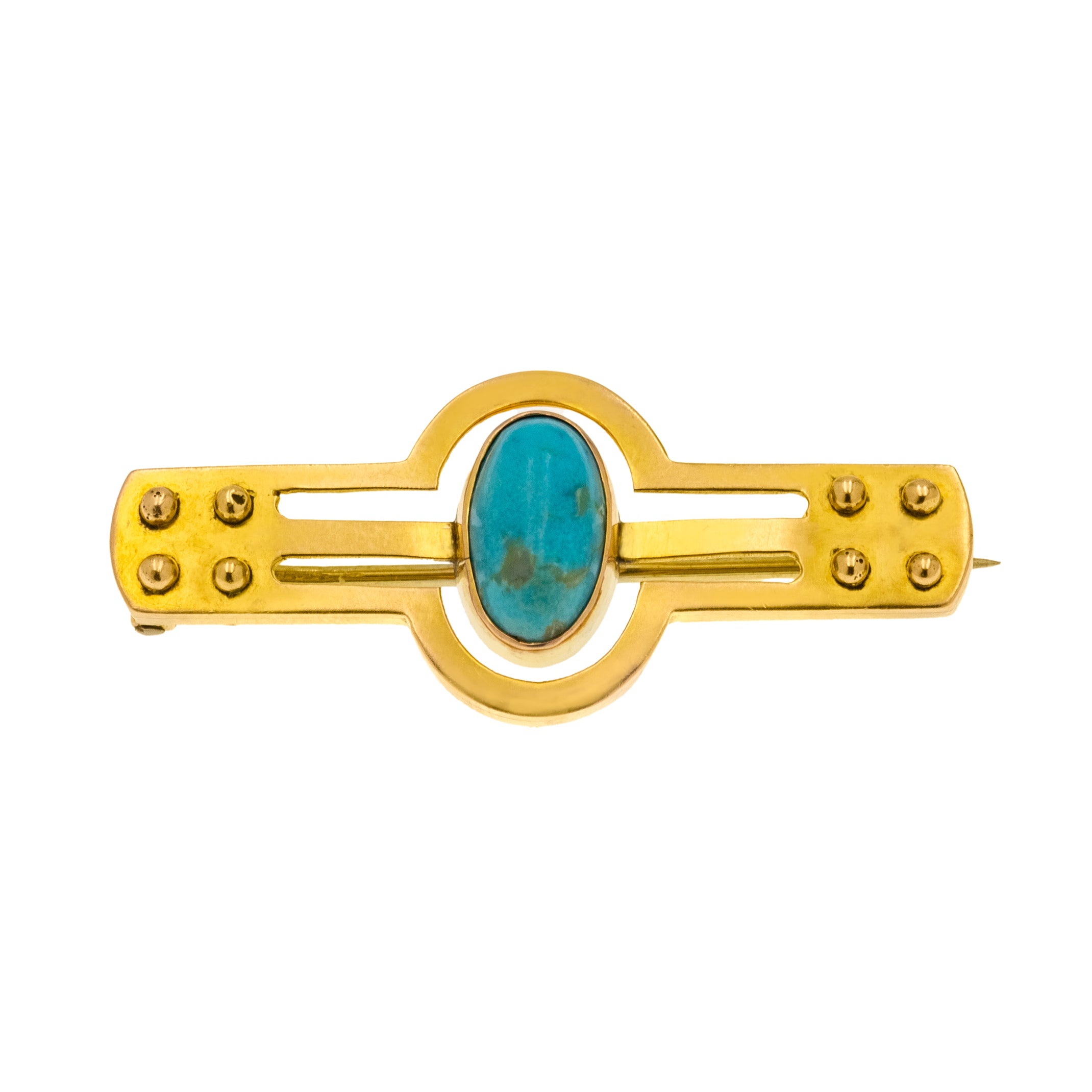 Art Nouveau 9ct Gold Turquoise Bar Brooch - Murrle Bennett