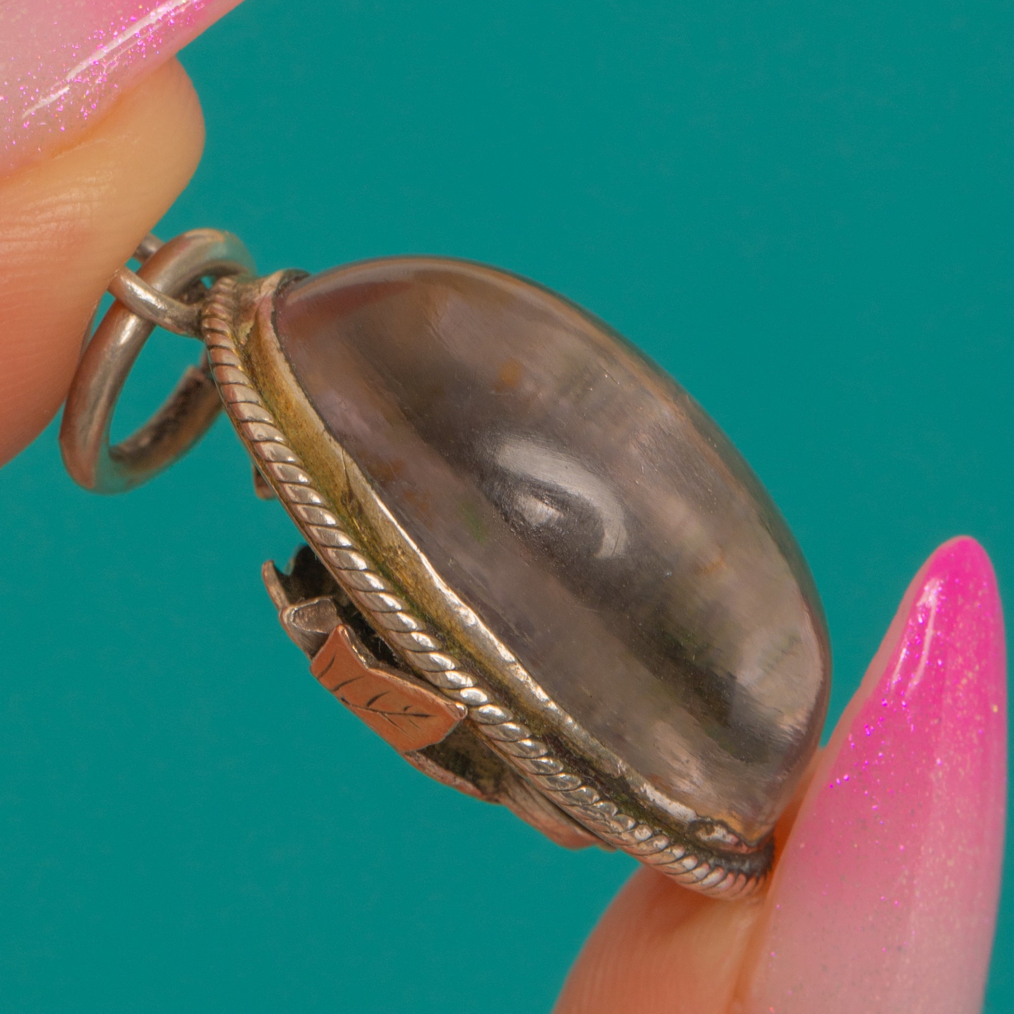 Art Nouveau Silver Rock Crystal Pendant with Gold Leaves Item added