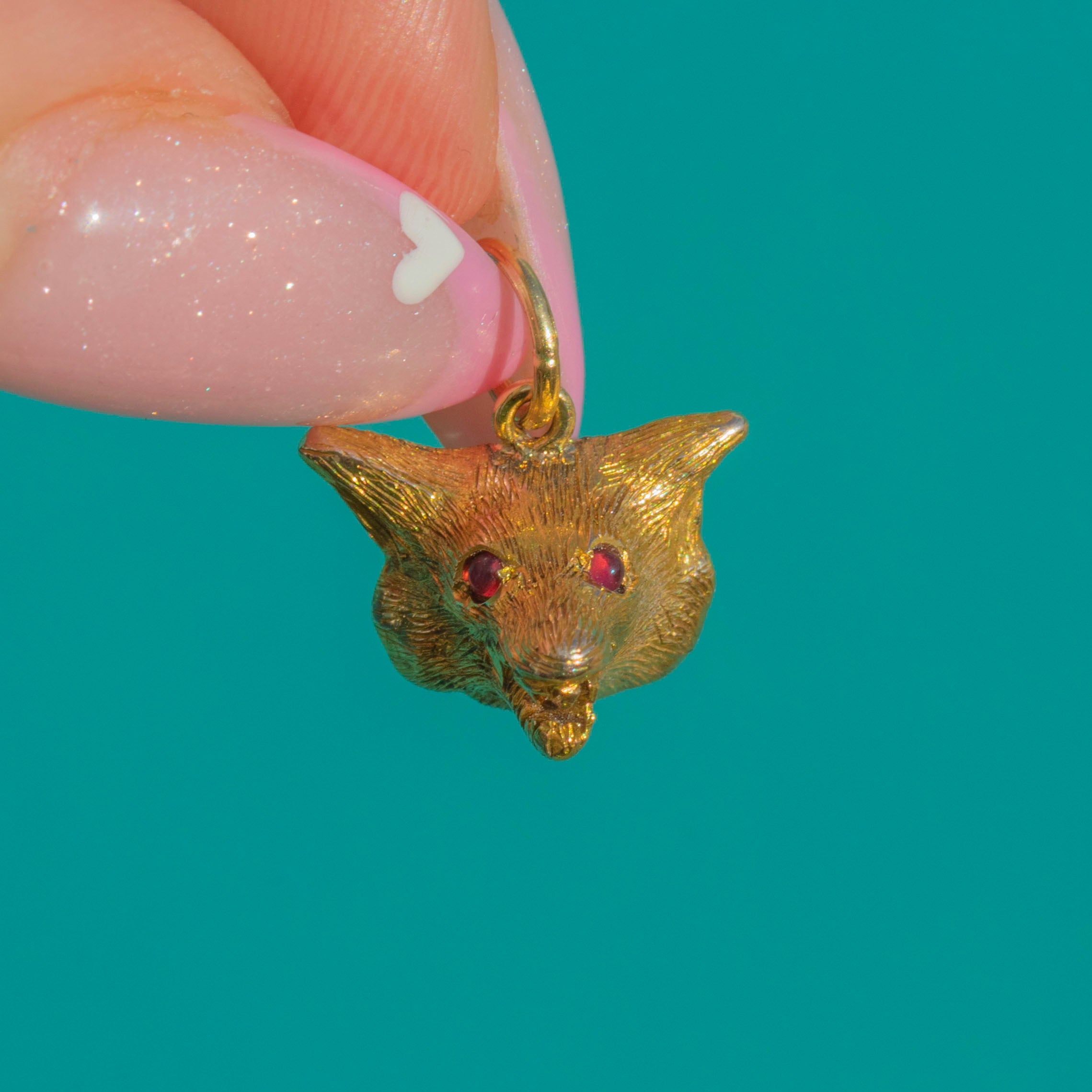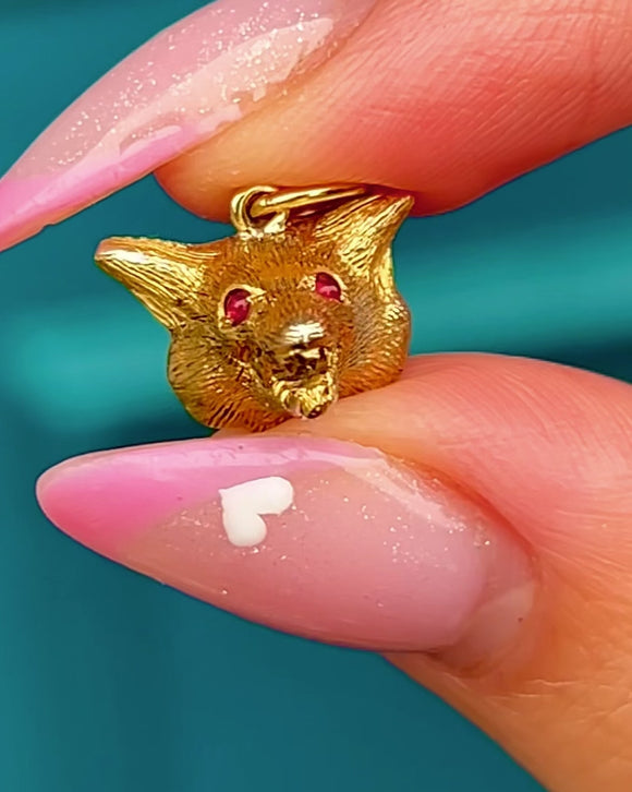 Charming 10ct Gold Fox Charm, Red Paste Cabochon Eyes Item added