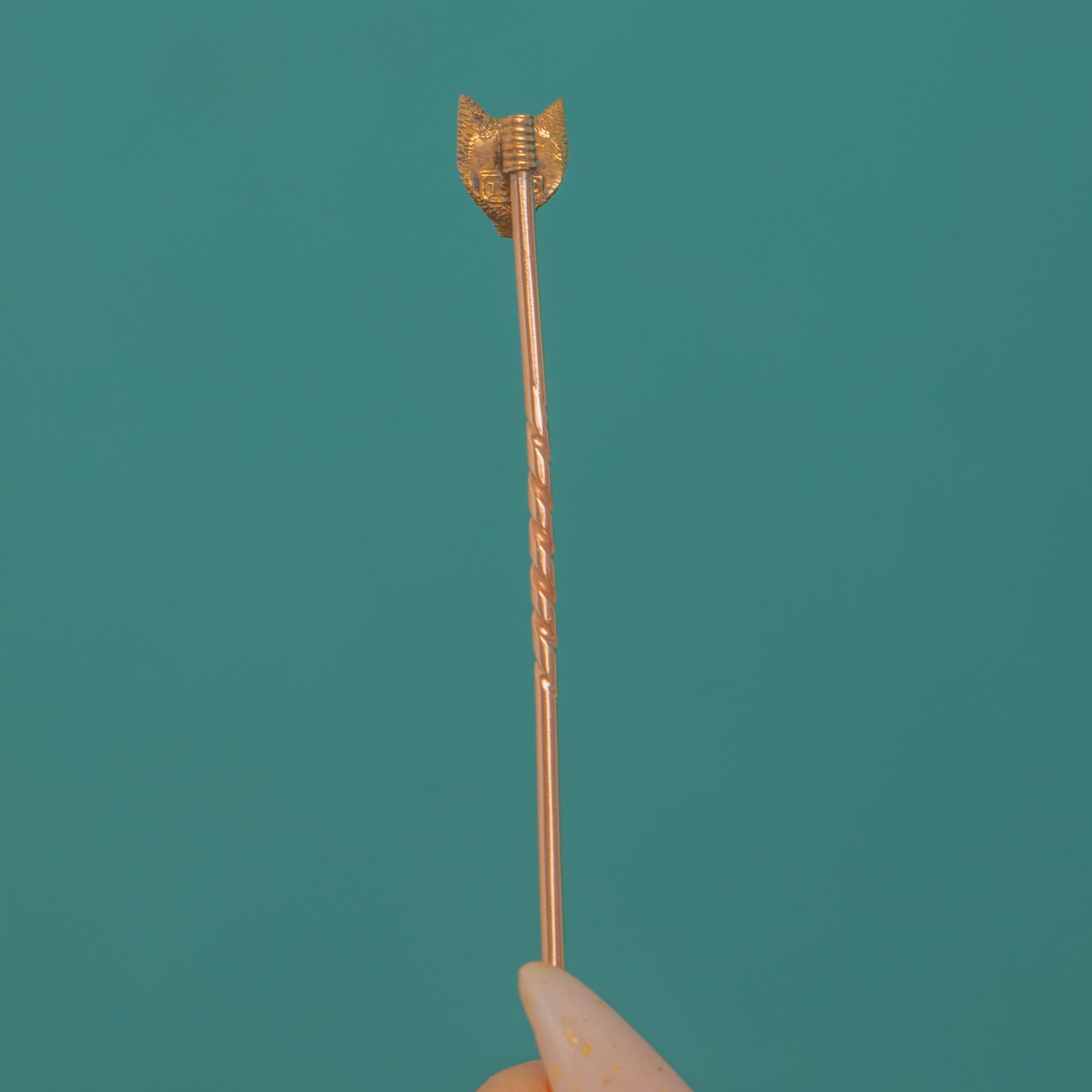 Charming Original Late Victorian 15ct Gold Fox Stick Pin with Ruby Eyes