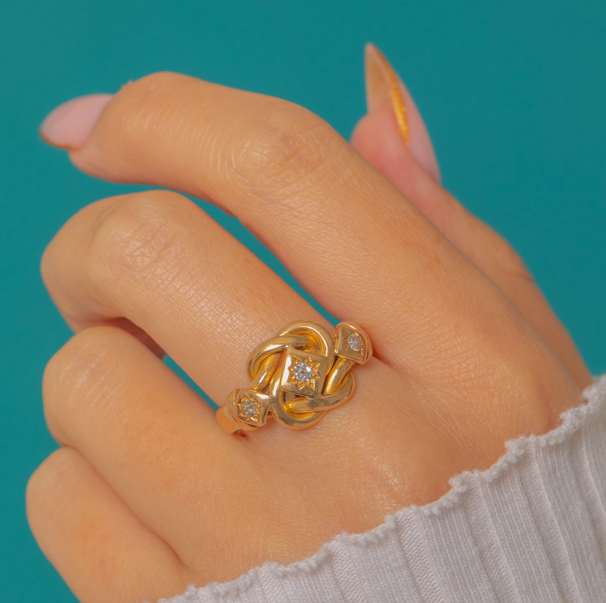 Chunky Antique 18ct Gold Diamond Knot Ring, c.1913