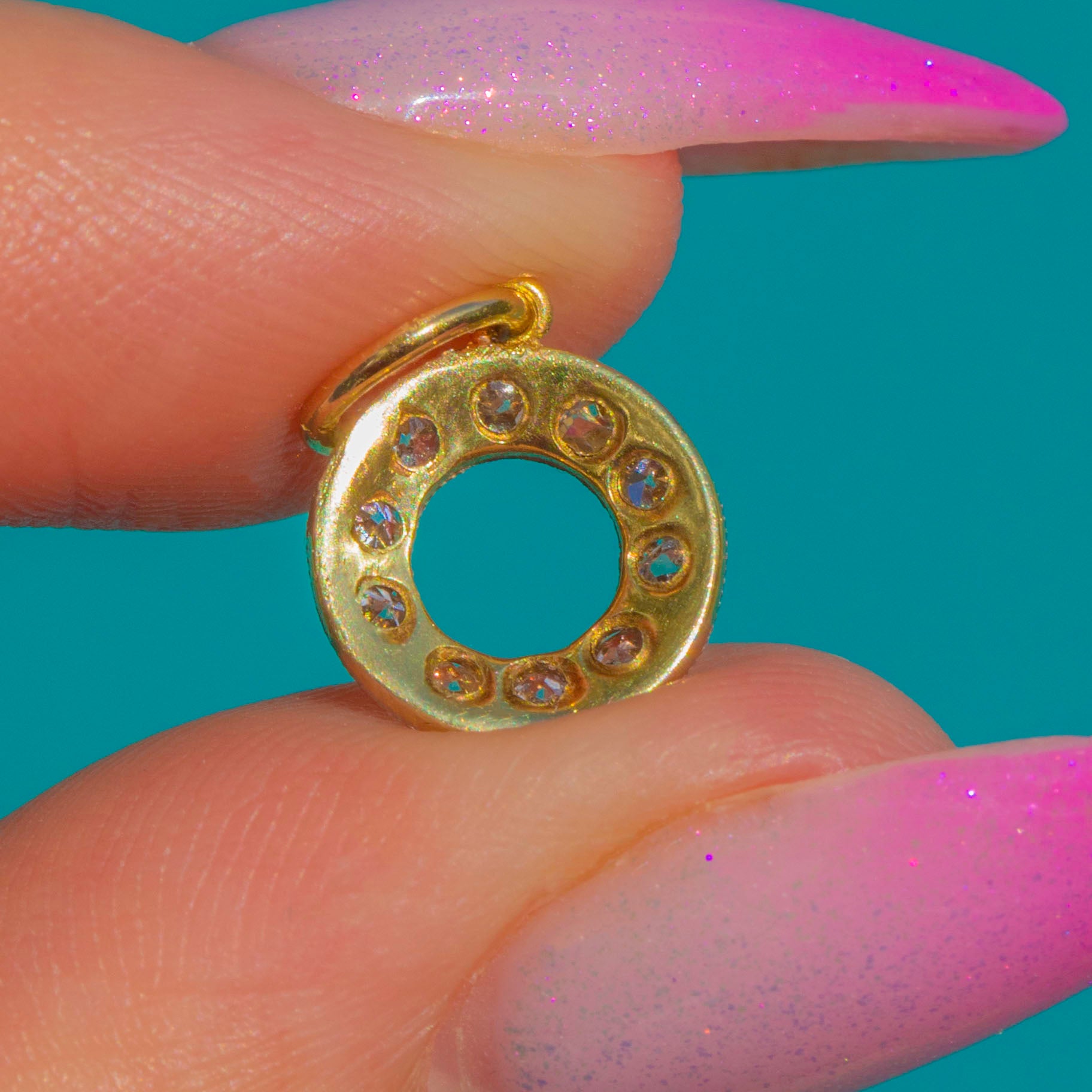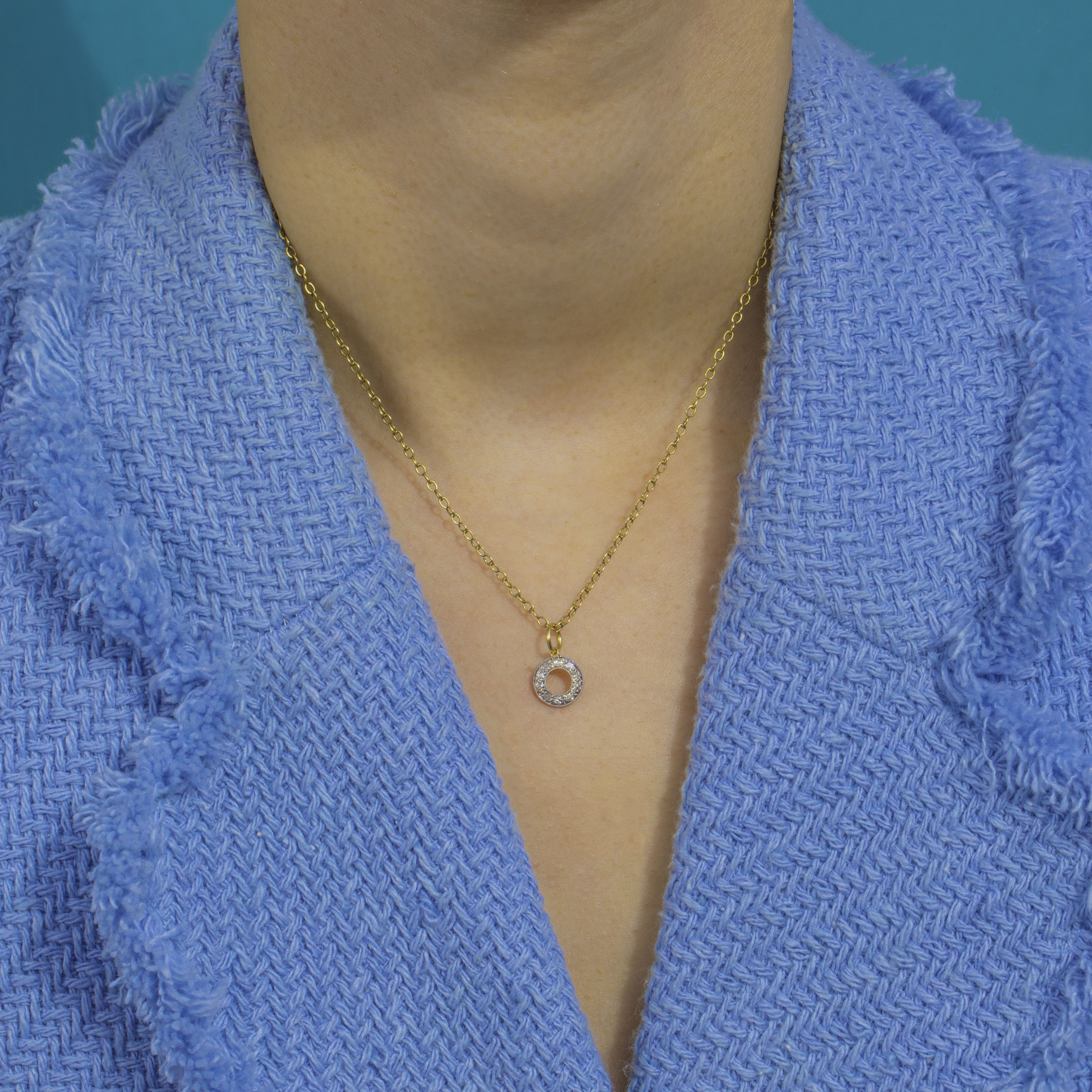 Petite yet radiant, this geometric open circle captures the clean lines and refined glamour of the 1920s–30s. Simply slip onto your favourite chain for a touch of scintillating light, day or night.