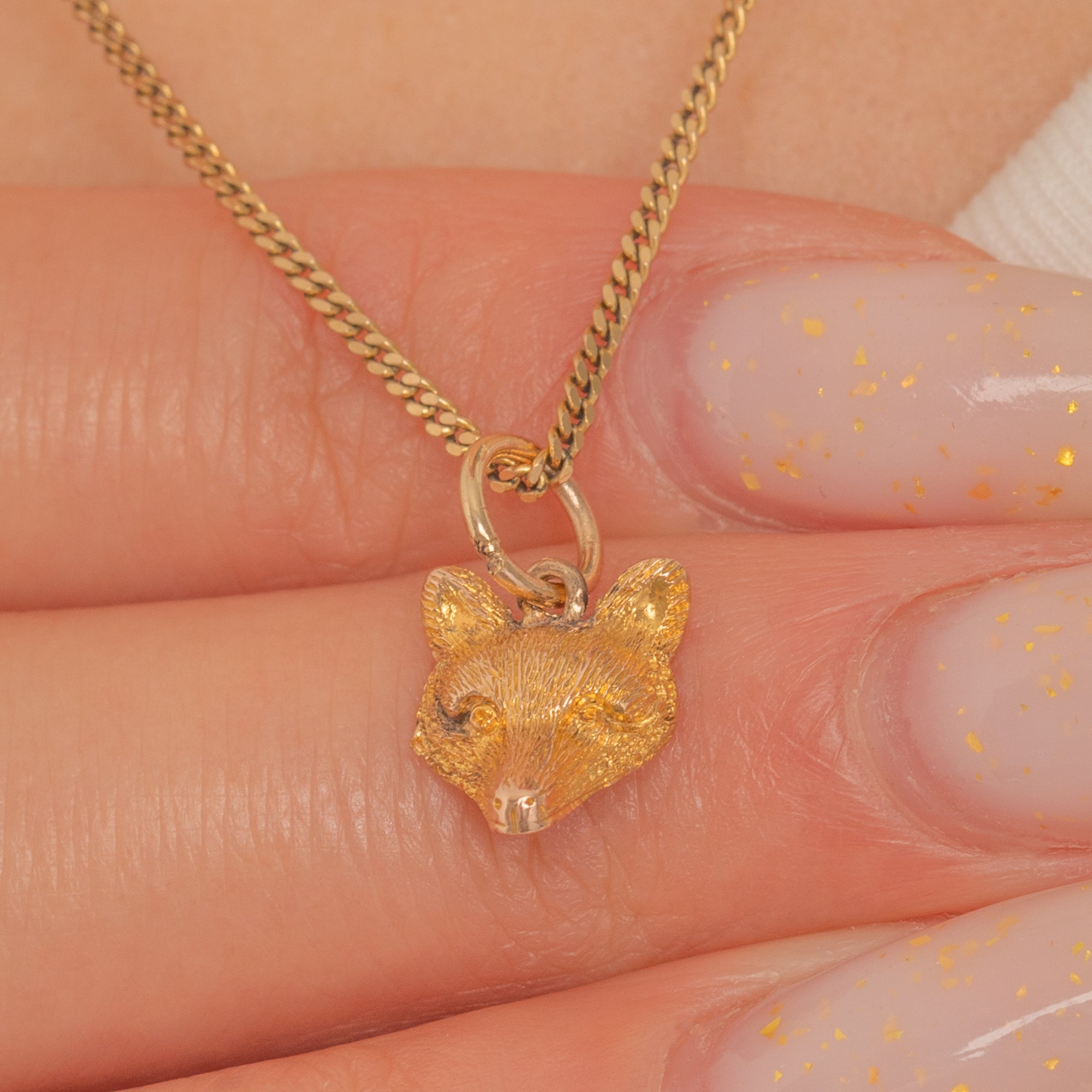 A charming Victorian 9ct Gold fox head charm, finely modelled in high relief with beautifully textured fur and a warm golden glow. Petite yet full of character, it captures the sly, spirited nature of the fox with crisp detailing throughout.
