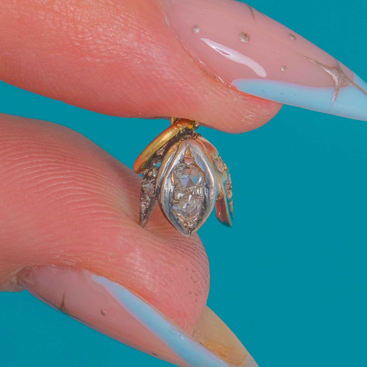 The two-tone palette adds beautiful depth, while open backs invite a gentle, candlelit sparkle from the Diamonds. Petite yet characterful, it’s an elegant whisper of late‑19th‑century craftsmanship for your favourite chain or charm curation.