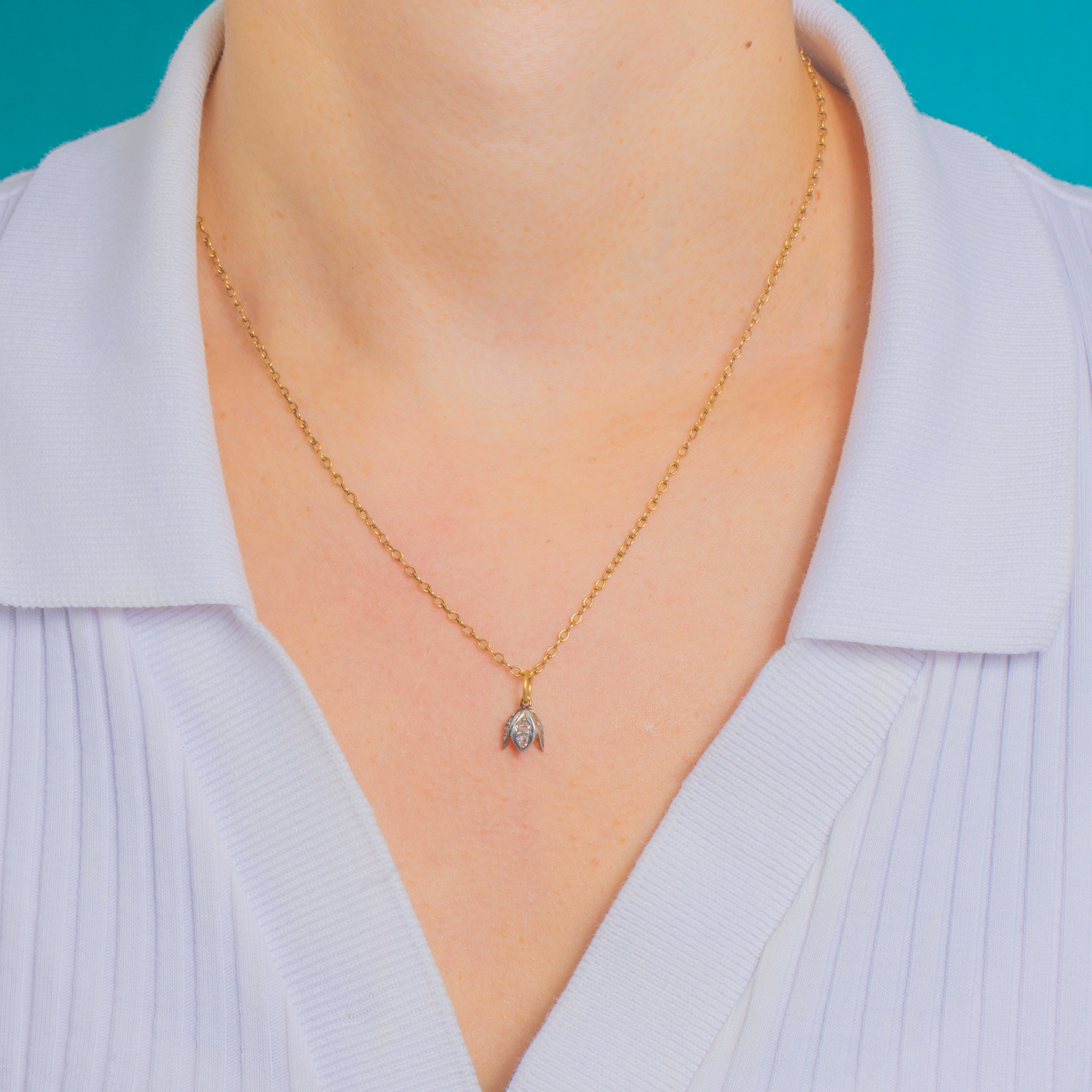 A delicately formed Victorian flower charm crafted in Silver and 18ct Gold and set with glinting rose-cut Diamonds. Petite and refined, its naturalistic trefoil bloom captures the soft, romantic sparkle that rose-cuts are loved for, framed by an elegant two-tone palette that feels effortlessly timeless.