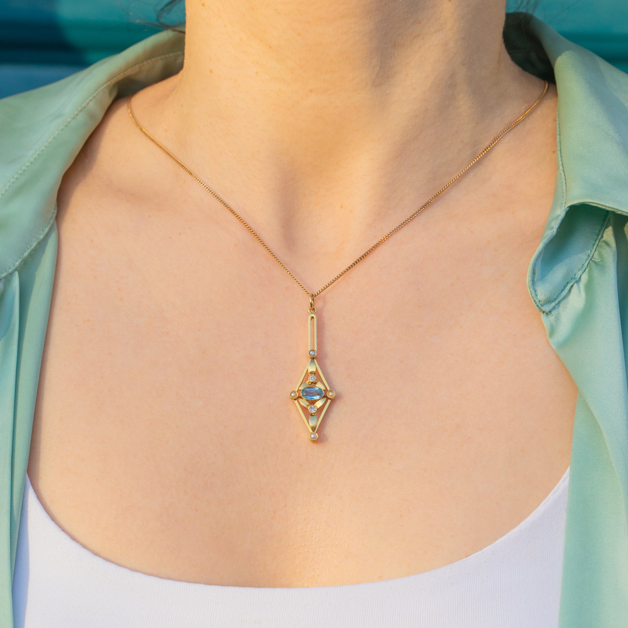 This Edwardian 15ct Gold Aquamarine Diamond drop pendant will instantly elevate your antique jewellery collection!