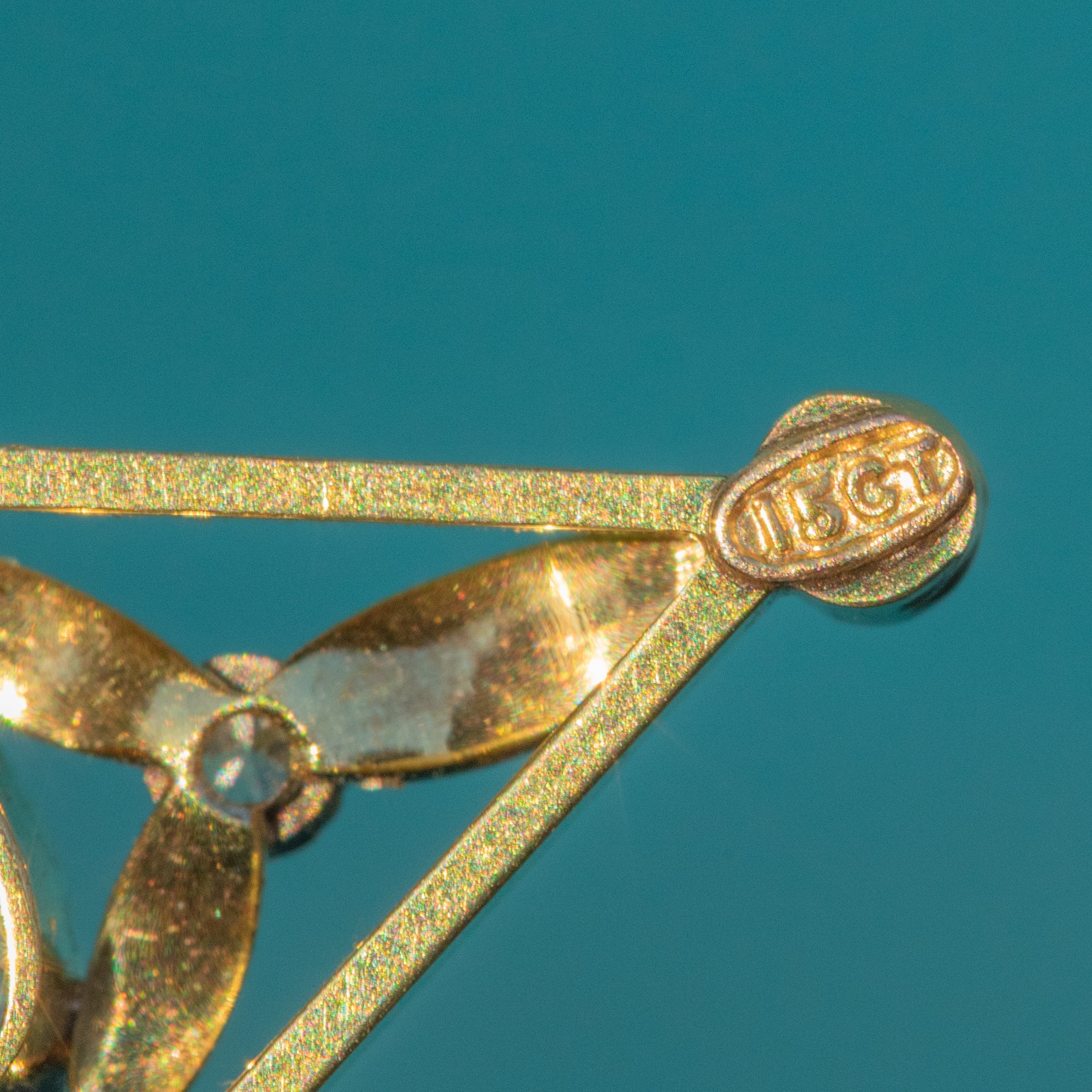 MATERIALS: Tests as 15ct Gold, Aquamarine, Diamonds, Pearls.