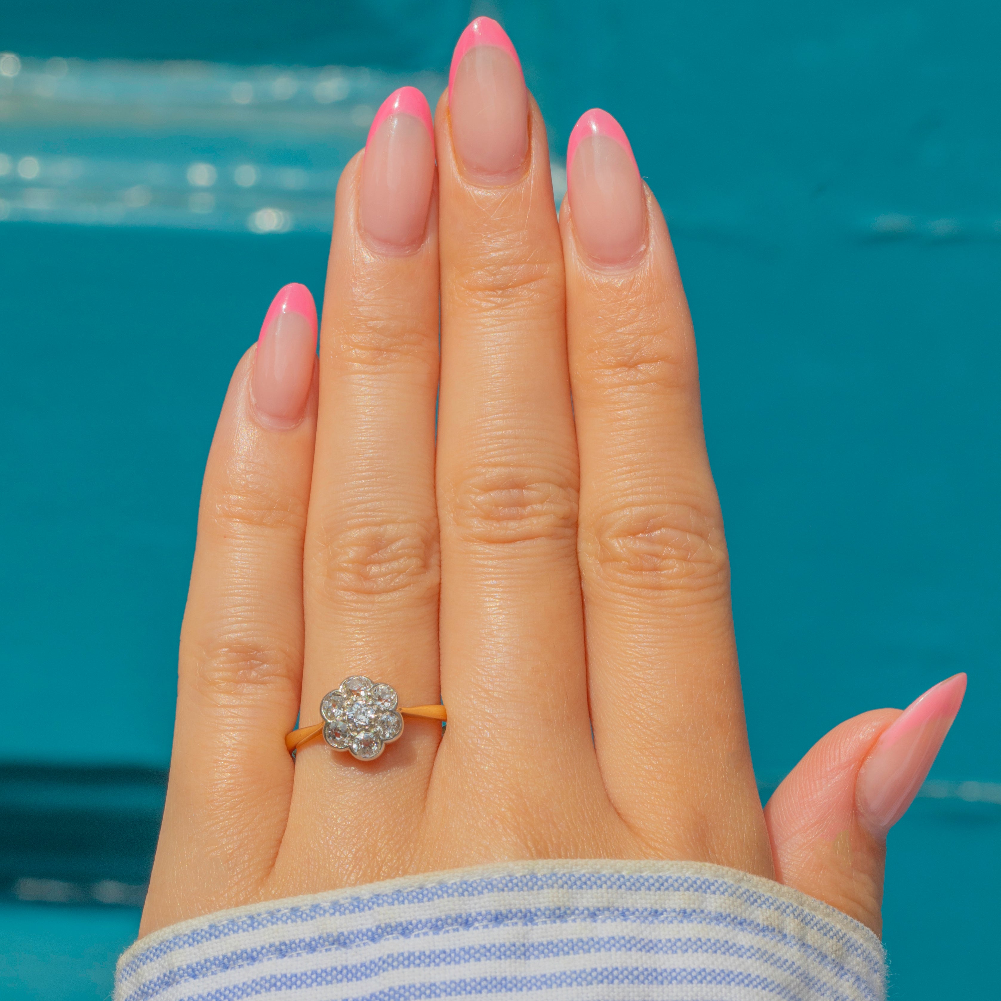 A dainty antique 18ct Gold diamond daisy ring for your collection!