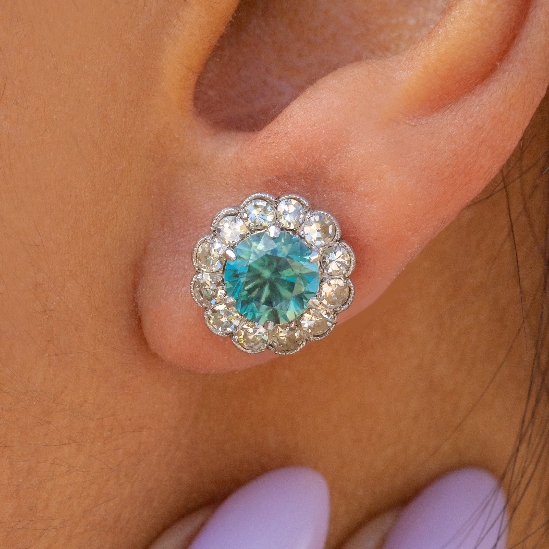 Edwardian Blue Zircon Diamond Cluster Earrings, 18ct Gold & Platinum