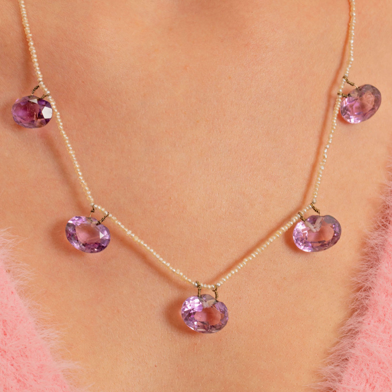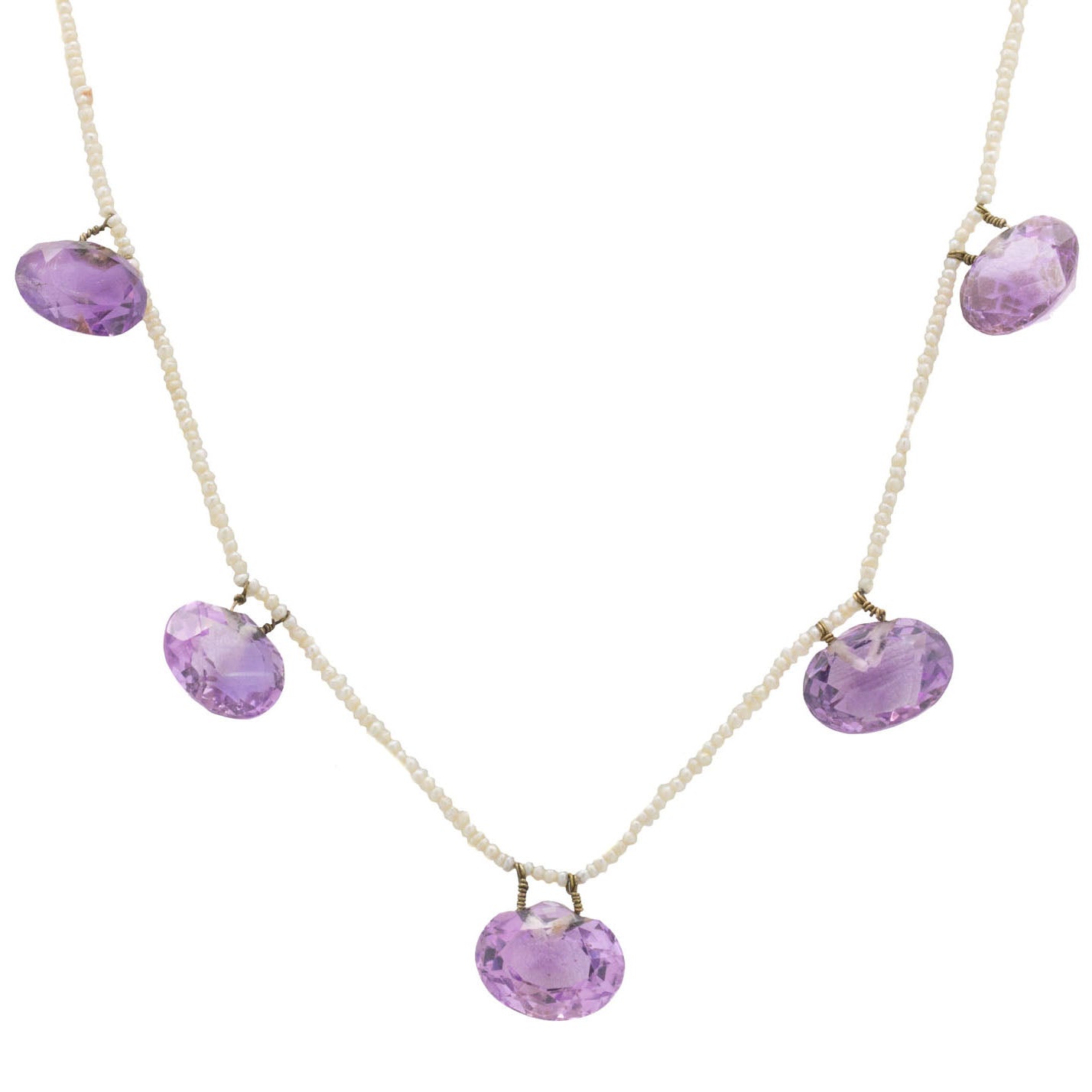 Edwardian 9ct Gold Amethyst & Seed Pearl Necklace, 25.55ct