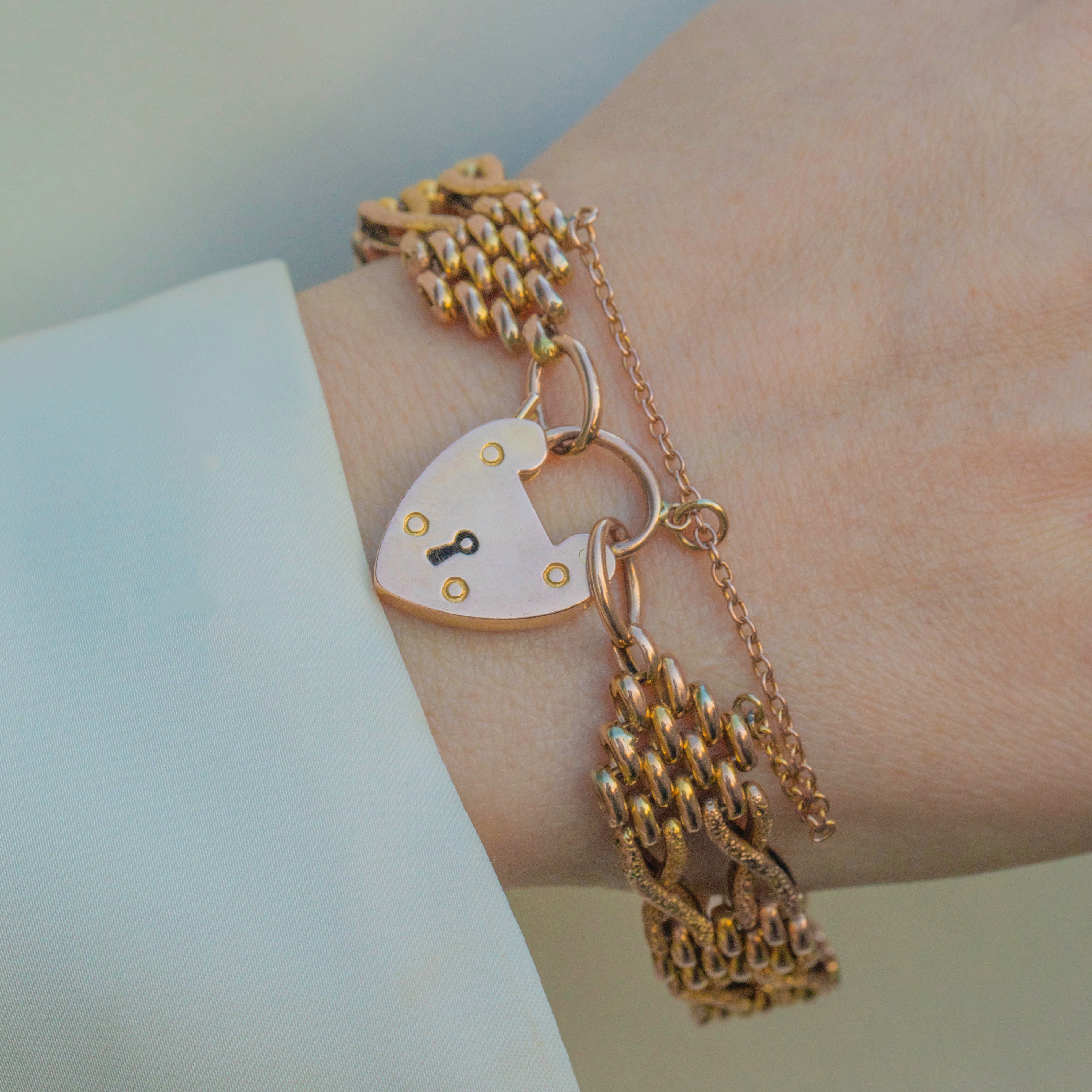 Edwardian 9ct Gold Gate Bracelet with Heart Padlock, 13.7g