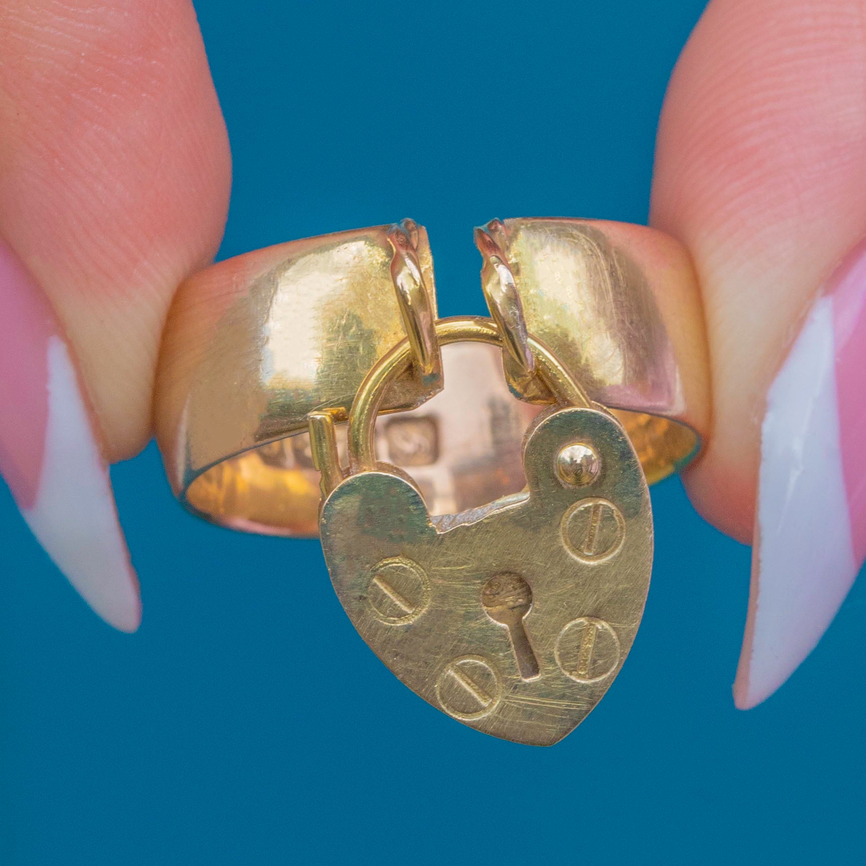 EXCELLENT: The Gold is bright and buttery and the band is robust, allowing you to wear this unique antique padlock ring with absolute confidence.