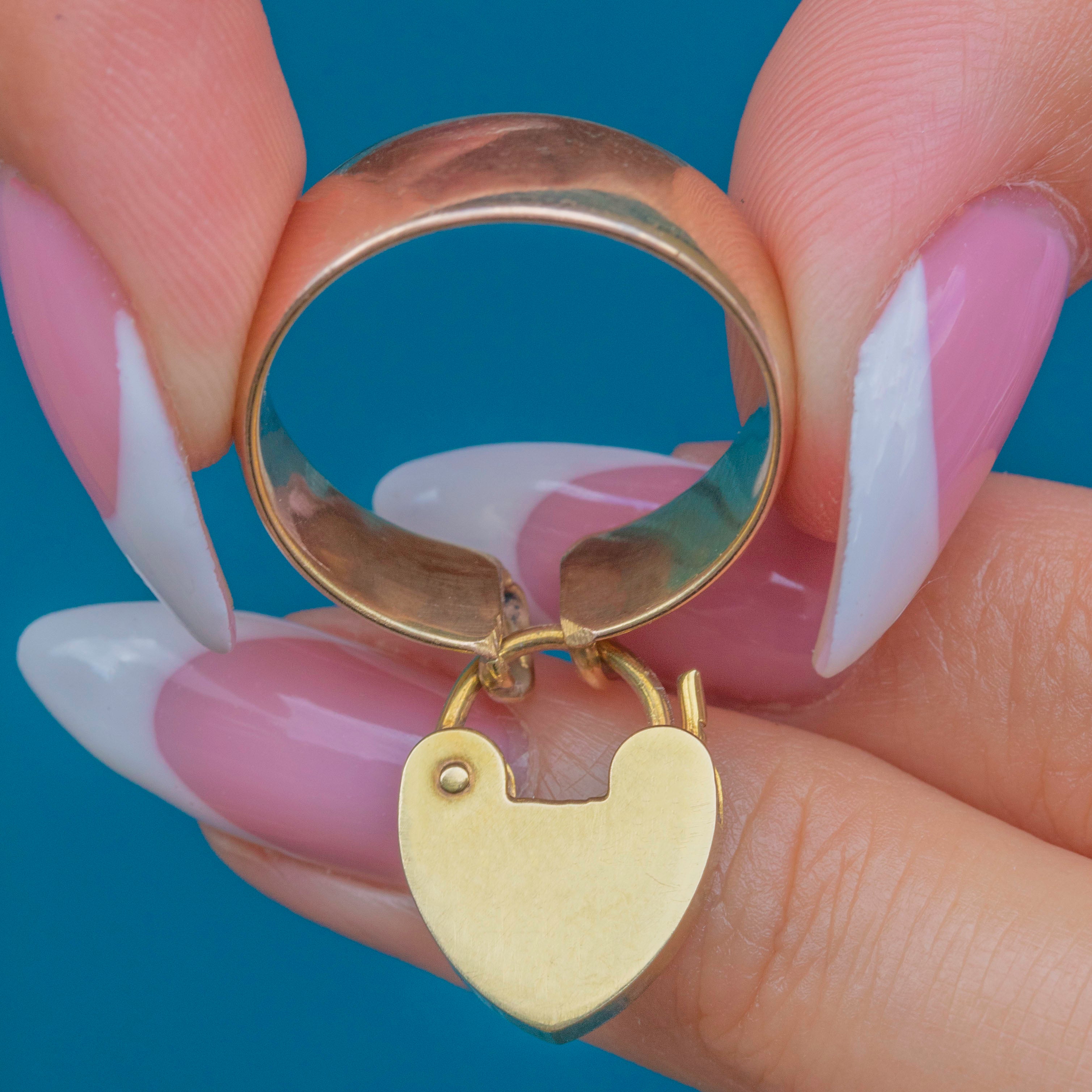 This exquisite antique heart padlock ring is a gorgeous testament to the craftsmanship of the Edwardian era! Meticulously crafted from buttery 9ct Gold, this ring features a stunning heart-shaped padlock, symbolising eternal love and commitment.