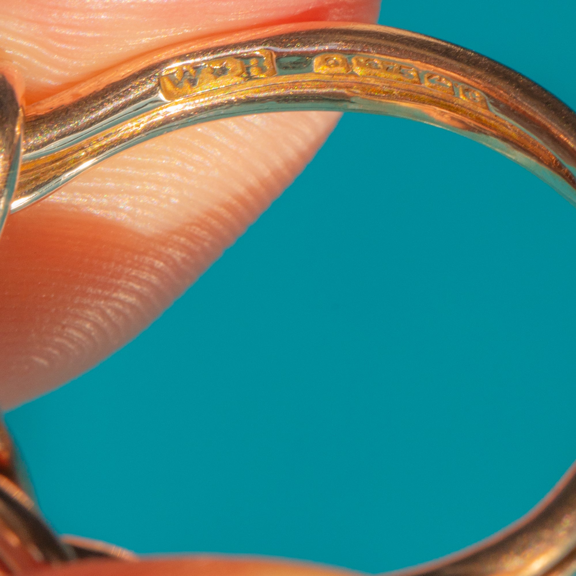 EXCELLENT: The ring is in excellent condition with only light surface wear to the Gold, commensurate with age. There has been a past resizing, carried out to a high standard, and the ring remains strong and secure.