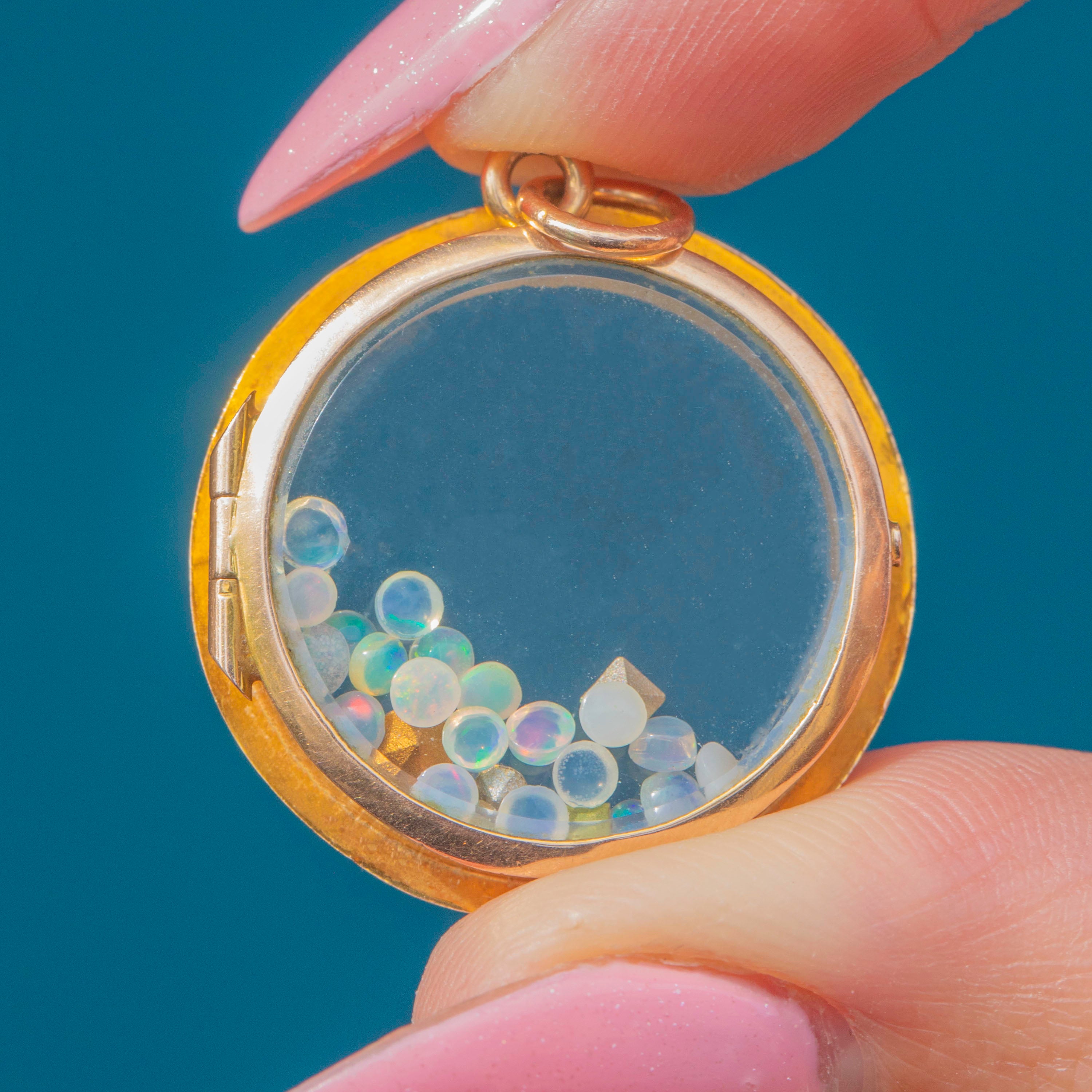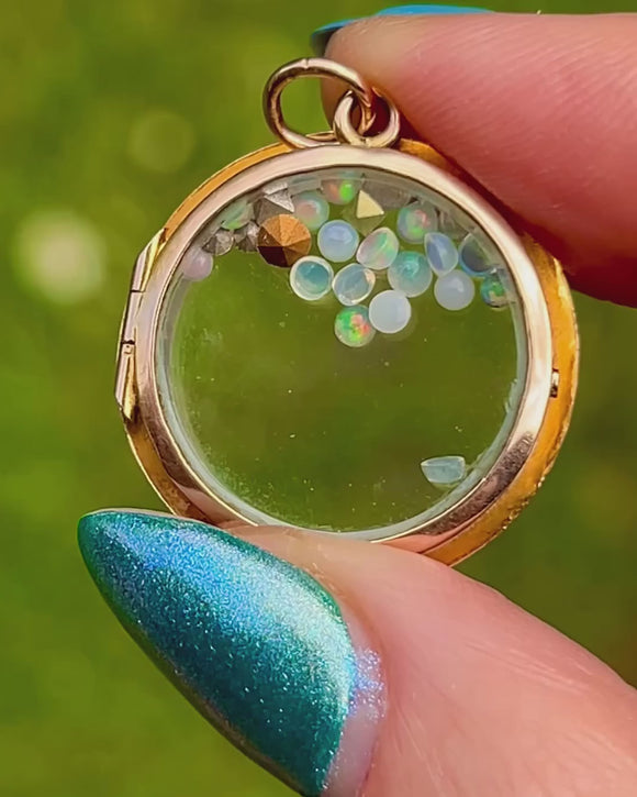 Edwardian 9ct Gold Shaker Locket c.1903, Loose Opals & Diamond Paste