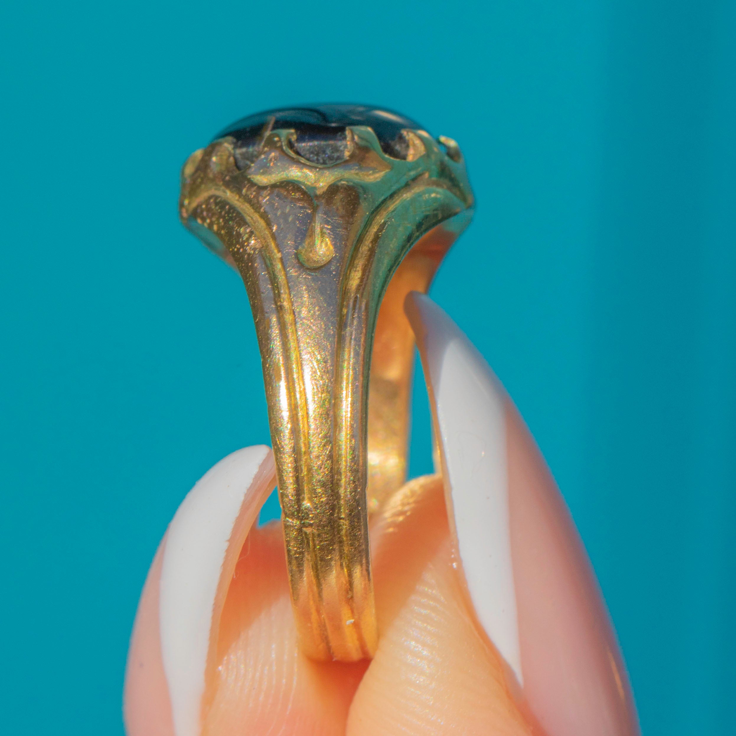 Edwardian 18ct Gold Black Catseye Chrysoberyl Ring c1900