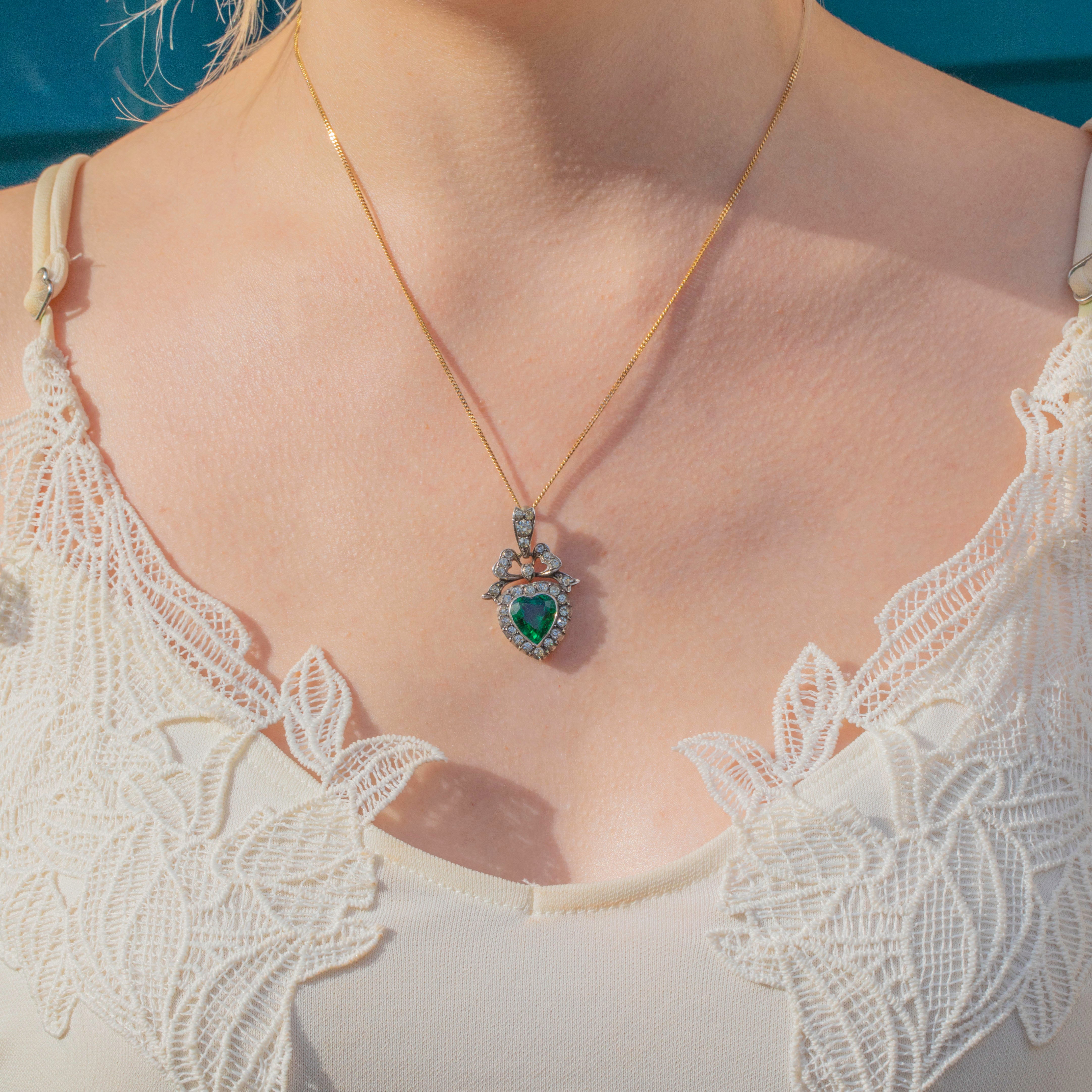 Add a pop of colourful charm to your décolletage with this Edwardian Silver Green Paste heart pendant!