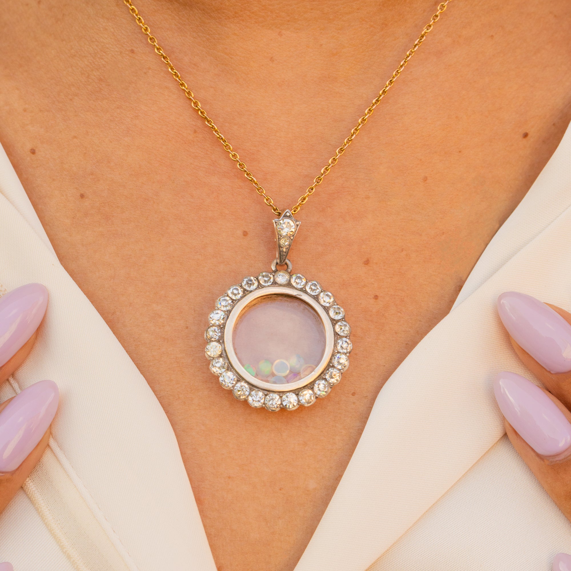 We adore this Edwardian Silver Paste round shaker locket! Home to colourful loose Opals, this shaker locket is the perfect base to build up your gem collection.