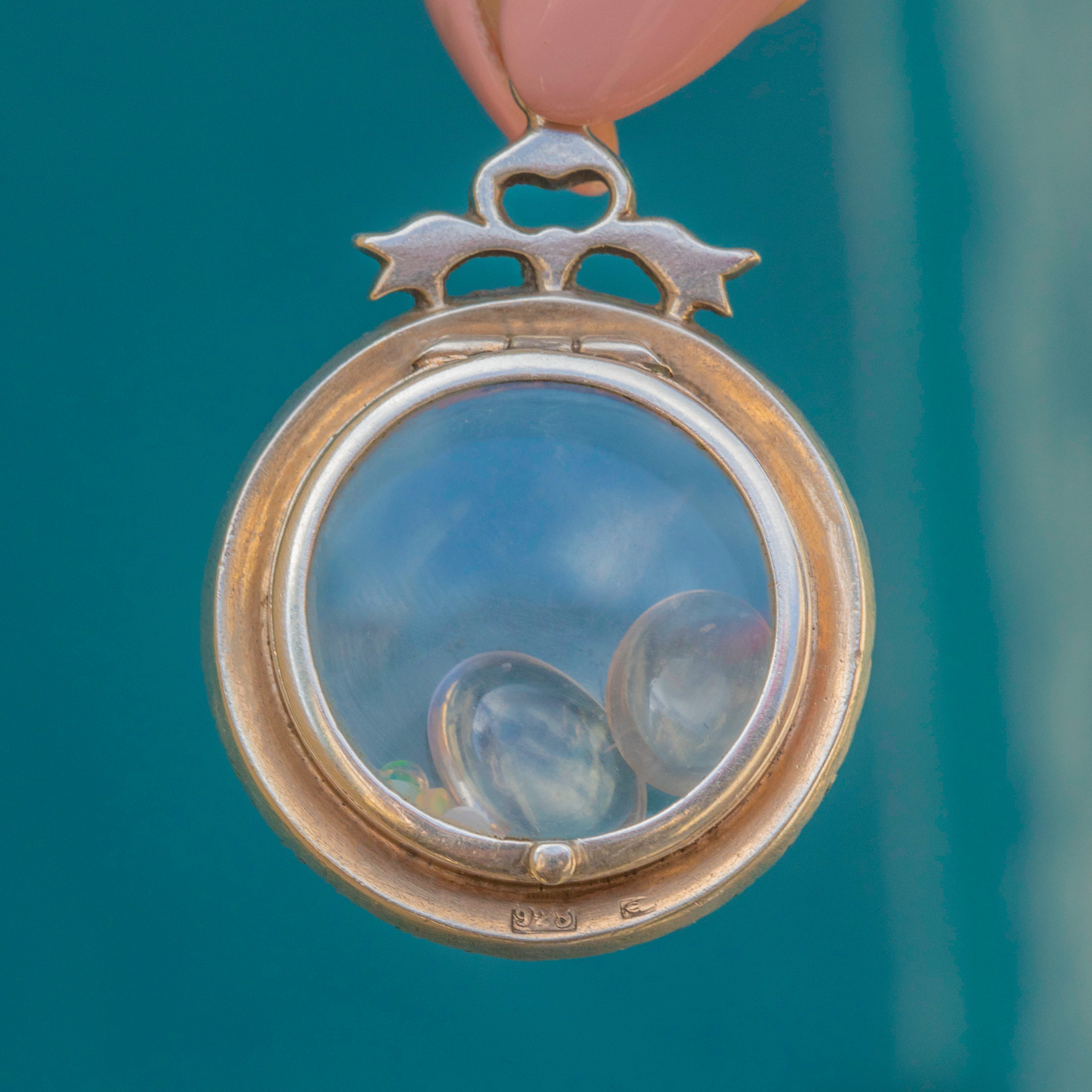 Edwardian Silver Shaker Locket, with loose Opals, Moonstones