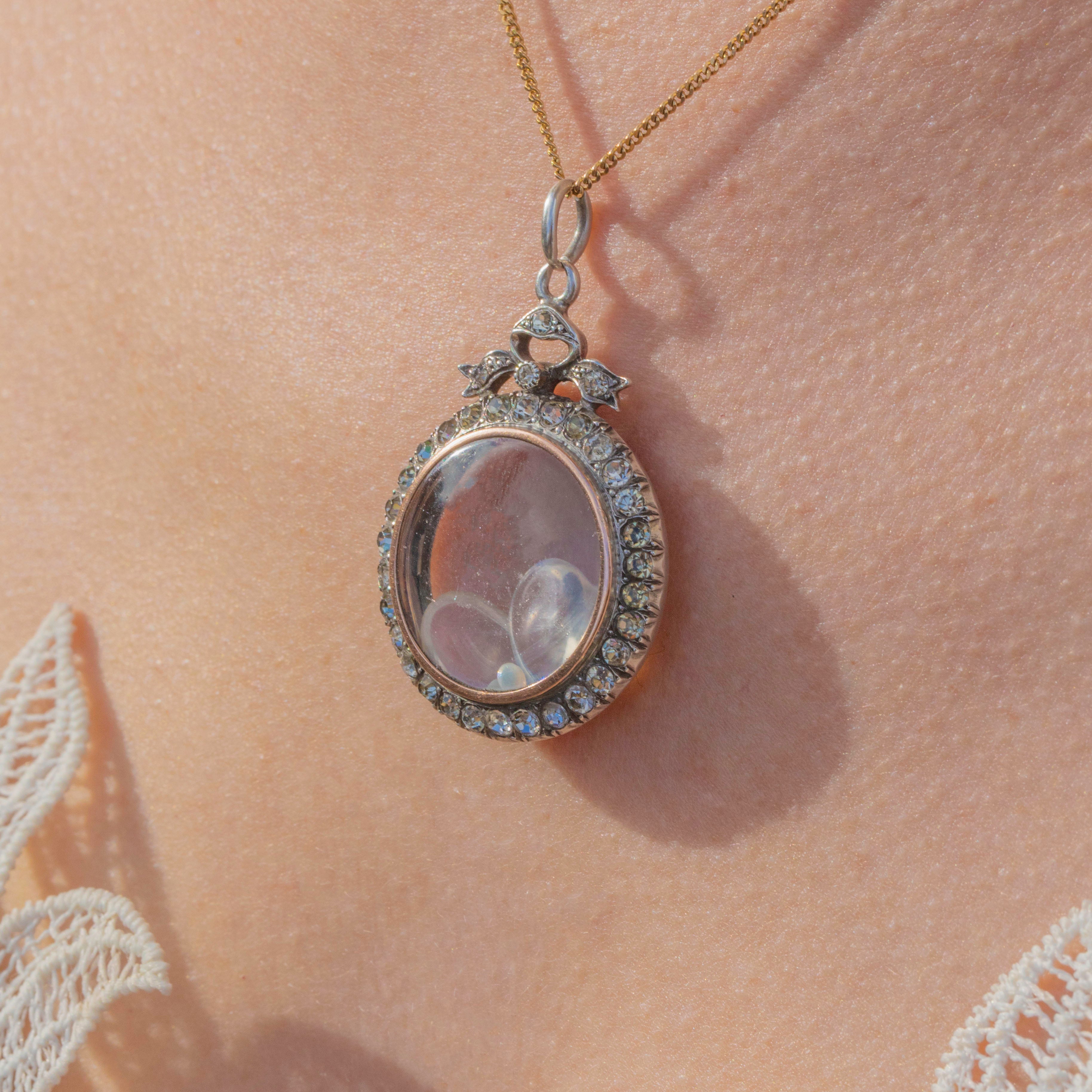 This pretty Paste locket is topped with an embellished bow bale, giving her bundles of Edwardian charm! Oozing femininity, this antique Silver locket is a timeless piece of Edwardian jewellery, ready to be worn straight from her pink Lillicoco box!