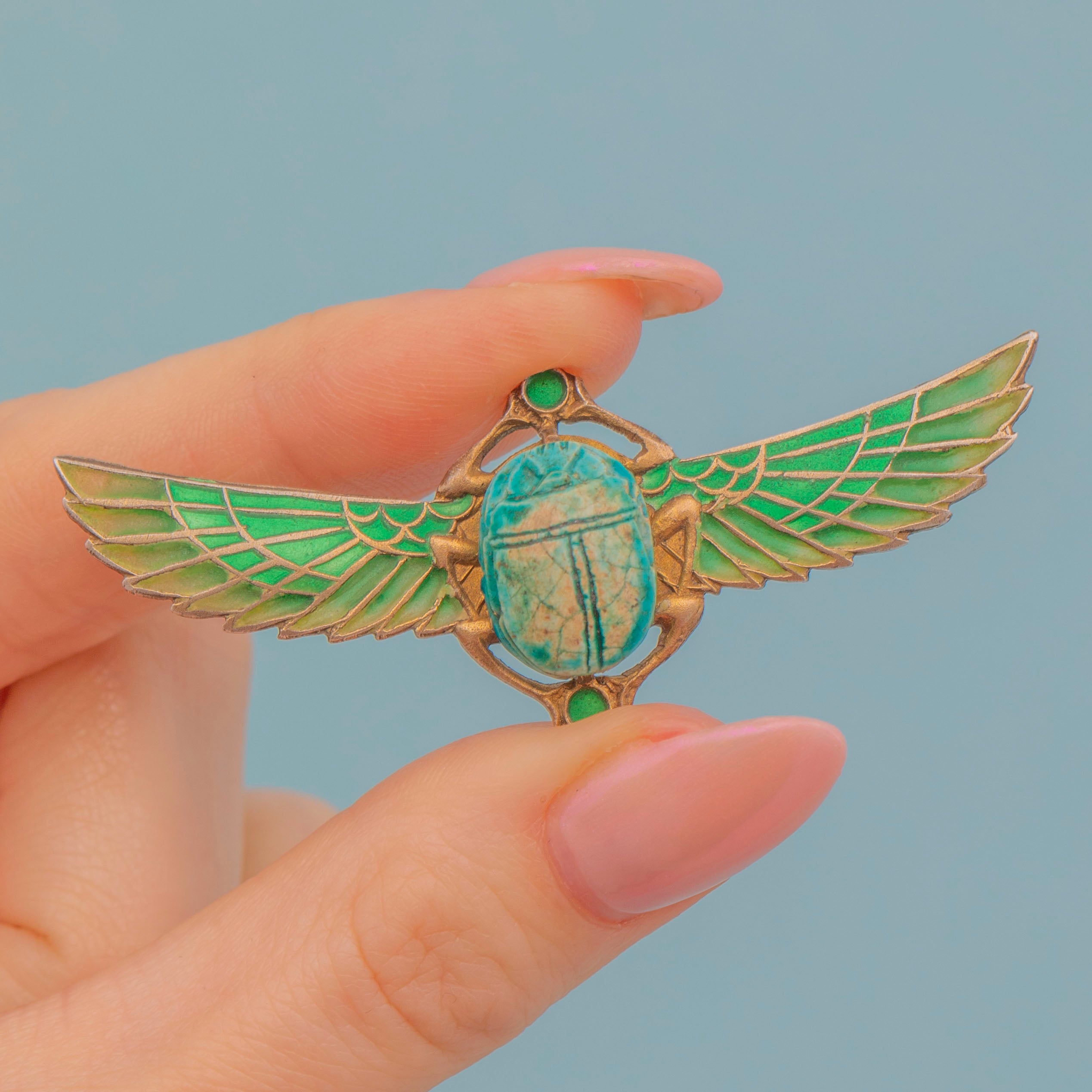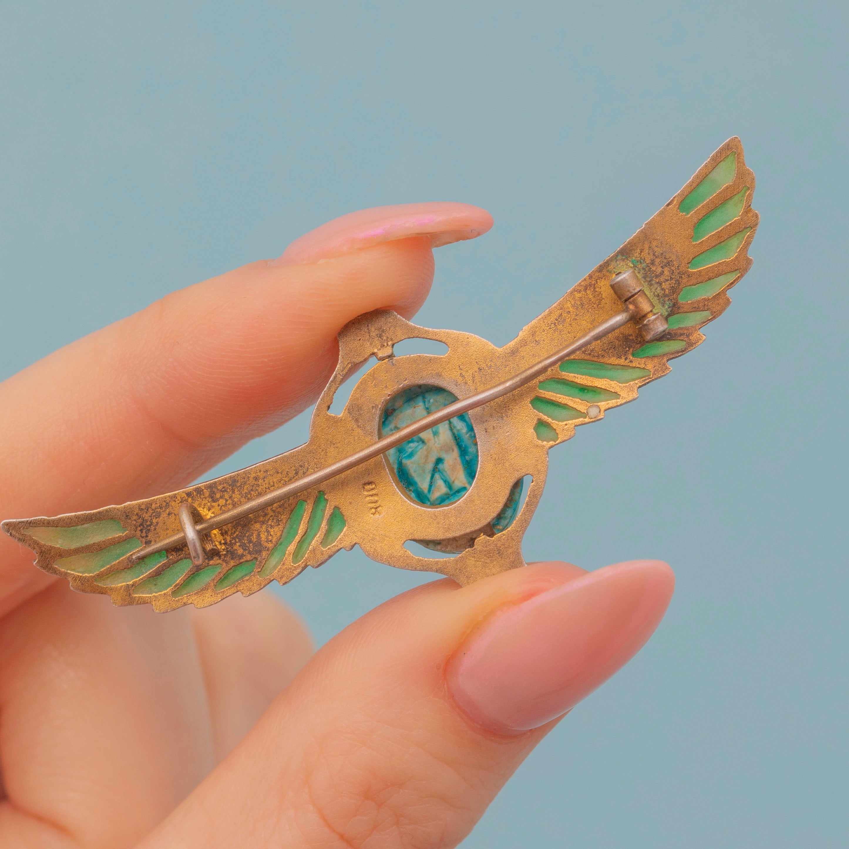 Egyptian Revival Plique A Jour Scarab Brooch