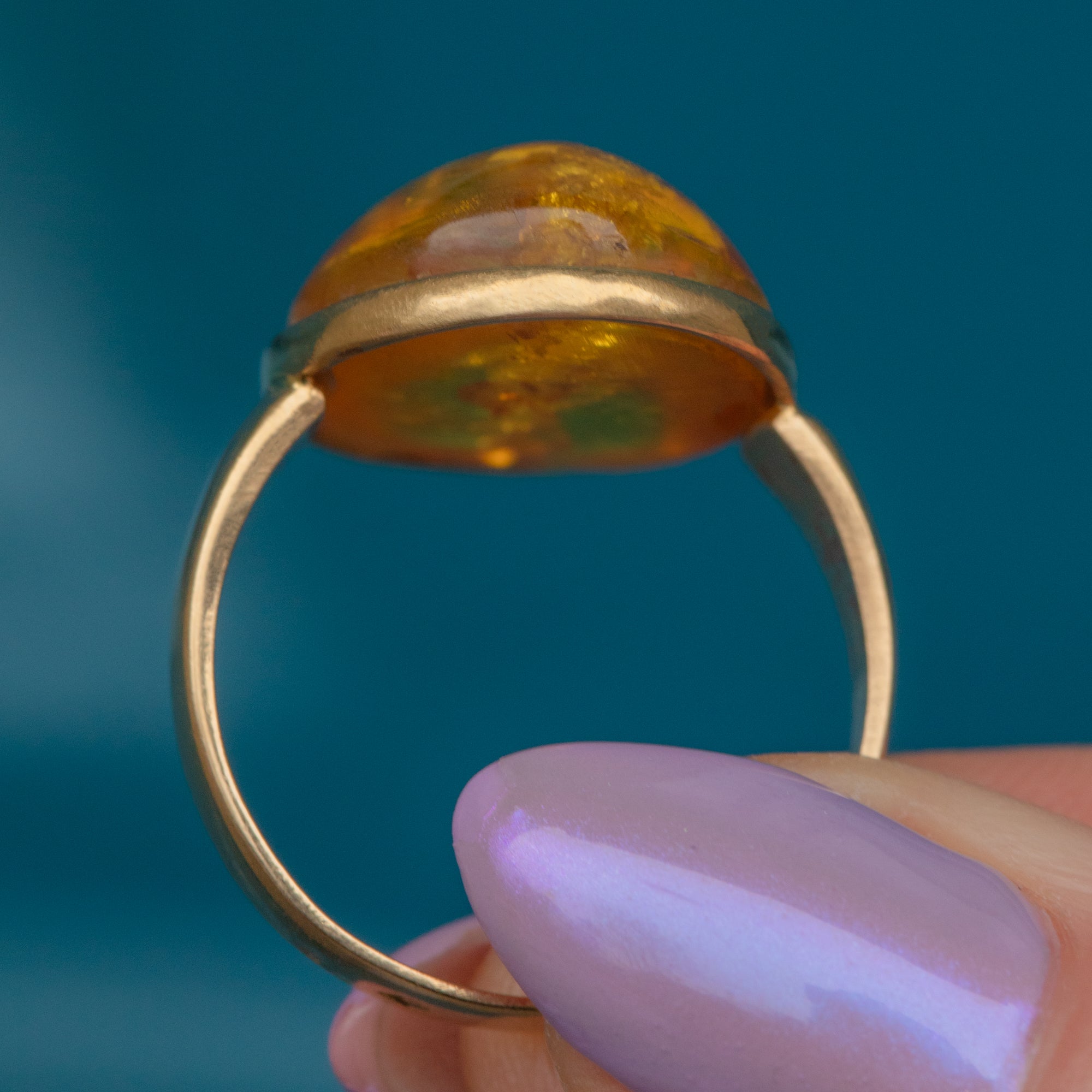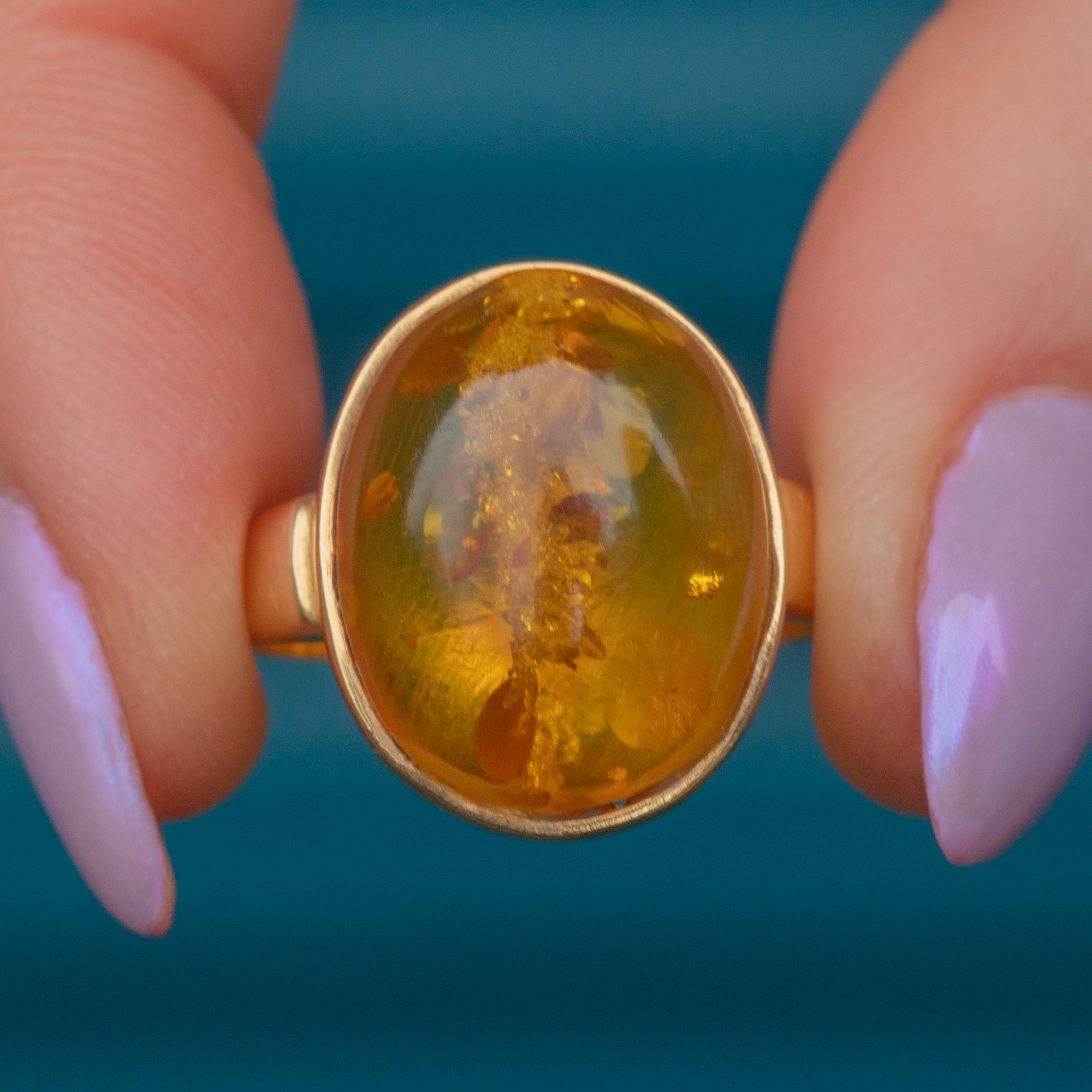 A beautiful French 18ct Gold Baltic Amber cabochon ring! This impressive ring has a syrupy Amber at its centre, a wonderful display of the beauty that mother nature can create!