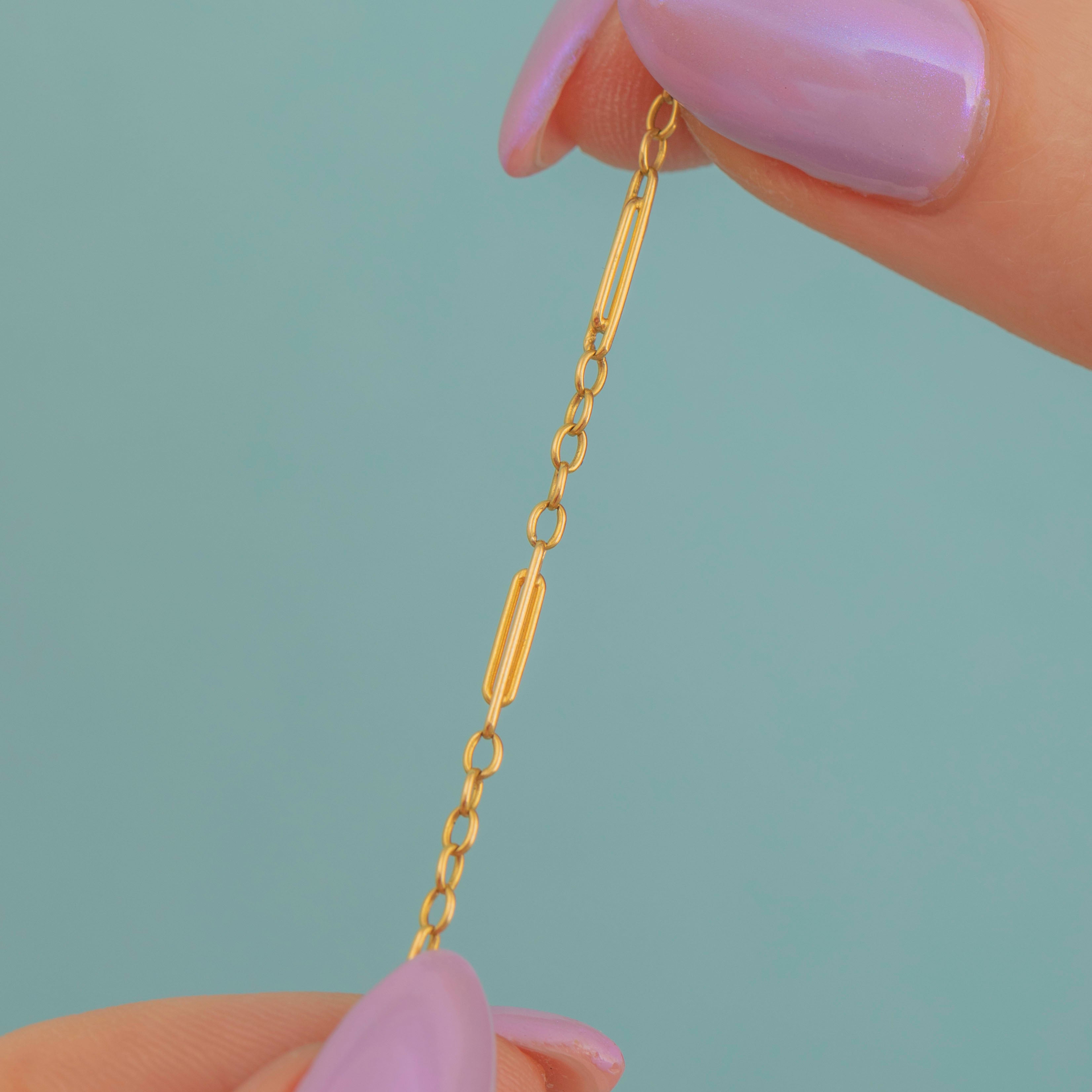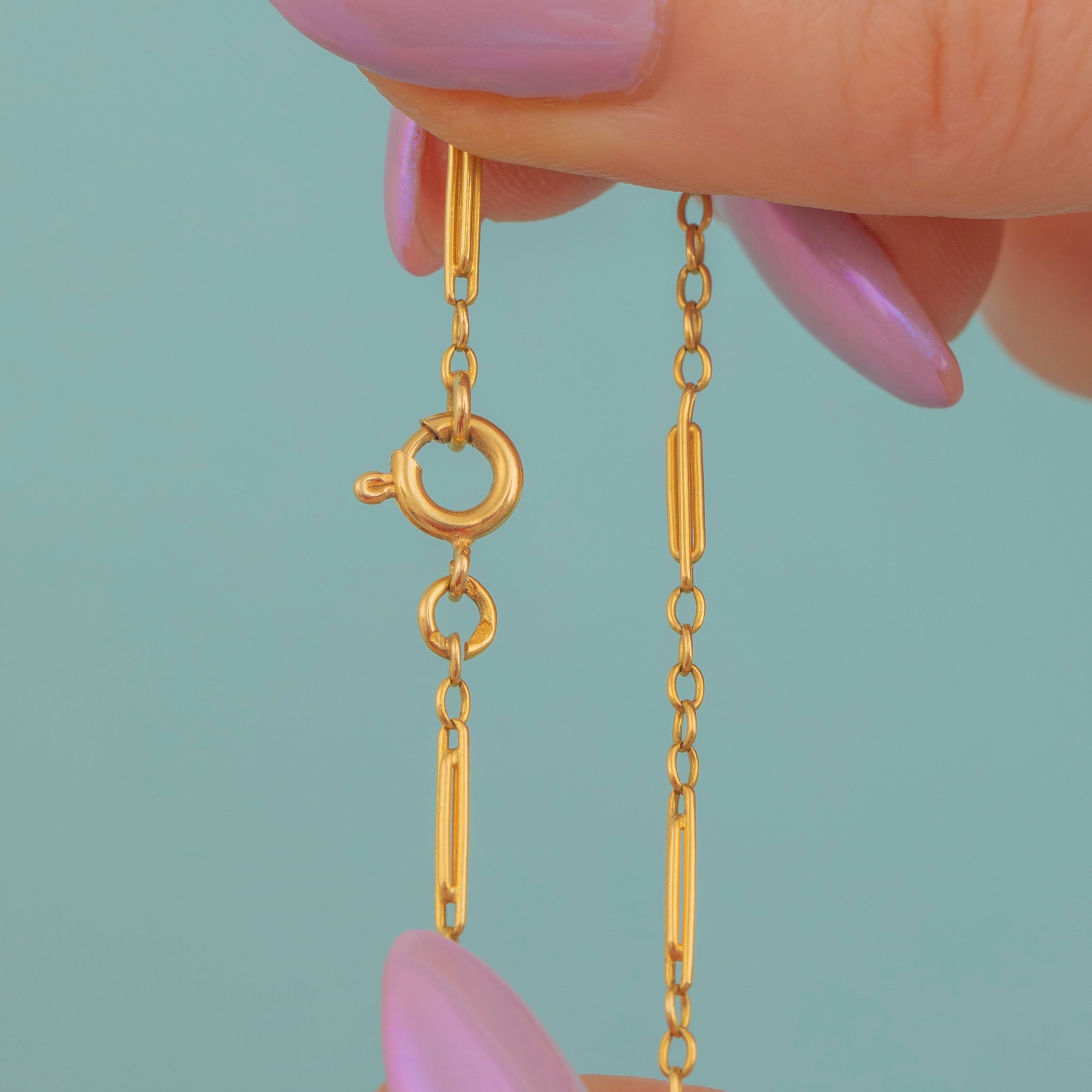 Each lozenge link is embellished with ornately formed blooms framing geometric white Gold sections, creating a striking contrast of textures and colours. Resting daintily across your décolletage, the lozenge centrepiece is suspended from fancy paperclip links bringing a luxurious finish to this French Art Deco necklace!