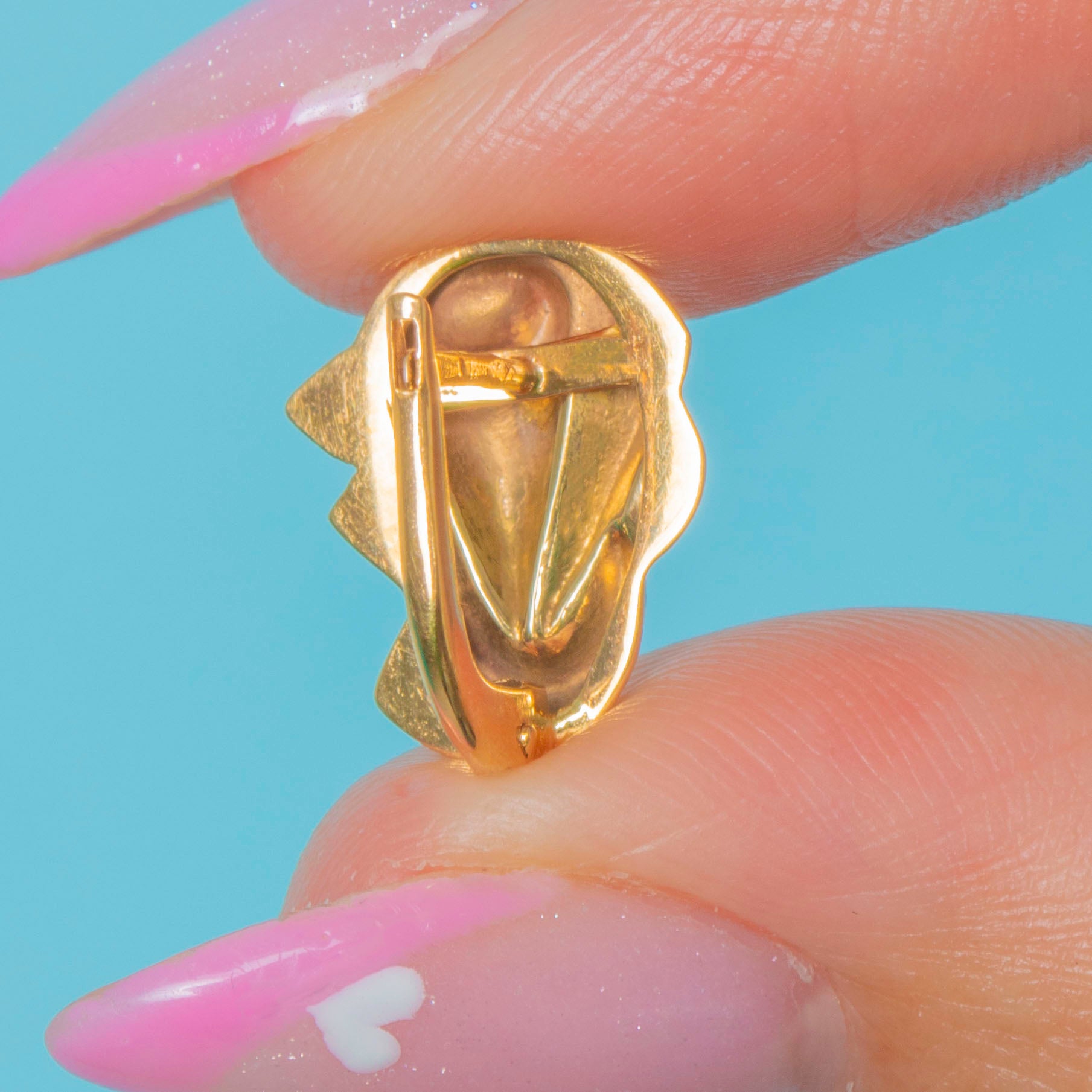 French 18ct Gold Fluted Fan Lever-Back Earrings c.1940s–1950s