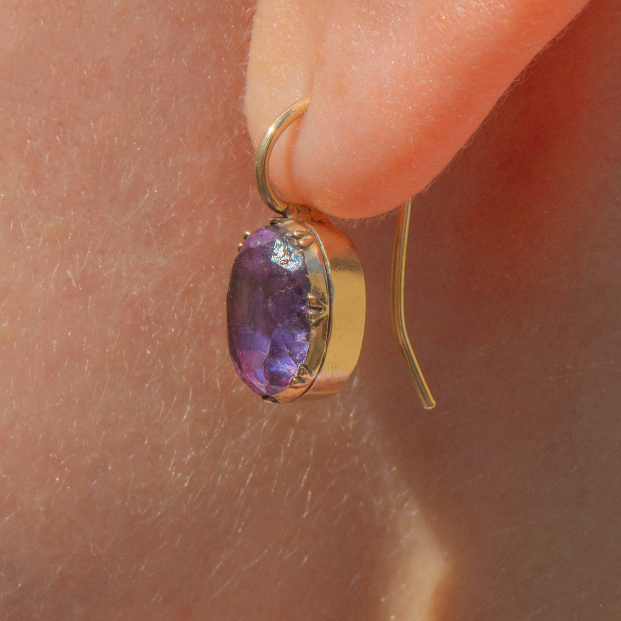 The Amethysts are displayed within buttery 15ct Gold, with decorative crimpled details in classic Georgian style. Endlessly pleasing to look at and with plenty of wear potential, don't hesitate to make these exquisite antique Amethyst earrings yours!